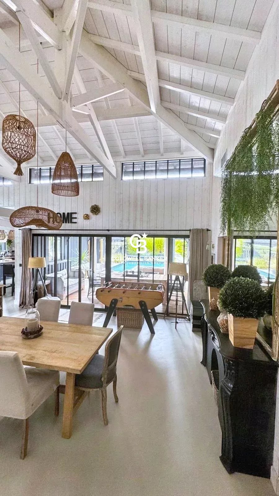 Coldwell Banker Immoba Realty agence du Cap Ferret vous présente, cette magnifique villa à ossature bois très récente sur un terrain paysagé plat de 891 m2 disposant d'une grande piscine. Idéalement située à l'entrée de la presqu’île, entre l’océan et le bassin. Dès votre arrivée, vous serez charmé par son atmosphère chaleureuse et sa décoration raffinée. Le vaste séjour baigné de lumière s’ouvre sur une grande terrasse couverte et une piscine à l’abri des regards, entourée d’un jardin entièrement paysagé, offrant un cadre parfait pour savourer les belles journées en toute sérénité. La cuisine, à la fois fonctionnelle et élégante, séduira les passionnés de gastronomie par son agencement haut de gamme et son style contemporain. Côté nuit, la villa dispose de quatre chambres, dont une suite parentale, ainsi qu’un appartement indépendant idéal pour recevoir famille et amis dans un esprit convivial. Un bureau en mezzanine vient compléter les espaces. À l’extérieur, un carport, un boulodrome et un jardin minutieusement aménagé apportent une touche supplémentaire à ce bien rare, alliant charme, confort et situation privilégiée. DPE : 28 kWh/m²/an GES : 0 kgCo2/m²/an Estimation des coûts annuels d’énergie du logement entre 320 € et 460 €. Prix moyens des énergies indexés sur l'année 2021. (abonnements compris) Prix frais d'agence inclus : 1 690 000 €. Honoraires d'agence de 4% TTC soit 65 000 € TTC à la charge de l'acquéreur. Prix net vendeur de 1 625 000 € Les informations relatives aux risques liés à la propriété sont disponibles sur le site Géorisques : www.georisques.gouv.fr Pour plus de renseignements sur cette propriété exceptionnelle, veuillez contacter Jean-François ZORZ, directeur d'agence Coldwell Banker Cap-Ferret. Consultez l'ensemble de nos biens immobiliers sur notre site IMMOBA