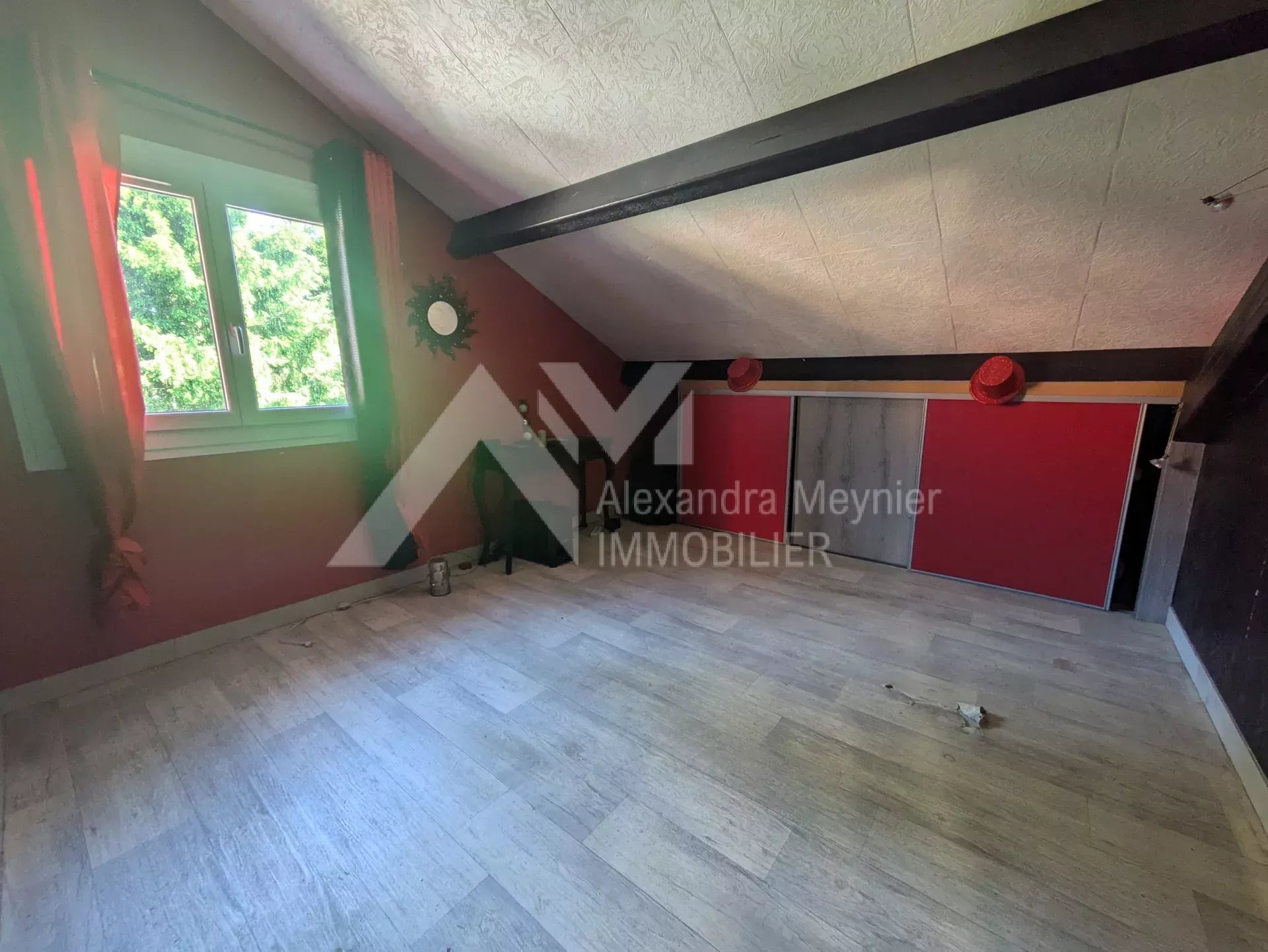 A l'étage, un appartement de fonction d'une superficie habitable d'environ 67m², comprenant une pièce vie avec espace cuisine, deux chambres avec placards, salle d'eau, toilettes et une grande terrasse privative en situation dominante.