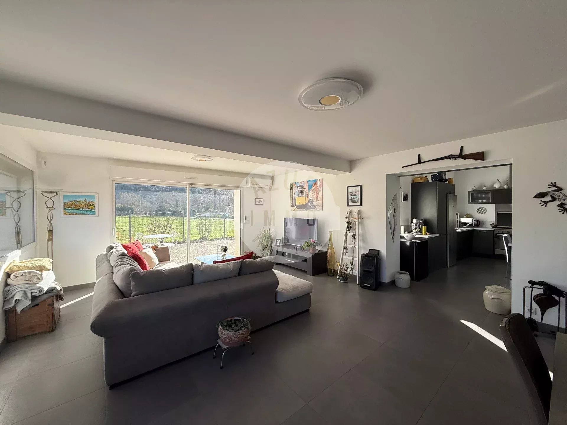 Nouveauté , rare à la vente. Sur une belle parcelle de 4000 m² arborée d'oliviers, mais à proximité des commodités, cette belle maison T4 aux superbes prestations ne nécessitera aucuns travaux !! En R+1 , elle a pour atout principale son spacieux séjour de 50 m² et sa cuisine équipée contemporaine attenante de 22 m². Exposée plein sud , la maison est ensoleillée toute la journée et les nombreuses ouvertures permettent d'en profiter. Une suite parentale au rez de chaussée, et deux belles chambres à l'étage , avec une salle d'eau et un wc, ainsi qu'une grande terrasse attenante à la plus grande chambre pour admirer la sainte Baume. Prestations de qualité , double vitrage, volets électriques, très bonne isolation. Possibilité de faire une piscine aisément, un bâti faisant office de cuisine d'été pouvant etre aménagé en pool house. Un tunnel/hangar avec volet roulant de 90 m² pour bricoler et stocker, car ports pour 2 voitures + camping car. Assainissement tout à l'égout. Chauffage grâce au poele à bois + climatisation. Canal de provences ? Une centaine d'oliviers ( Production Bio) . Votre contact pour ce bien Matthias MEDIGUE 0683943789 agent commercial enregistré au RSAC de Draguignan num 814 511 515
