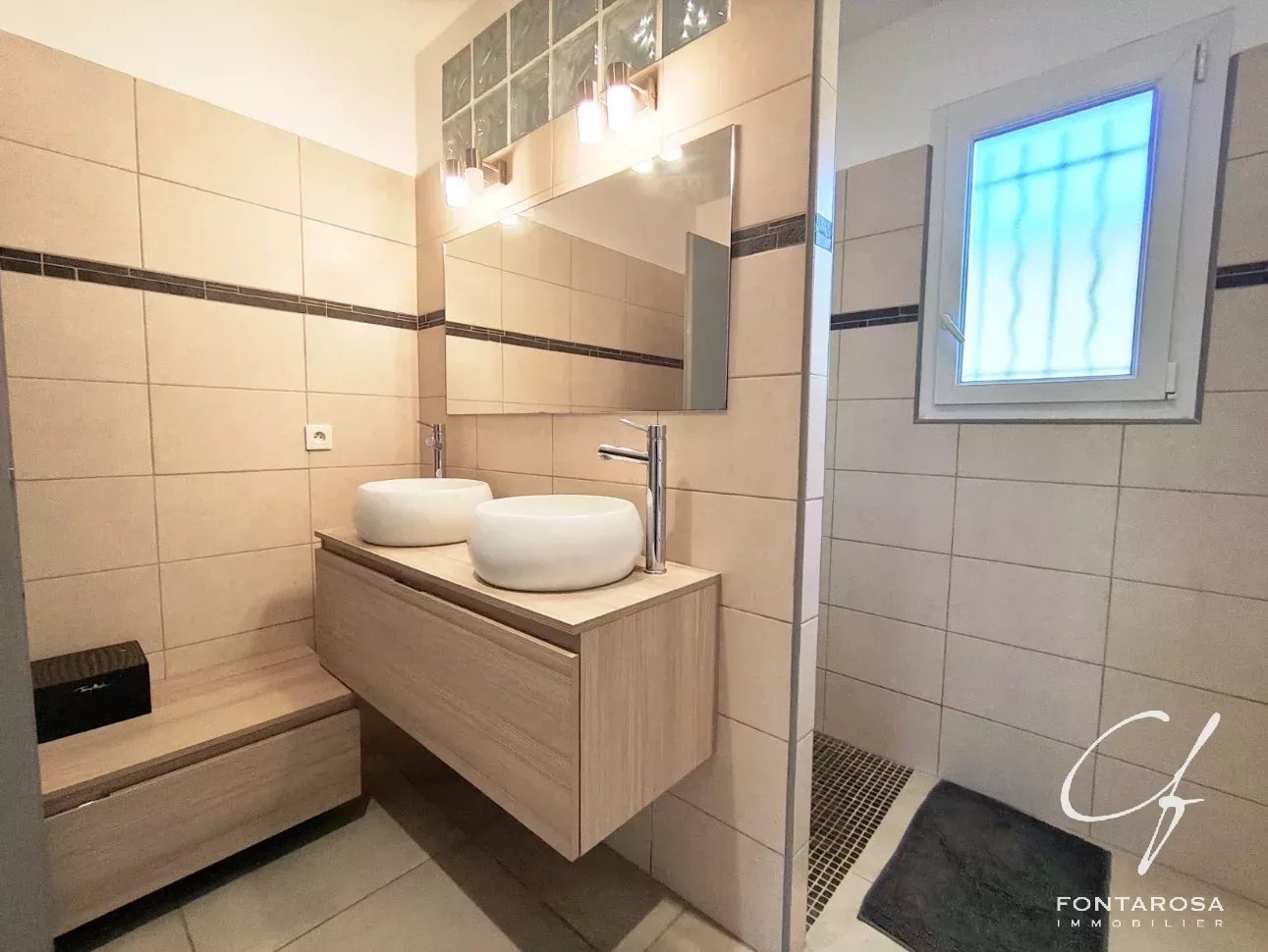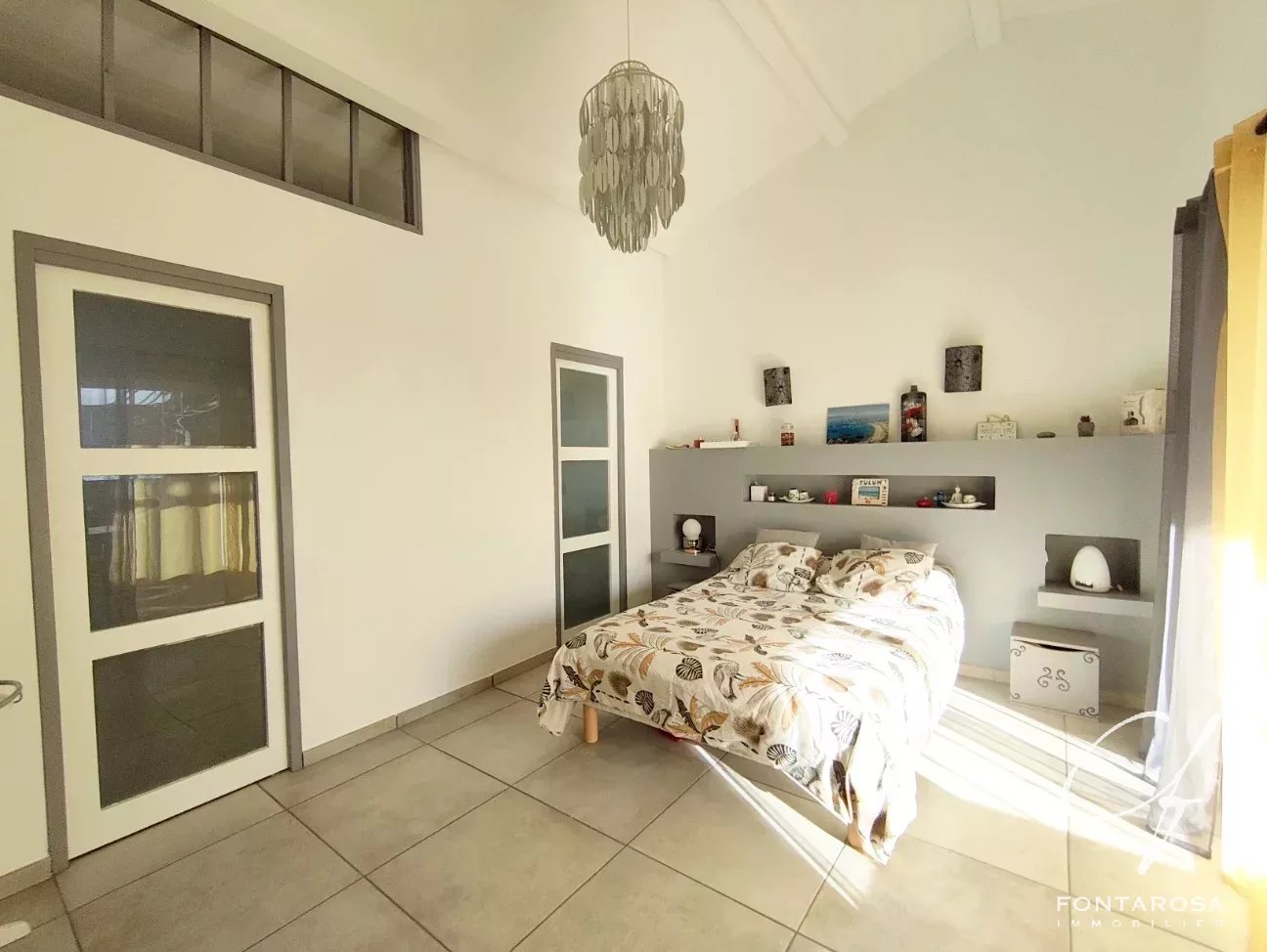 La villa, luminosa e ben disposta, è composta da un ingresso con spogliatoio, un ampio soggiorno climatizzato di oltre 50 m² con cucina a vista e dispensa, un bagno con doccia, una toilette separata, una suite padronale con terrazza, spogliatoio, bagno con doccia e toilette, oltre a tre camere da letto, ciascuna con il proprio armadio.