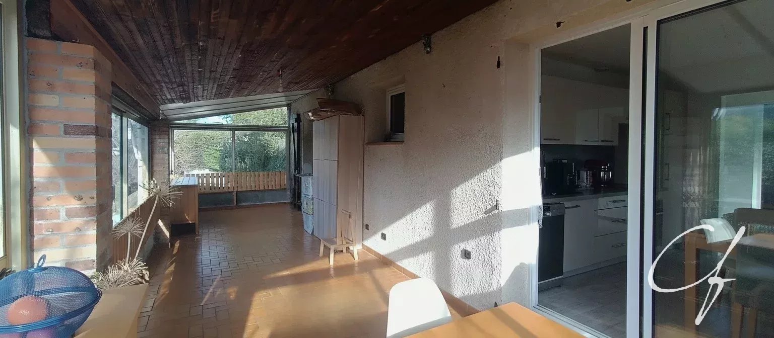 Un séjour et une cuisine, deux chambres, une salle d’eau avec WC, deux vérandas de 32 m² et 26 m², ouvertes sur la terrasse et le jardin, portant la surface utile à environ 132 m² à ce niveau.