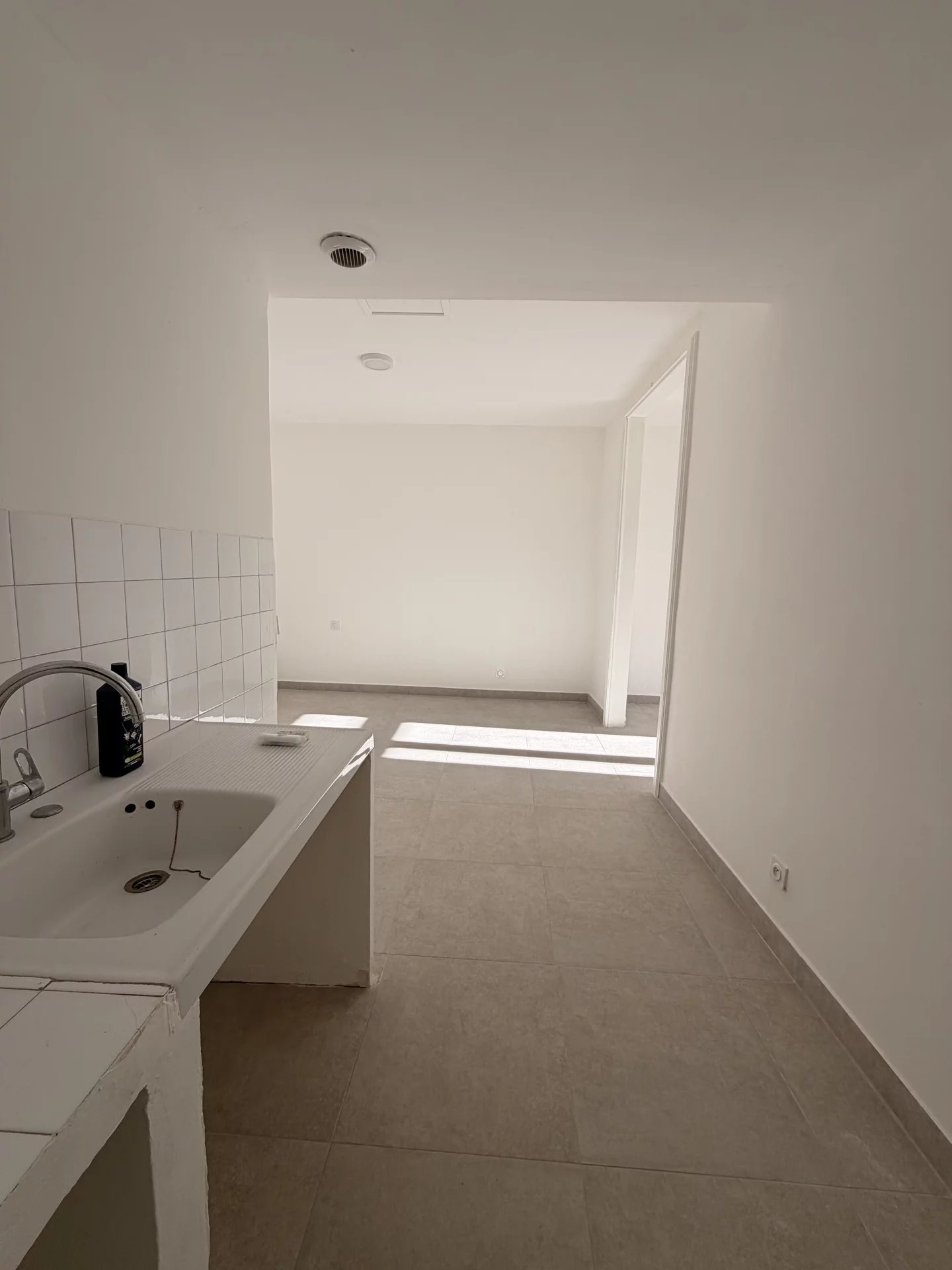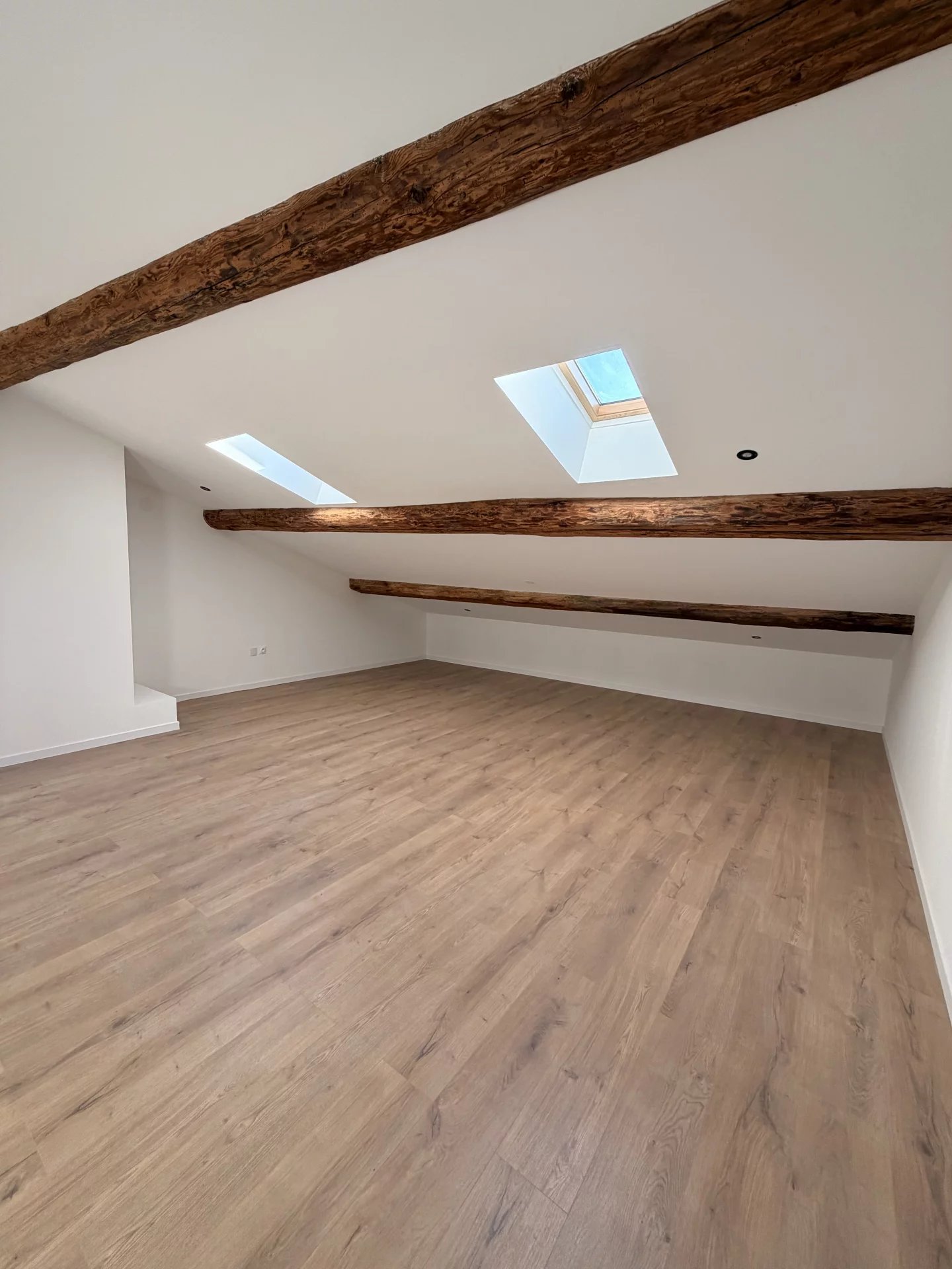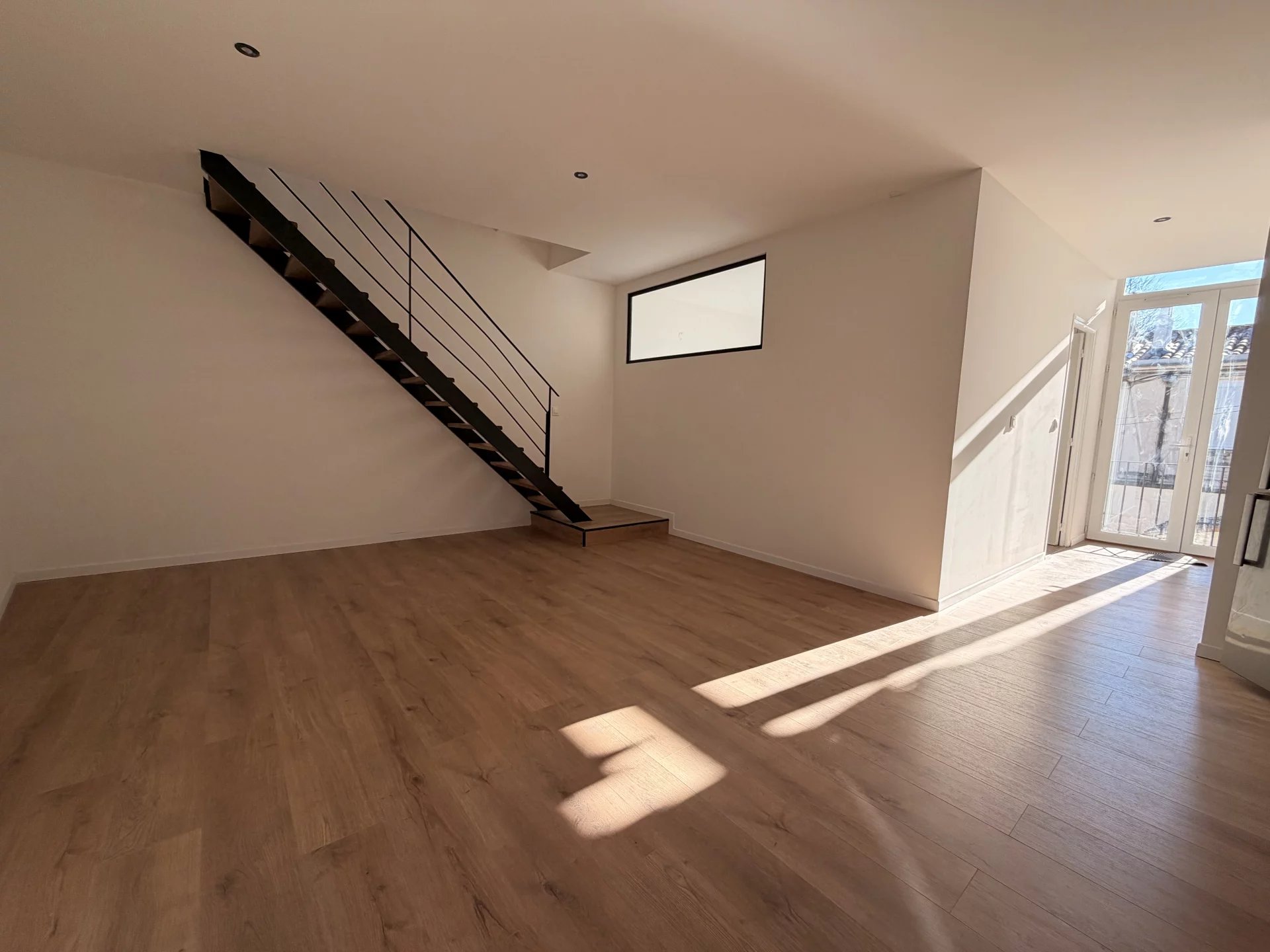 Il se compose au rez-de-chaussée d’un T2 de 43,46 m² bénéficiant d’une petite terrasse et d’une cour privative. À l’étage se trouve un T3 de 79,25 m² (58,75 m² Loi Carrez).