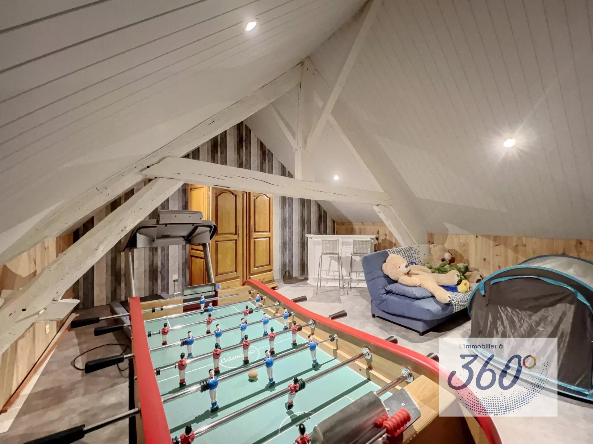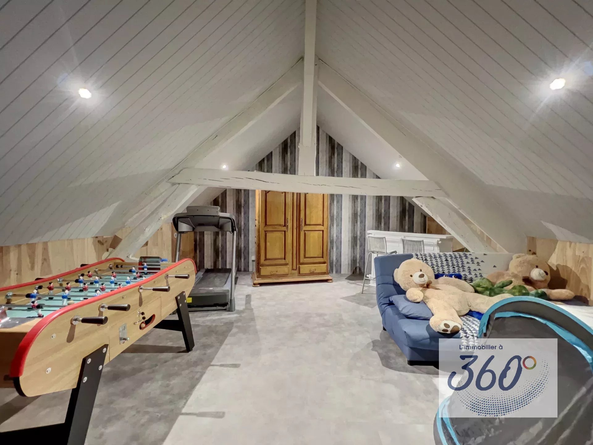 À l’étage, vous trouverez deux chambres supplémentaires ainsi qu’une salle de jeux d'environ 30m²pouvant être transformé en chambre supplémentaire.