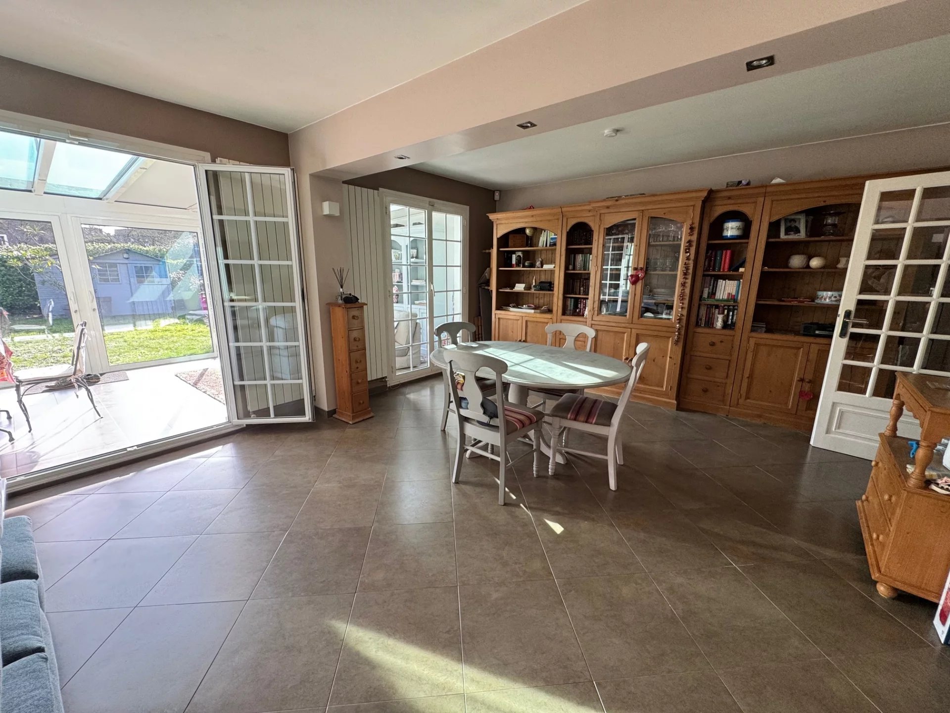 Le rez-de-chaussée s’ouvre sur une entrée accueillante menant à une vaste pièce de vie comprenant salon et salle à manger, prolongée par un espace bureau. La cuisine indépendante, entièrement aménagée et équipée, ainsi qu’un WC complètent ce niveau. Une véranda, dans la continuité du séjour, offre un accès direct à un jardin agréable et parfaitement exposé.