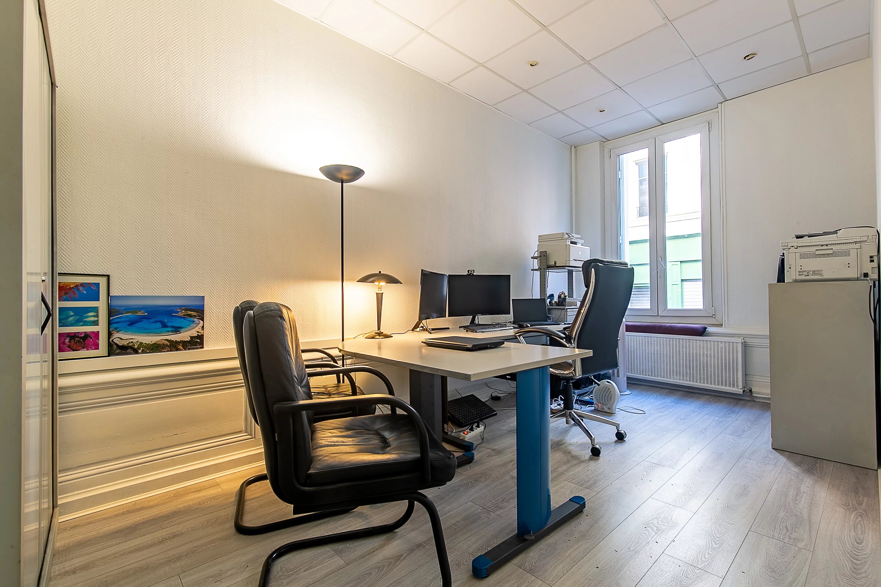 À vendre, bureaux traversants d’environ 210 m², situés en rez-de-chaussée d’un bel immeuble ancien dans le 6ᵉ arrondissement de Marseille. Le plateau, actuellement composé de 10 bureaux cloisonnés, offre un fort potentiel d’aménagement : open space, bureaux fermés, espaces collaboratifs ou mix des deux selon vos besoins. Le charme de l’ancien, la belle hauteur sous plafond et la luminosité créent un cadre de travail agréable et qualitatif. Le bien convient parfaitement à une activité de bureaux, professions libérales, cabinet de bien-être, ou toute activité professionnelle. Ces bureaux sont équipés de la fibre, d'une chaudière au gaz neuve, de prises RJ45, double vitrage, une cuisine, deux water-closets... Possibilité de double destination : bureau / habitation Bien en copropriété, nombre de lots : NC Montants des charges prévisionnelles annuelles : 3 708 € Procédure en cours : NC Taxe foncière : 4 470 € DPE : E / GES : B Mandat de vente n°301 Les informations sur les risques auxquels ce bien est exposé sont disponibles sur le site Géorisques : georisques.gouv.fr
