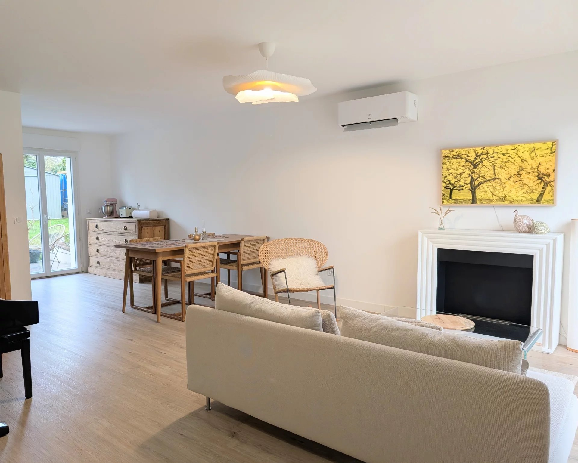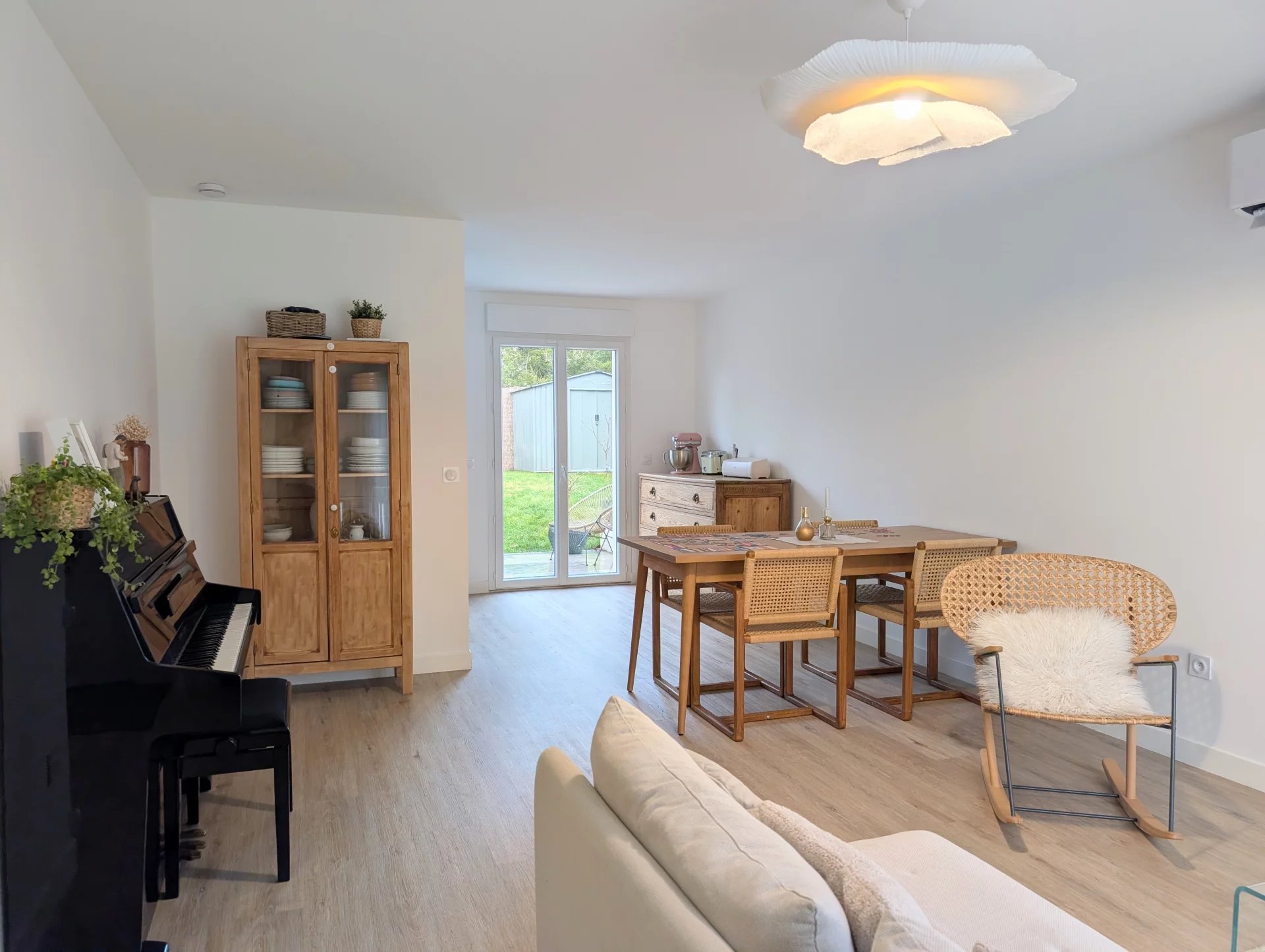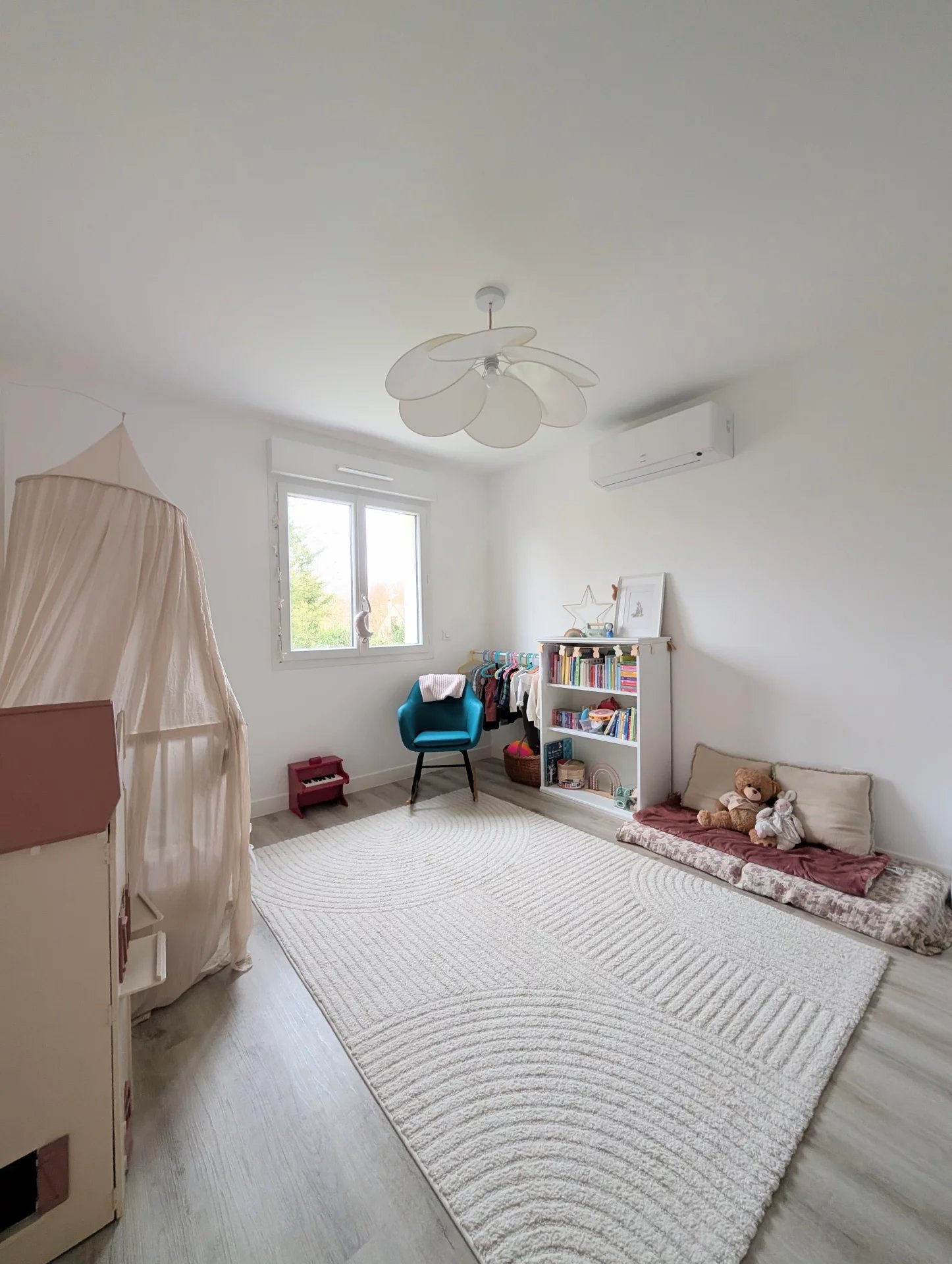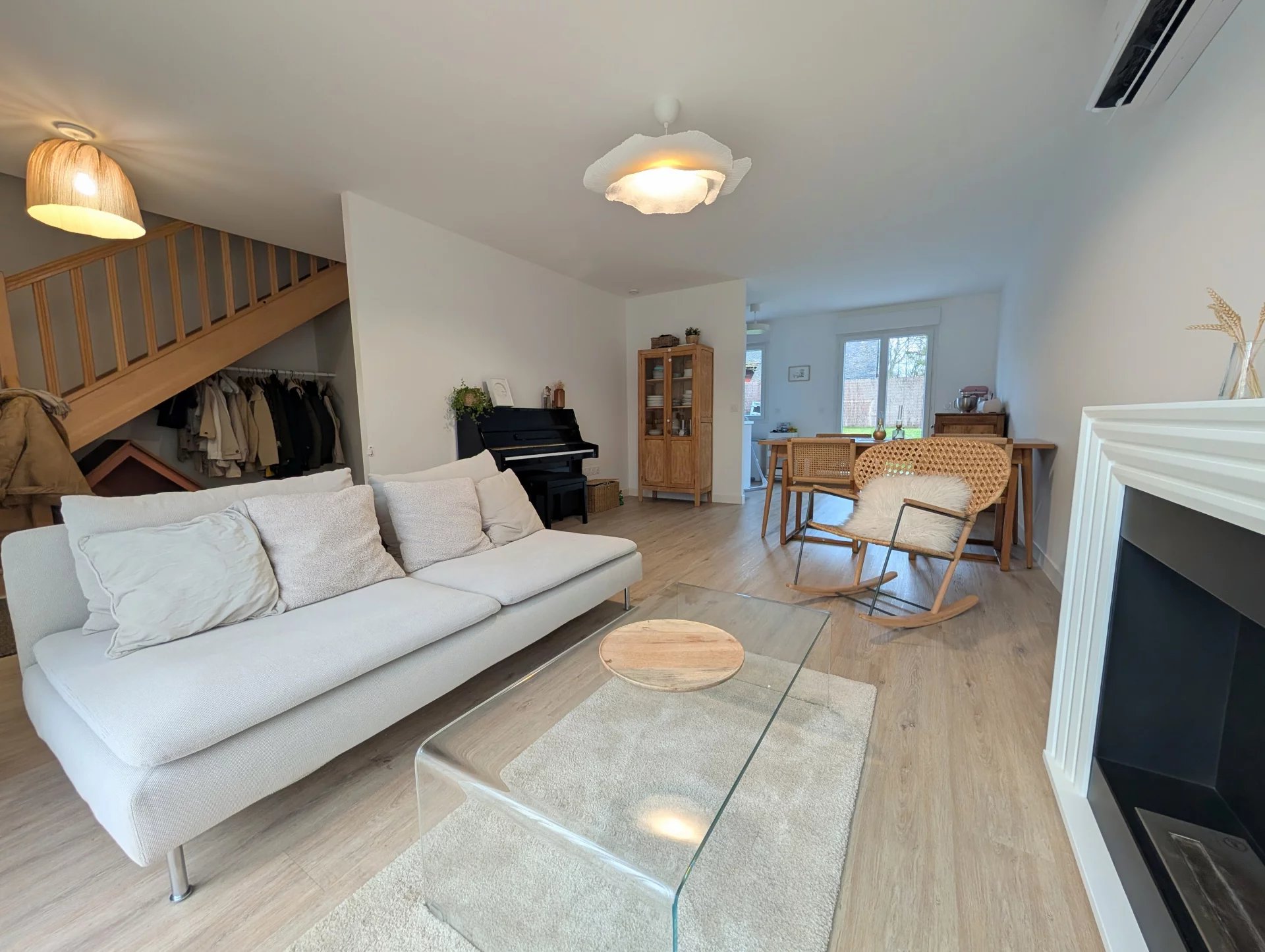 Idéalement située (écoles, commerces et forêt à pied en une dizaine de minutes), maison construite en 2025 en excellent état. Le rez-de-chaussée accueille une entrée desservant une salle de douche avec toilettes, une buanderie-cellier et une grande pièce de vie bénéficiant d'une double exposition. La cuisine est aménagée et équipée (four, plaque de cuisson, hotte aspirante, lave-vaisselle). L'étage abrite trois chambres, une spacieuse salle de bains avec toilettes et fenêtre. Le jardin est clos et comporte espaces engazonnés, une terrasse et aire de stationnement. Excellentes performances énergétiques (DPE classe A) grâce à son isolation, le chauffage par pompe à chaleur et le ballon thermodynamique. Portail et volets roulants électriques. Logement raccordé à la fibre.