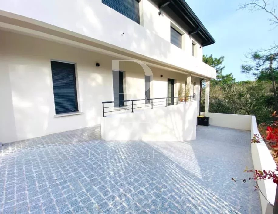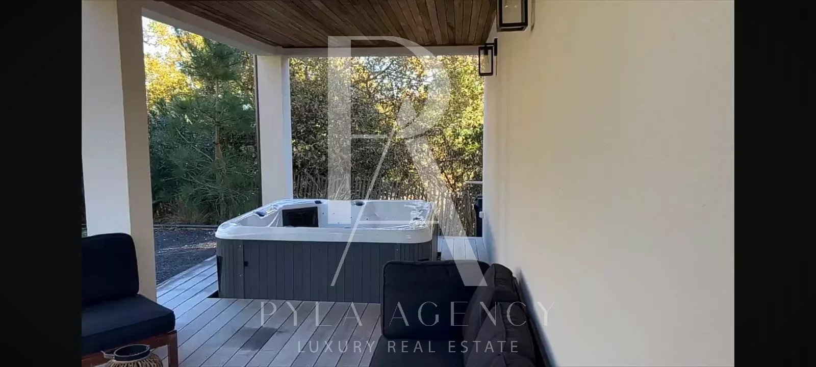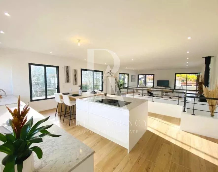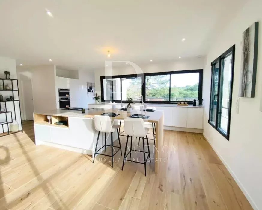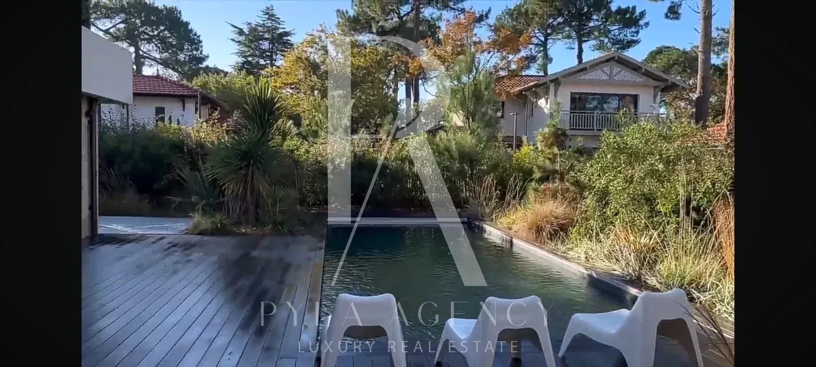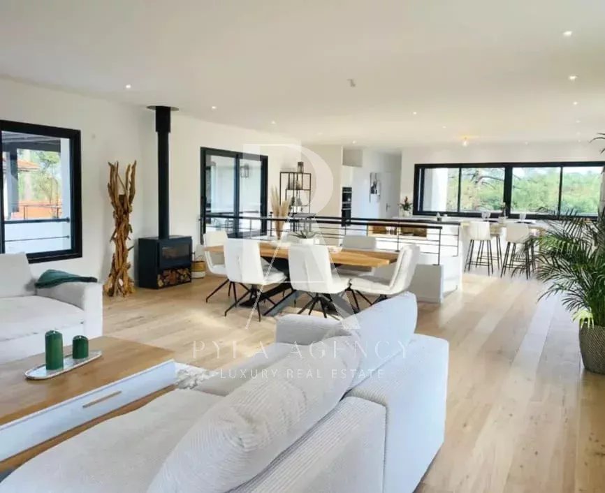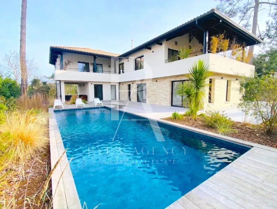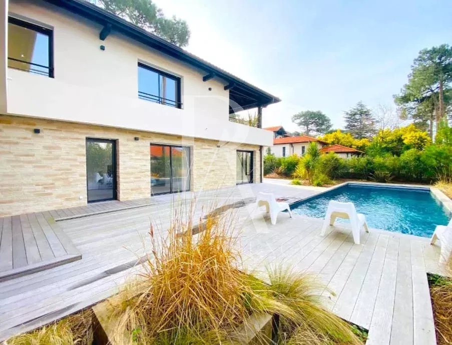 Maison neuve de 255 m² située dans un quartier calme des Abatilles, parfaite pour les amateurs de confort et de modernité. Dotée de quatre chambres avec leur salle d'eau, une autre grande pièce peut faire office de bureau ou de cinquième chambre. Cette propriété offre un espace de vie spacieux et lumineux. Depuis sa cuisine américaine entièrement ouverte sur un grand salon, vous pourrez admirer la vue panoramique sur la forêt environnante. L'espace extérieur comprend un jacuzzi et une piscine de 12 m exposée au sud, ainsi que de belles terrasses disposées autour de la maison pour profiter des journées ensoleillées. Le style contemporain s’allie ici à des équipements modernes pour offrir une expérience de vie exceptionnelle. Cette propriété unique est un véritable havre de paix au cœur d'Arcachon, prête à accueillir sa nouvelle famille.