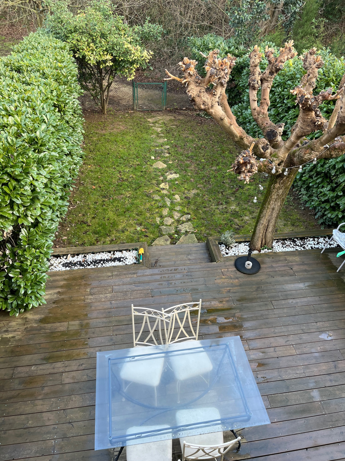 Le rez-de-chaussée accueille un séjour lumineux (30 m2 environ) ainsi qu'une cuisine ouvrant directement sur une magnifique terrasse de 40 m2, véritable prolongement de l'espace de vie. Celle-ci donne accés à un grand jardin clos d'environ 100 m2, atout exceptionnel parfait pour les moments de détente ou pour la vie de famille.
