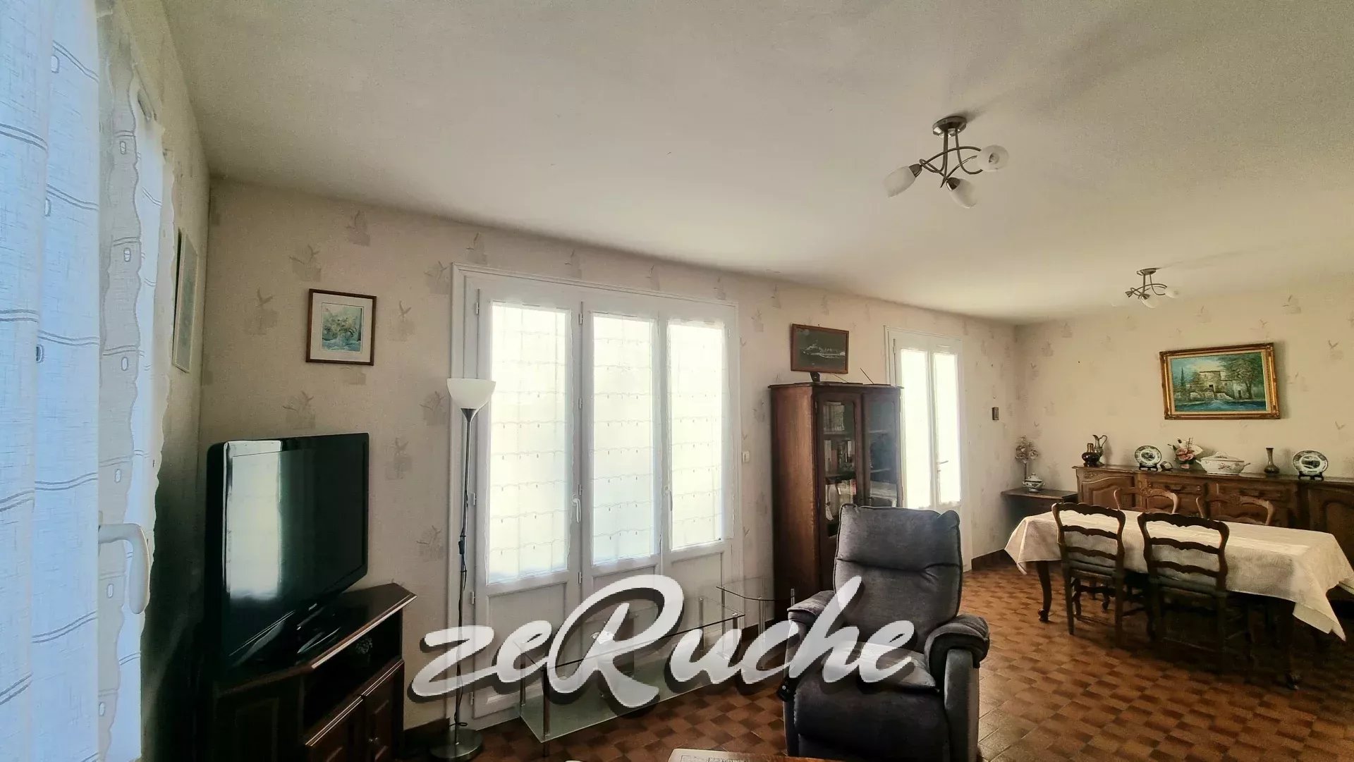 Une spacieuse entrée avec placard vous accueille d'abord et dessert une cuisine, un lumineux séjour exposé sud-ouest, avec cheminée et un accès intérieur au sous-sol.