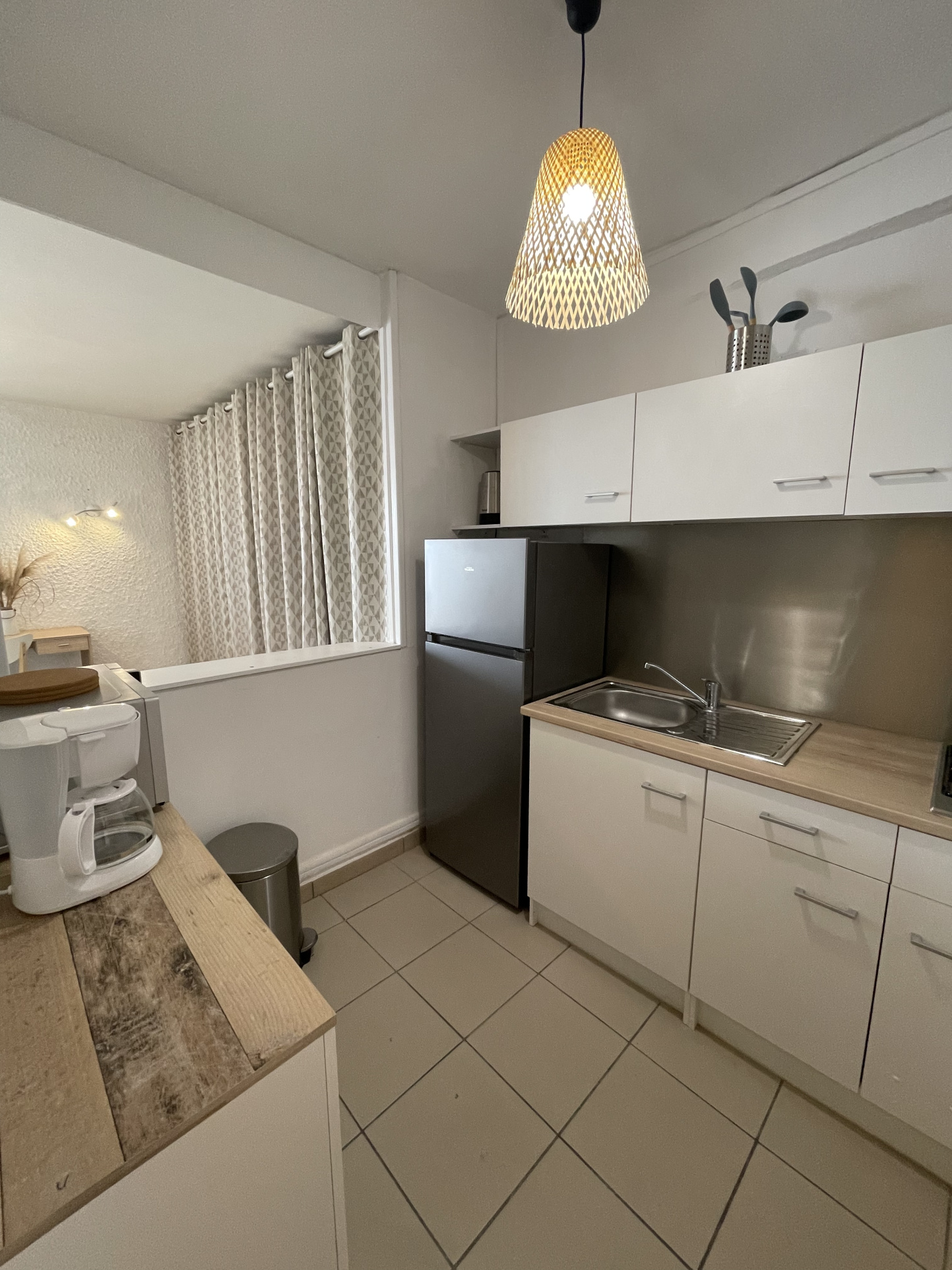 Canet plage centre, très bel appartement 2 pièces de 42 m2 entièrement rénové, tout équipé et meublé avec gout. Il se compose d'un salon avec coin bureau et dressing, chambre séparée, salle d'eau, wc séparé, cuisine équipée et terrasse avec vue imprenable sur la mer ! Proche de tous les commerces dans une résidence sécurisée avec ascenseur. (linges de lit + draps non fournis)