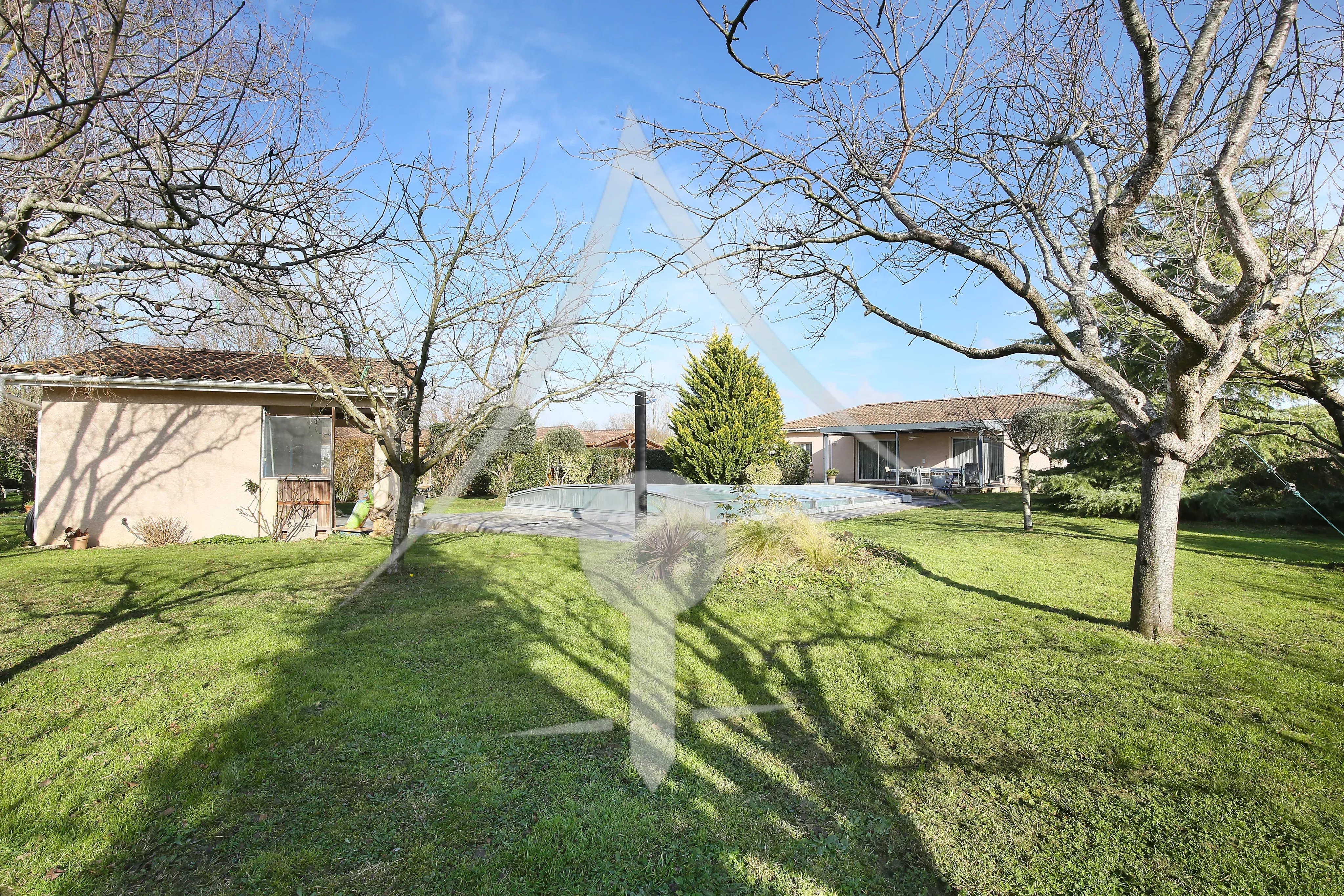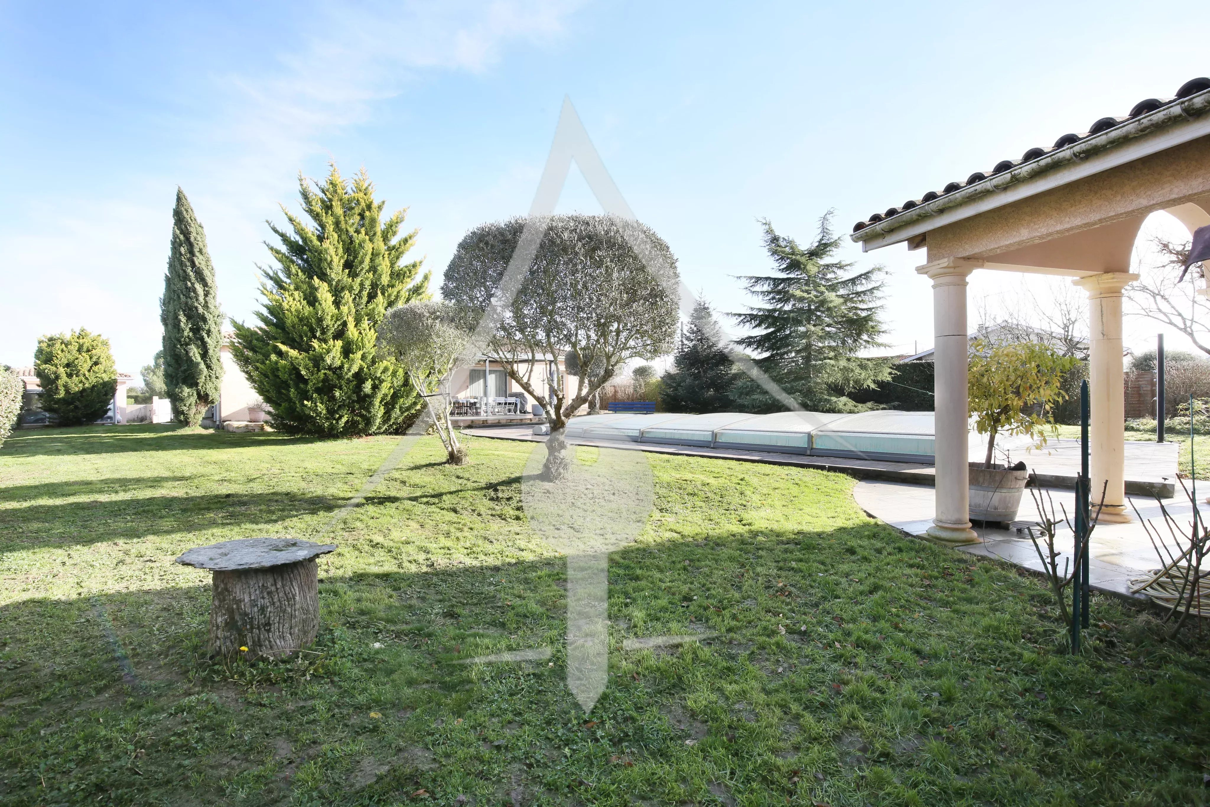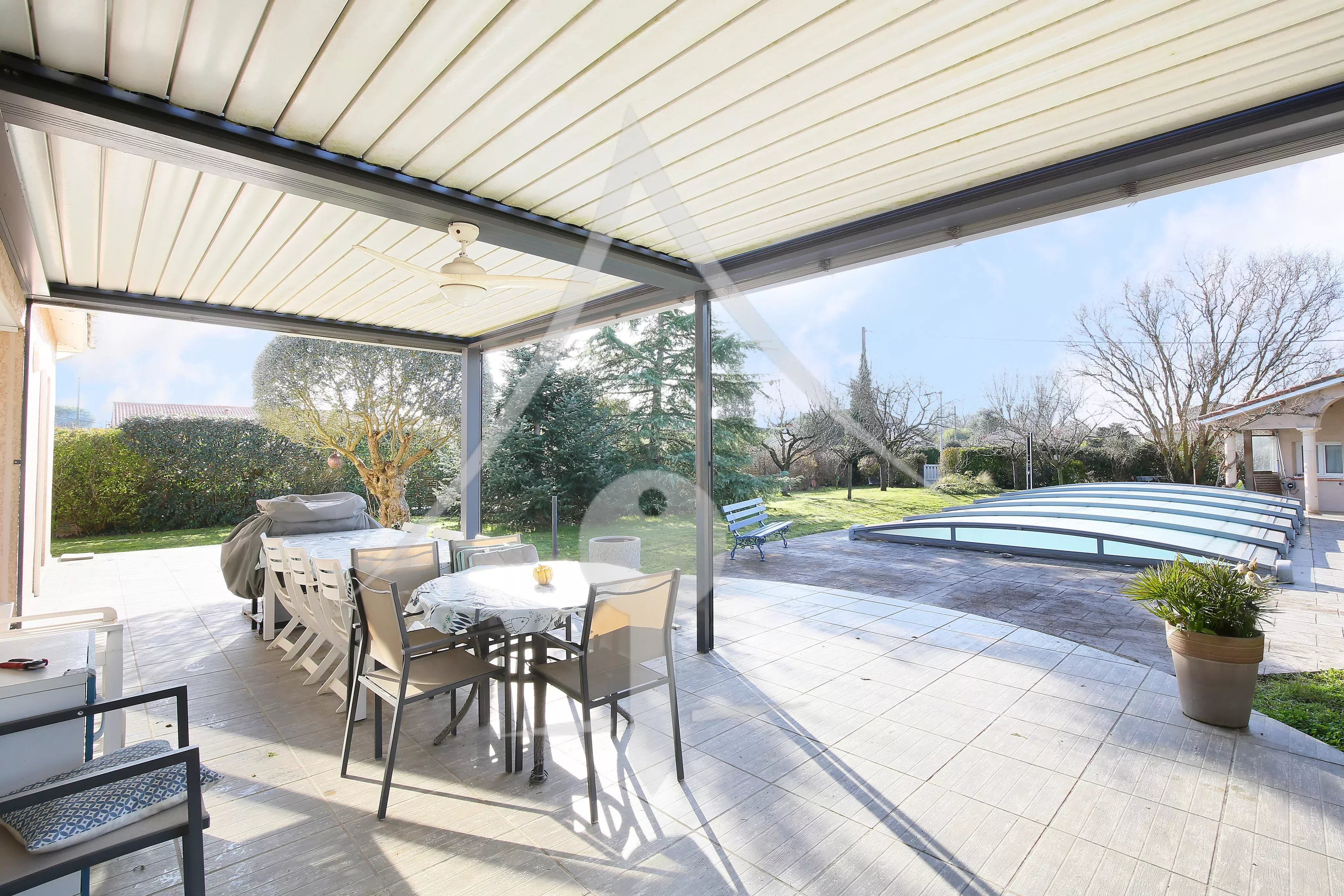 Les plus: Vie de plain pied, parcelle traversante de 2 200 m² superbement arborée, pergola bio climatique abritant une grande terrasse côté sud, maison lumineuse.