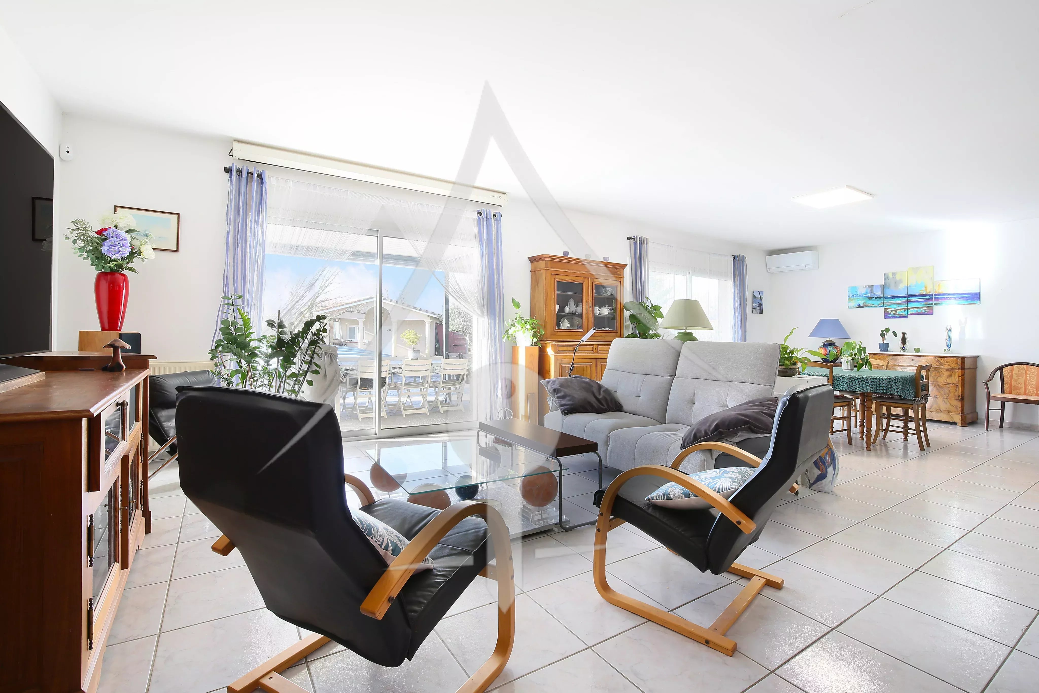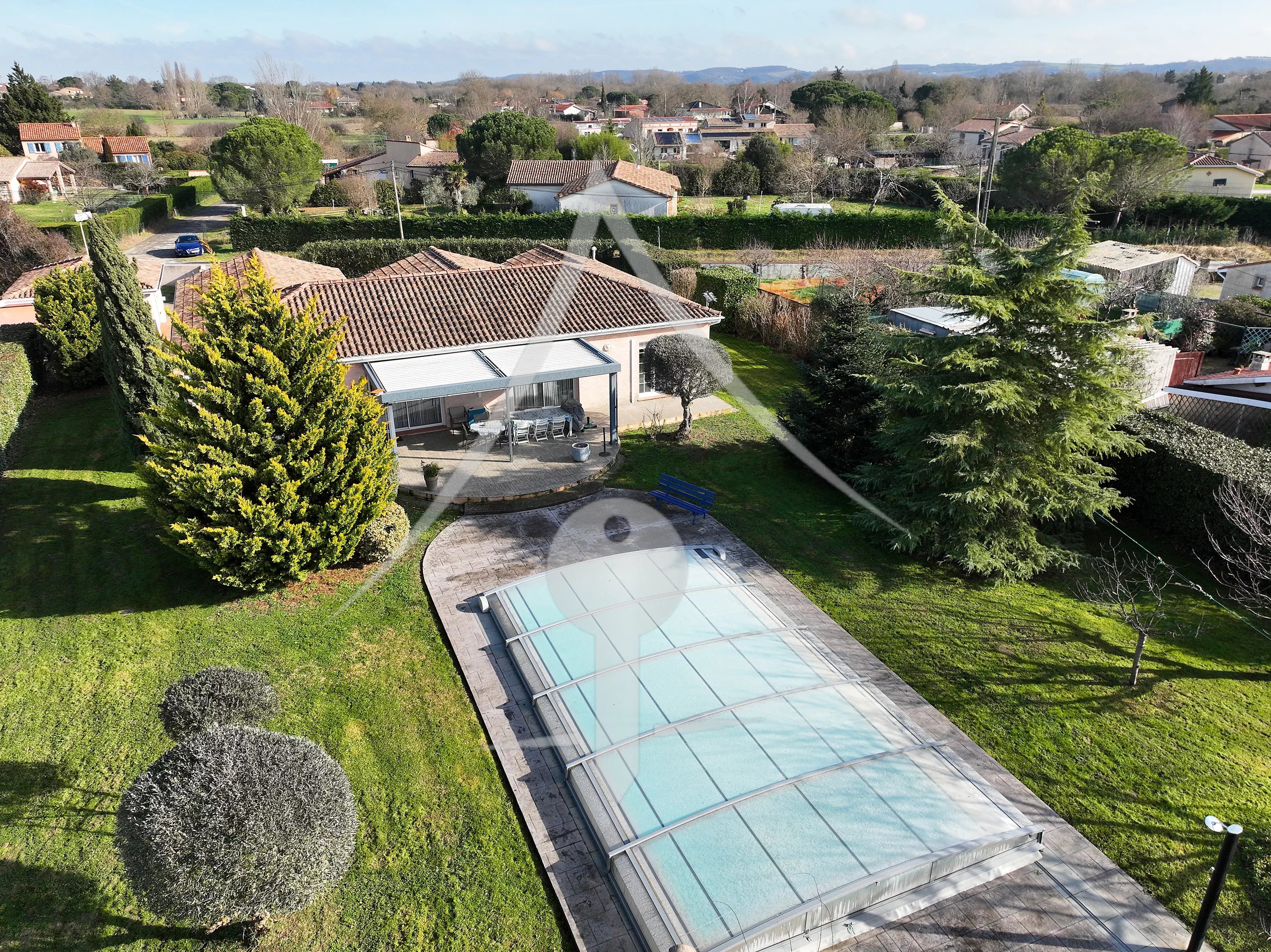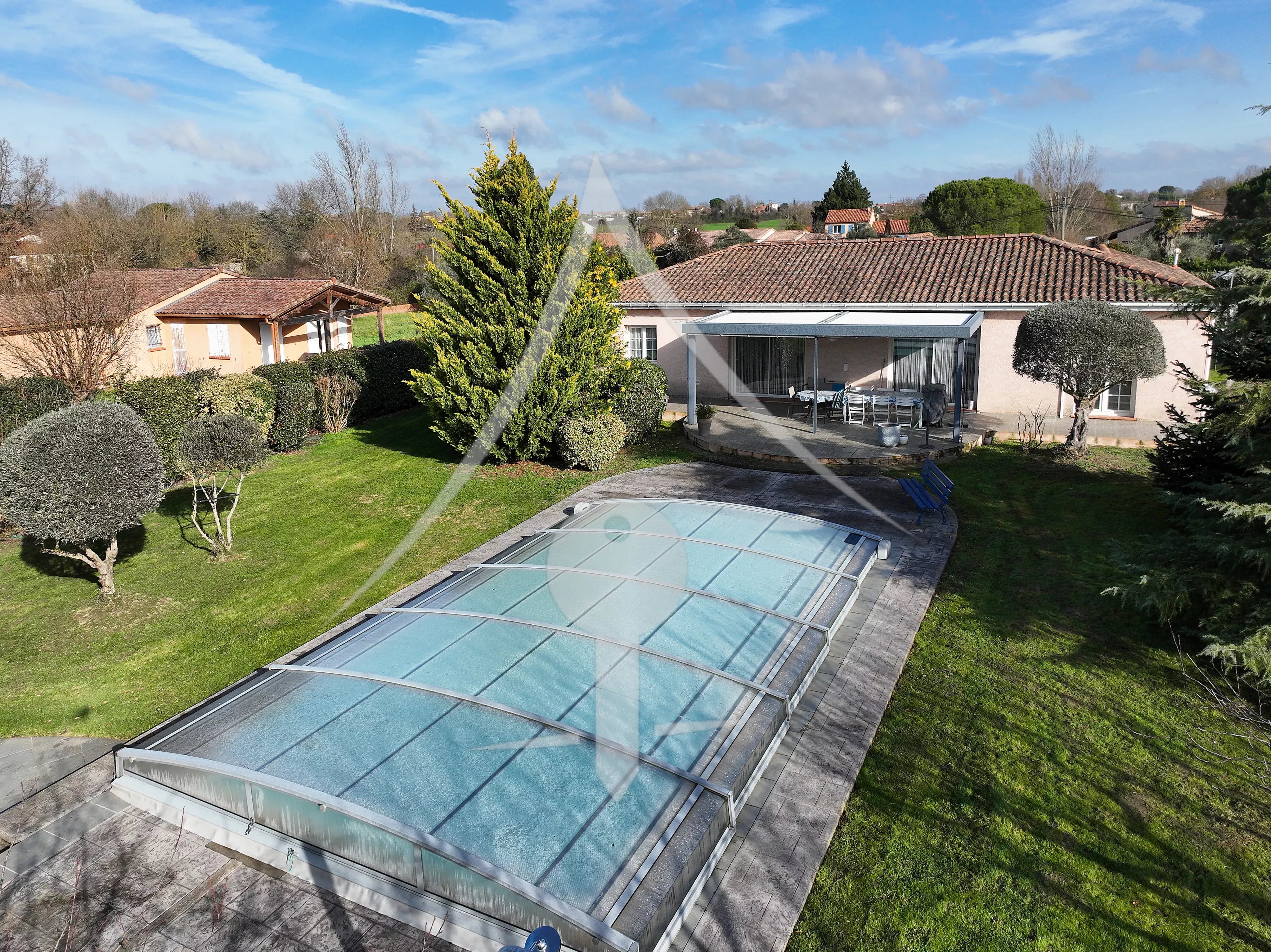 Les plus: Vie de plain pied, parcelle traversante de 2 200 m² superbement arborée, pergola bio climatique abritant une grande terrasse côté sud, maison lumineuse.