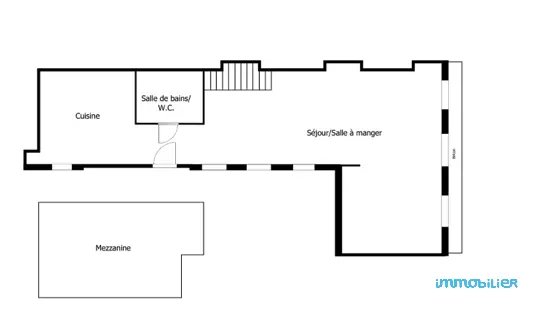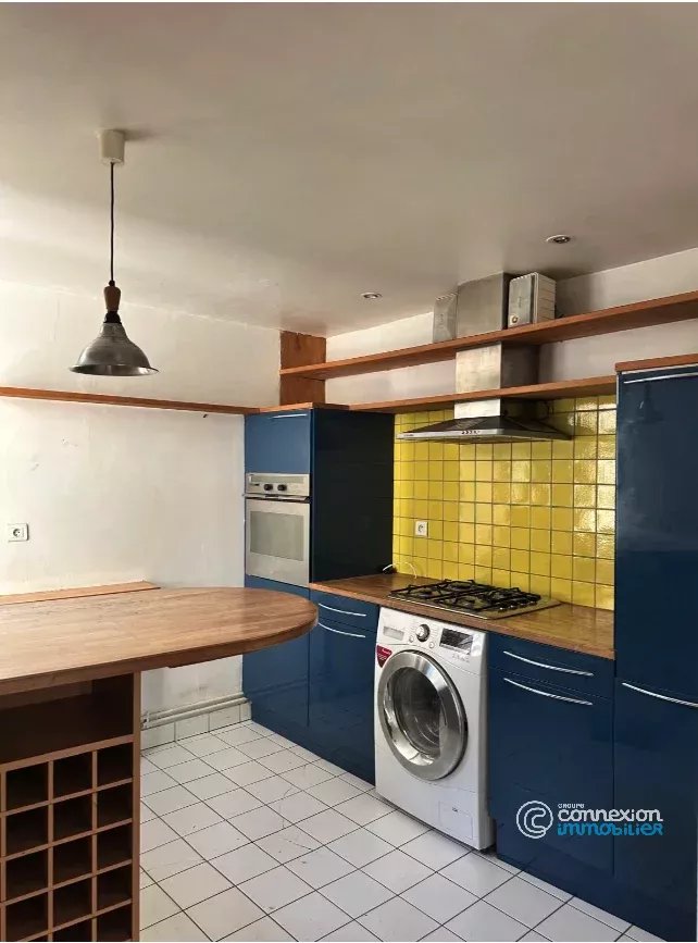 Charme de l'ancien : cheminée,poutres apparentes ,cuisine séparée, mezzanine de 16 m² et salle de bains.