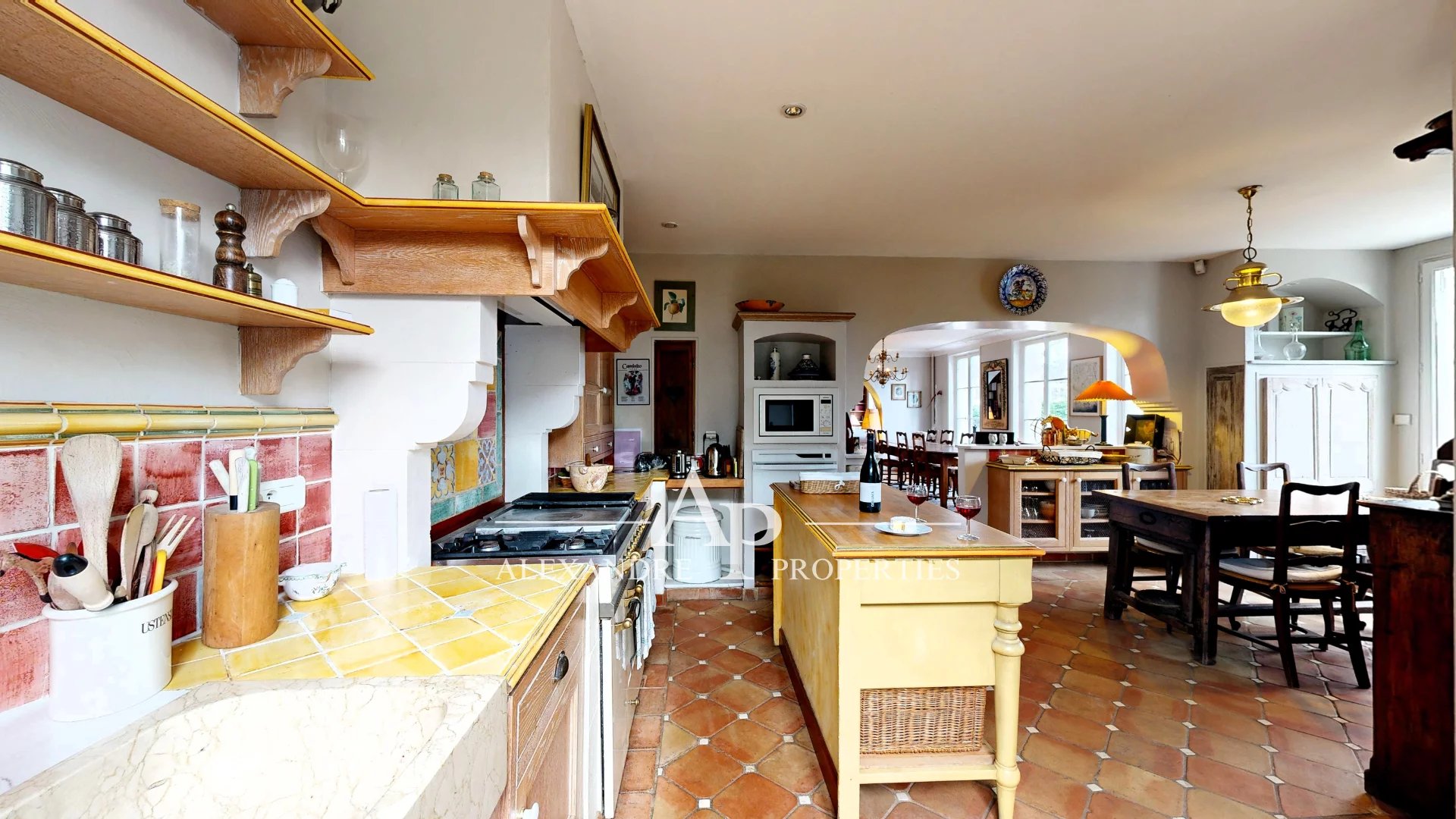 Au rez-de-chaussee. une vaste entree. un grand salon avec cheminee.une salle a manger. une cuisine dinatoire amenagee et equipee. un bureau/biblotheque.