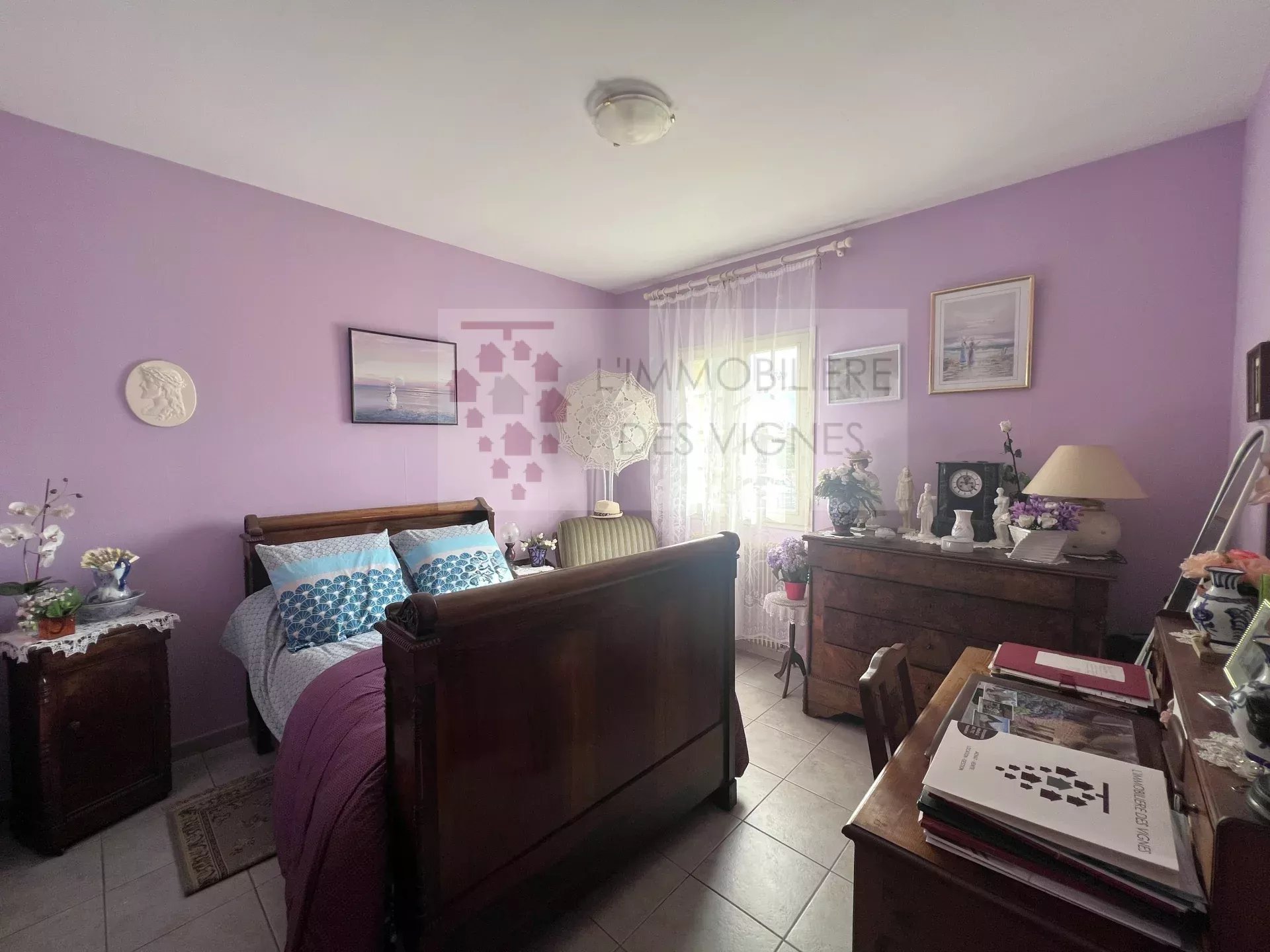 * EXCLUSIVITE L'IMMOBILIERE DES VIGNES * Votre agence indépendante, vous propose en exclusivité et à proximité immédiate des commerces, cette charmante maison de plain pied des années 90. D'une surface habitable de 100m², elle est composée d'une entrée, d'une cuisine séparée, d'un salon/séjour lumineux, d'une salle de bains, d'un wc indépendant et de 3 chambres. Un garage attenant de 27m² ainsi qu'une terrasse viennent compléter l'ensemble. Parcelle de plus de 760m², entièrement clôturée et joliment arborée. Saine et fonctionnelle, cette maison n'attend plus que vous !