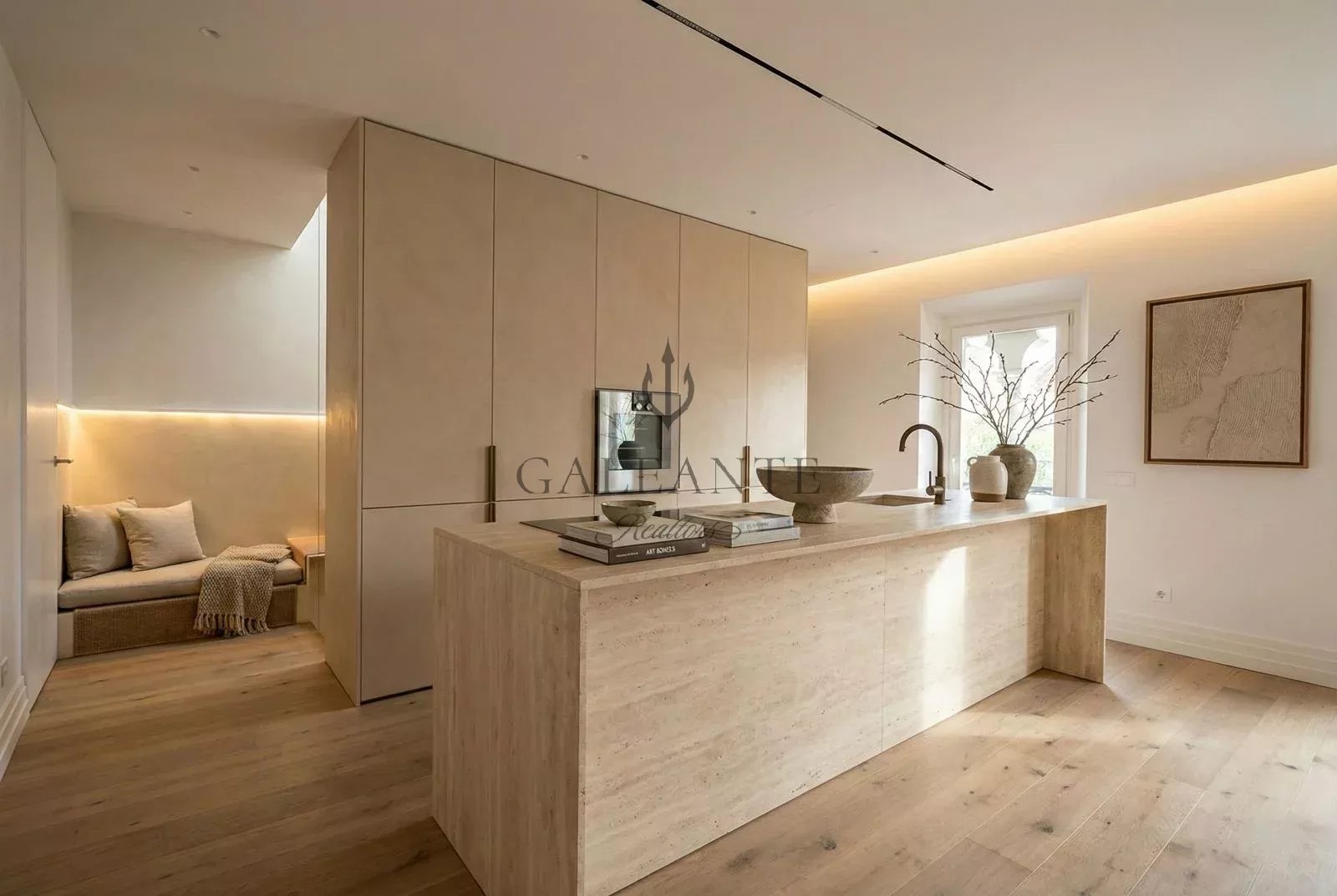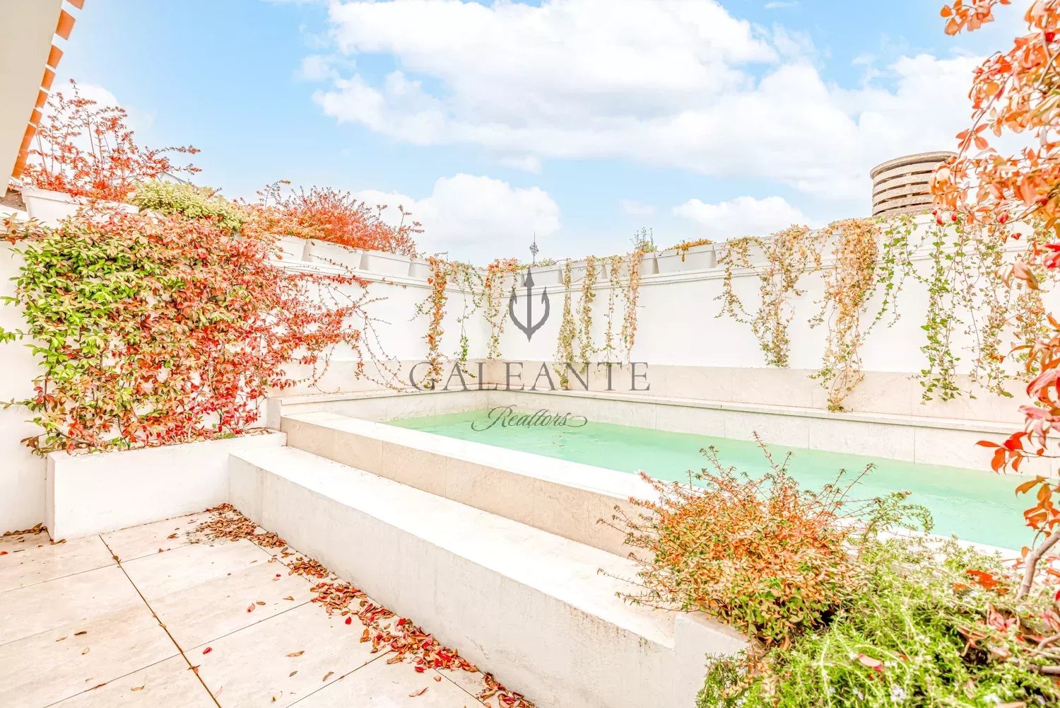Galeante Realtors unveils a rare masterpiece in the Madrid real estate market: a spectacular 311 m² triplex penthouse located in the heart of the prestigious Almagro neighborhood, Chamberí. Set within a restored four-story palace with a Neoclassical façade and a Parisian-inspired courtyard, this residence perfectly fuses historical grandeur with contemporary luxury. With a privileged southern exposure, the home is bathed in natural light throughout the day, highlighting the double-height ceilings, original exposed beams, and six exterior balconies that define the sophisticated open-plan main level, complete with a designer kitchen and wine cellar. Designed for ultimate privacy, the lower level hosts the sleeping quarters with two luxurious en-suite bedrooms, including a stunning master suite featuring dual walk-in closets and balconies with skyline views. However, the crown jewel of this property is the unparalleled 100 m² private rooftop terrace—a true urban oasis featuring a private swimming pool, a landscaped garden, and two independent glass-enclosed studios ideal for a home office, gym, or guest suite. Complete with a private garage within the building, this residence offers an unrepeatable opportunity to experience palatial living in the sky of Madrid.