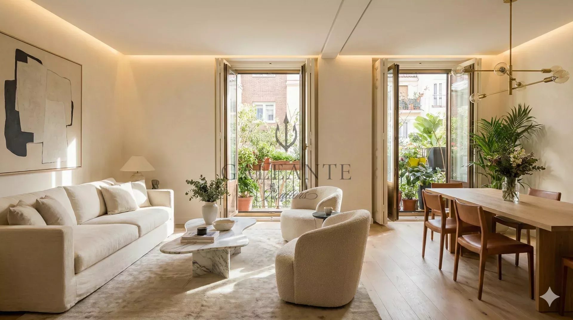 Nestled on one of the most coveted corners of the Justicia neighborhood, this property represents a unique arbitrage opportunity for those seeking exclusivity and significant appreciation potential in central Madrid. The residence, entirely exterior with an imposing corner facade (chaflán), stands out for its exceptional luminosity thanks to a triple orientation that ensures natural light from dawn to dusk. Its five stately balconies—four gracing the social area and one in the master bedroom—define an aristocratic character integrated into a building meticulously rehabilitated in 1996, which preserves historic elements such as its carved wood entrance, high ceilings, and traditional ironwork. This residence is presented as a premier blank canvas for a high-end refurbishment project; as the interior layout is free of load-bearing walls (muros de carga), it allows for total architectural freedom to adapt the space to the most demanding contemporary standards. With an archetypal structure of the period, soaring ceilings, and cross-ventilation in every room, the asset offers an unbeatable "defensive moat" due to its strategic location near Tribunal and Fuencarral. This is a definitive "Value-Add" investment piece, ideal for transformation into a sophisticated designer home in a market with a structural shortage of corner exterior products.