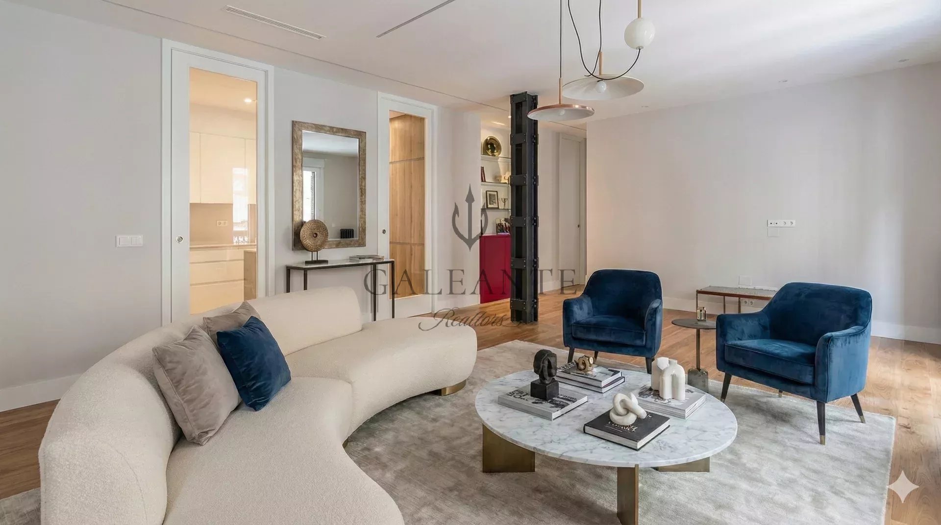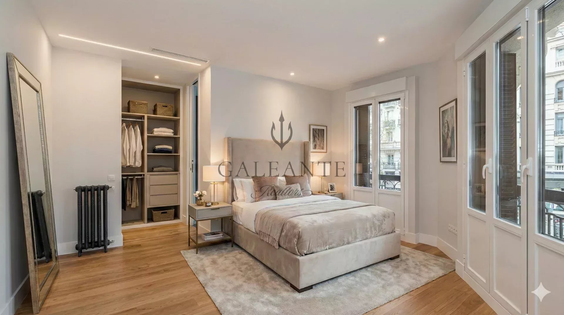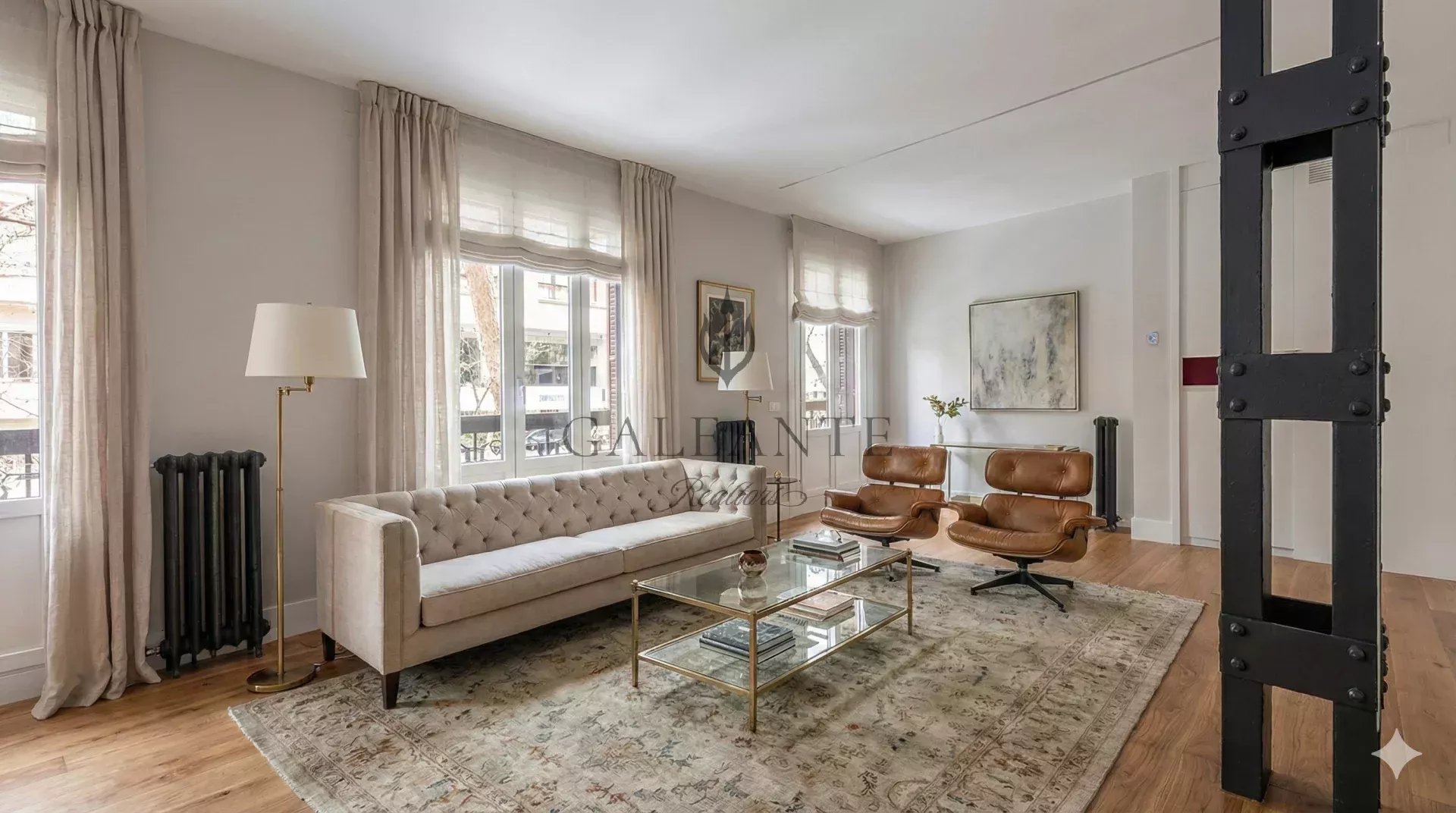 Located at the prestigious intersection of Príncipe de Vergara and Hermosilla streets, this property represents a singular opportunity in the Barrio de Salamanca. Situated on the first floor of an elegant 1931 classic building, the residence stands out for its imposing architectural presence and a generous ceiling height that evokes the stately elegance of the era. With a surface area of 149 m², the asset is defined by an exceptional feature that is rare for the area: eight exterior corner balconies that flood the space with natural light, offer cross-ventilation, and provide clear views of the treetops. The residence underwent a bespoke full renovation in 2022, utilizing the highest quality materials and a timeless design. Having been used for barely four months as a second home for foreign owners, the property is in pristine, move-in-ready condition. The interiors feature custom floor-to-ceiling carpentry and flooring in natural oak wood, warm indirect lighting, and an independent kitchen equipped with modern, high-end, low-consumption appliances. It is delivered fully furnished with a modern and sober style, allowing for an immediate transition into a sophisticated lifestyle.