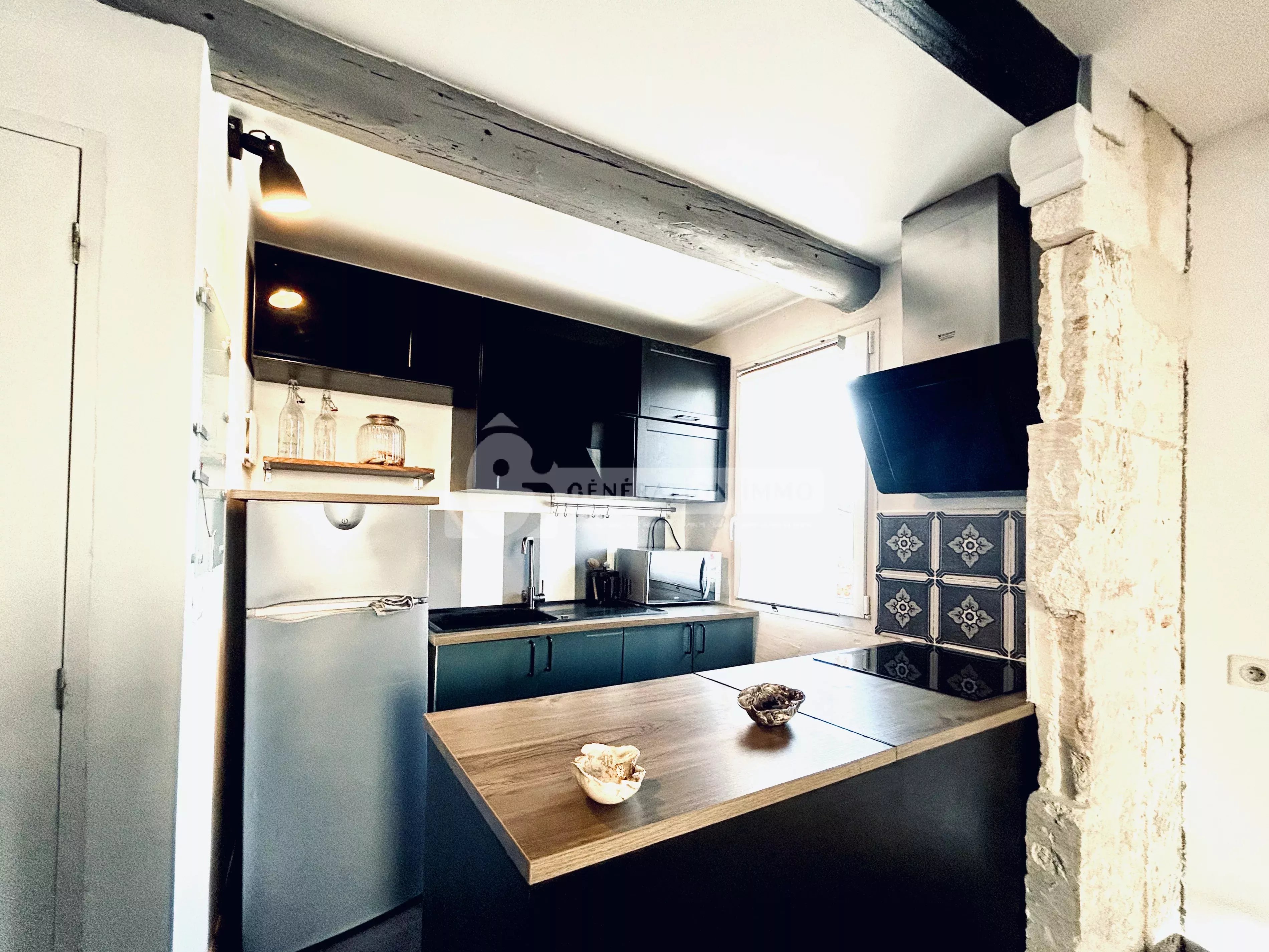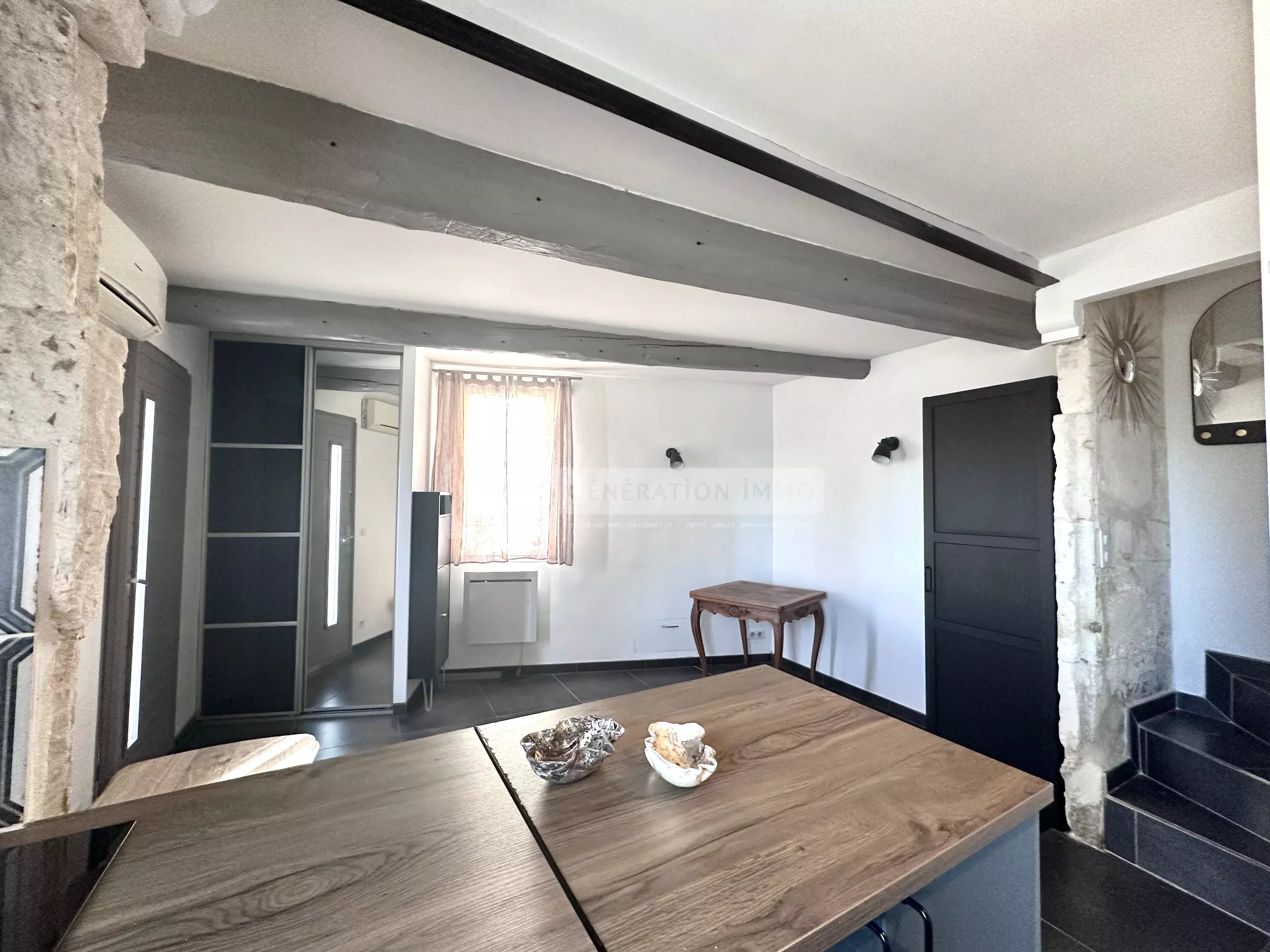 Maison de village meublée d'environ 40m² comprenant au rez-de-chaussée une pièce de vie avec cuisine ouverte sur le salon, à l'étage : un palier qui dessert une chambre, une salle de bain et au dernier étage : une mezzanine pouvant servir de deuxième couchage. Libre de suite. Loyer mensuel : 650 euros Charges : 10 euros Caution : 1300 euros Honoraires d'agence : 400 euros