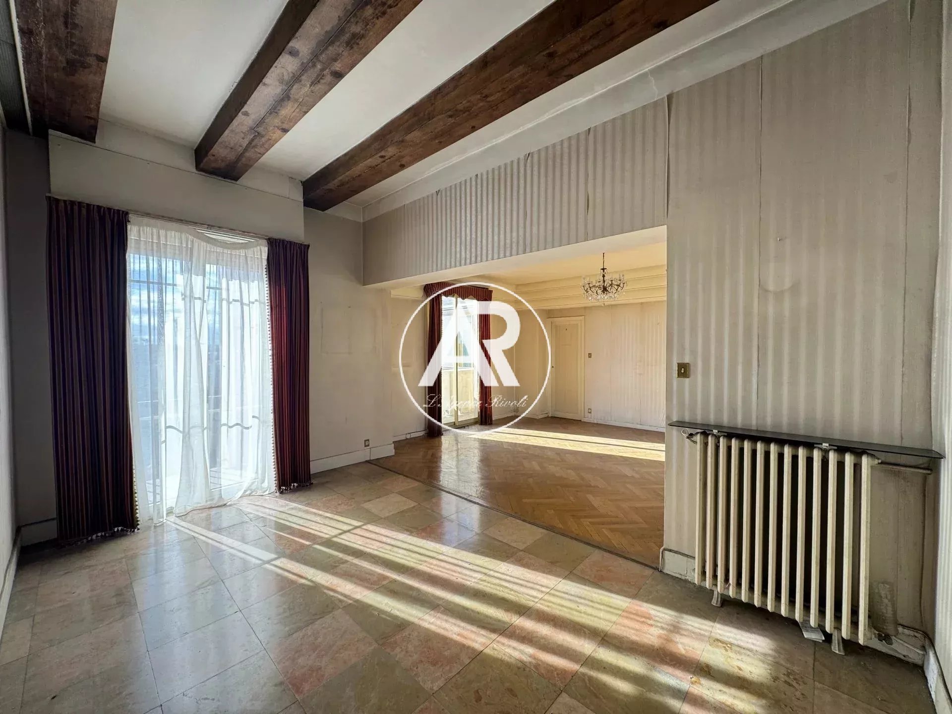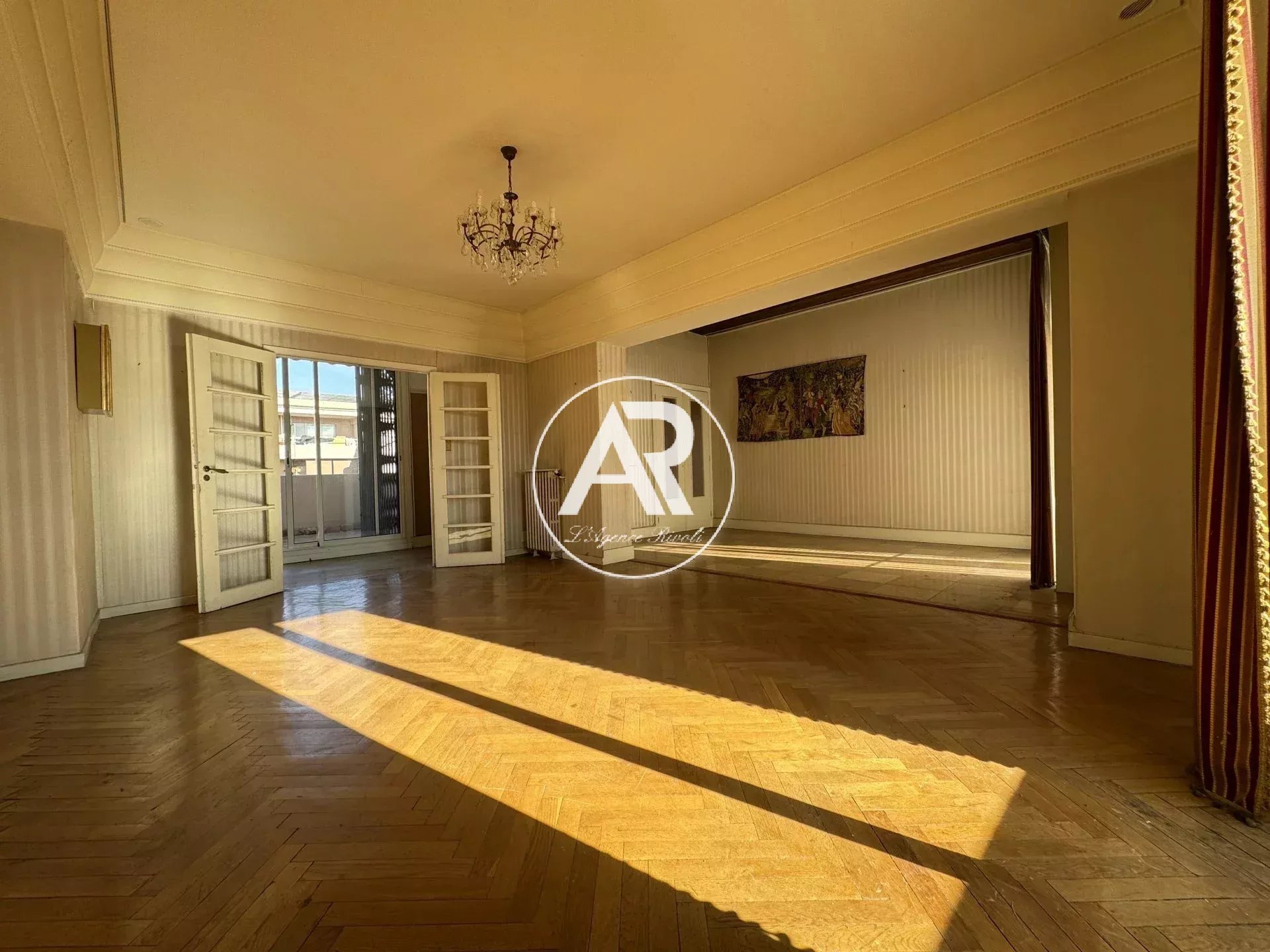 NICE - TZAREWITCH : À proximité immédiate de l'Église Russe, EN DERNIER ÉTAGE, 6 PIÈCES de 156m² AVEC TERRASSES ET BALCONS de 123m². Fort potentiel pour ce bien rare. Résidence principale ou investissement locatif pour collocation. Composé d'un double séjour ouvrant sur un balcon exposé SUD, d'une cuisine indépendante, de 3 chambres dont une suite parentale avec sa propre salle d'eau, d'un vaste bureau, de nombreux placards et rangements, d'une salle de bains, de WC indépendant, ainsi que de balcons et plusieurs terrasses totalisant environ 170 m² d'espaces extérieurs. Appartement lumineux et ensoleillé, bénéficiant d'une triple exposition SUD / OUEST / NORD. Belle hauteur sous plafond, moulures et parquet. Des travaux sont à prévoir. Une cave complète ce bien. Honoraires charge vendeurs.
