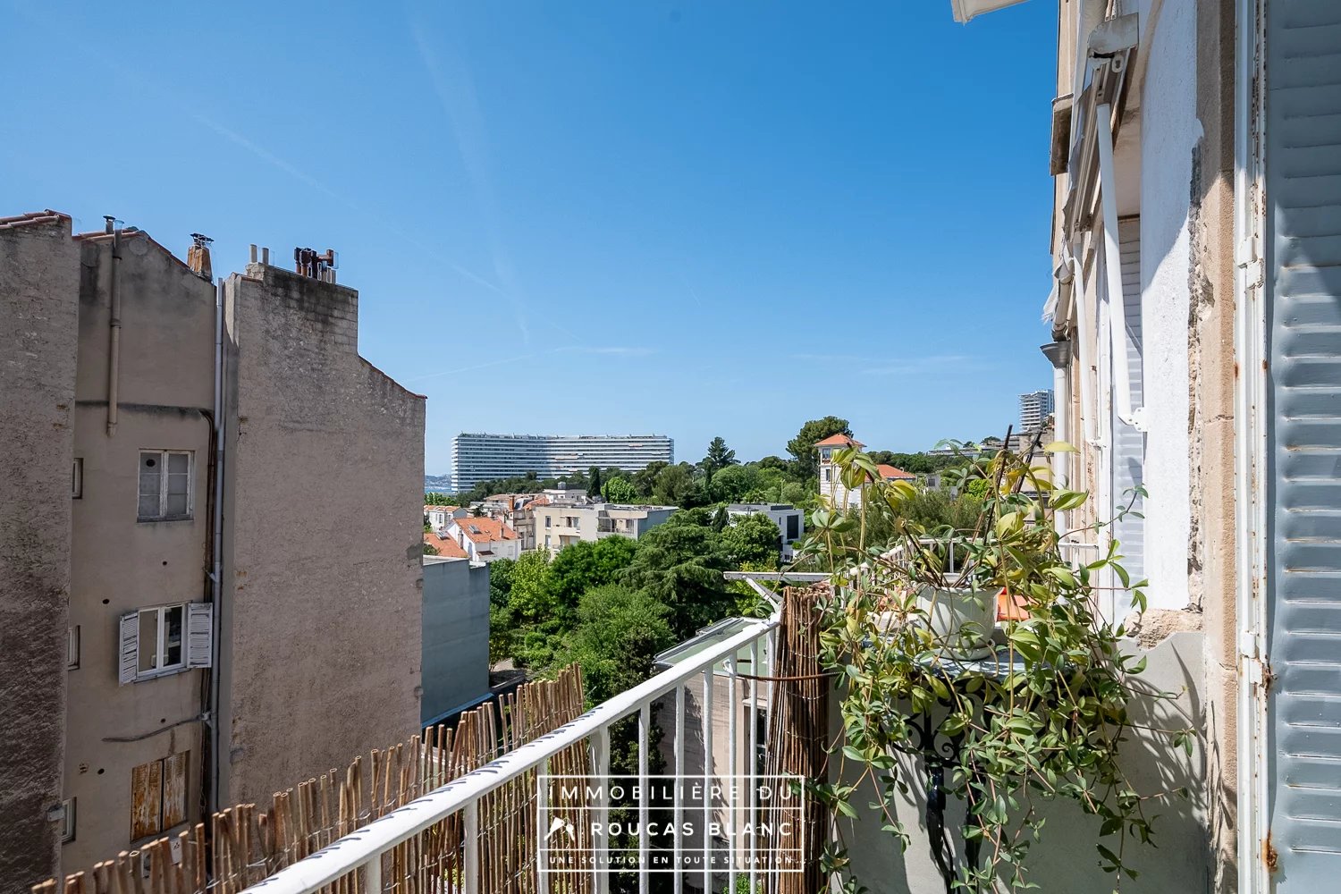 Au coeur du réputé « carré d’Or » le bien est composé d'une grande pièce à vivre de plus de 33 m2 exposée sud et donnant sur un balcon filant avec vue dégagée sur les toits de Marseille. Une cuisine totalement équipée, trois chambres de bonne taille avec rangements, un bureau, une salle de bain avec double vasques (baignoire et douche) et un Wc séparé.