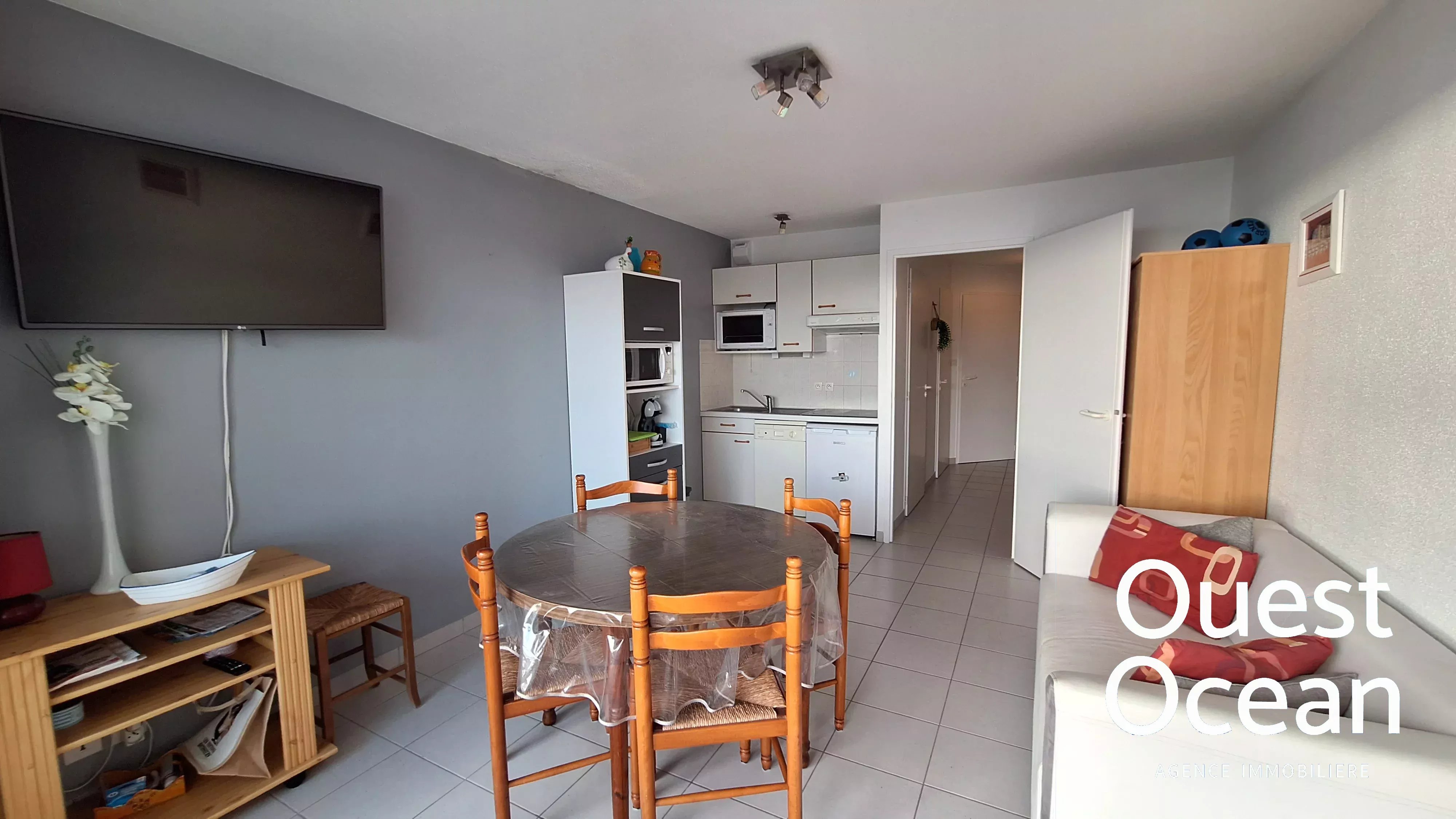 Votre agence Ouest Océan, vous accueille téléphoniquement du lundi au vendredi à partir de 8h30.Prenez rendez-vous avec notre conseiller afin de visiter cet appartement de type T2 de 32,62 m² situé quartier BOISVINET. Au rez-de-chaussée ,il est composé, d'une entrée, dégagement avec placard/penderie , coin nuit, une chambre, salle de douche avec placard, une pièce de vie avec VUE MER , kitchenette, terrasse.Vendu entièrement meublé et prêt à vous accueillir. Profitez de la vue sur la mer depuis le balcon.Jard-sur-Mer est une destination prisée, offrant tranquillité et accessibilité aux commodités locales. Une occasion unique de saisir un espace de vie agréable alliant confort et charme balnéaire.