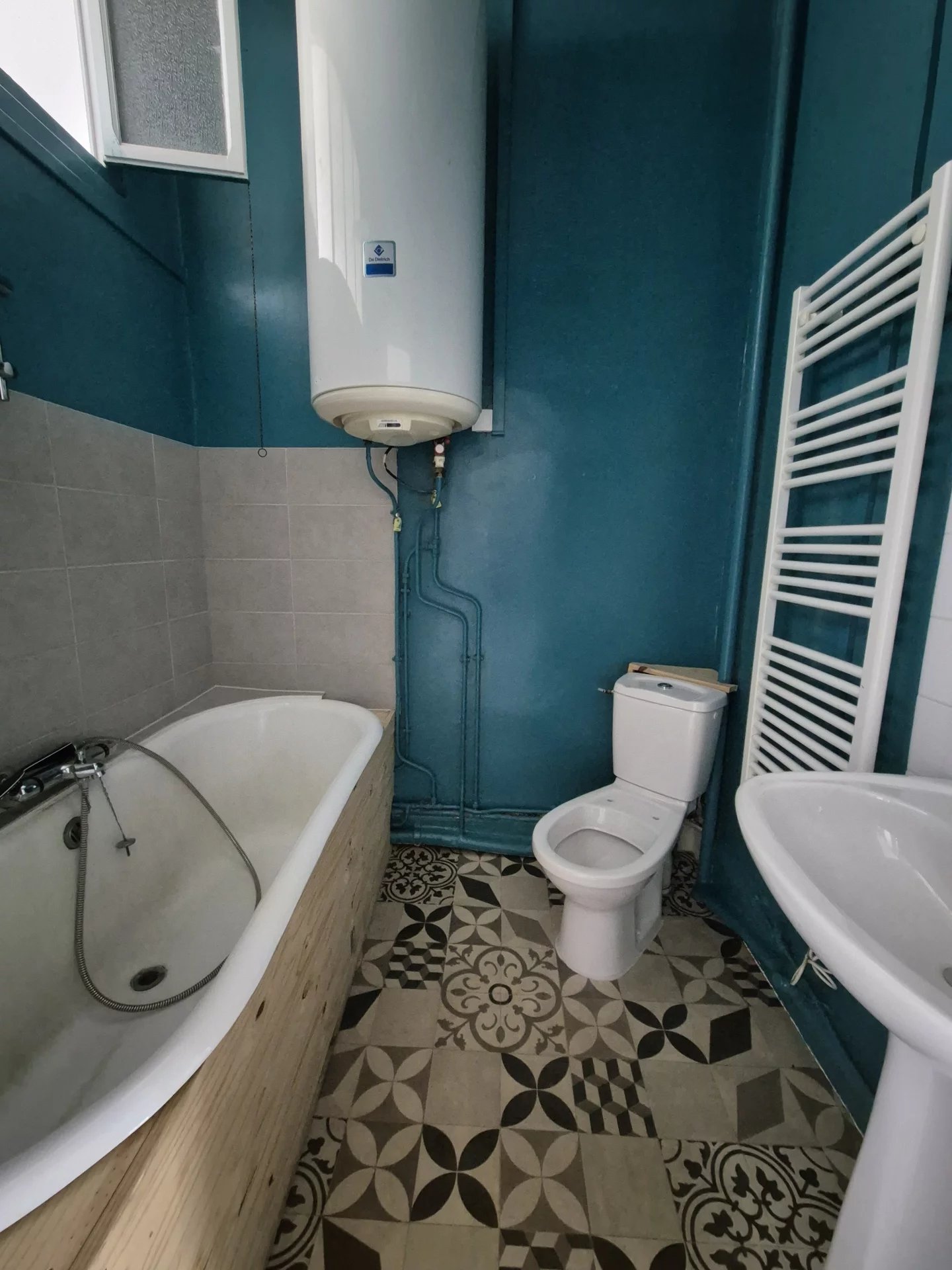 Au 1er étage : un appartement T3 (68 m² hab.) avec petit balcon et un appartement T2 (58 m² hab.) qui est le seul logement occupé par un locataire pour un loyer mensuel de 430 €.