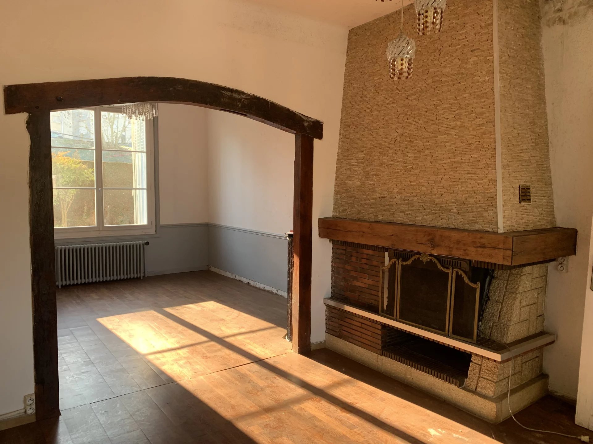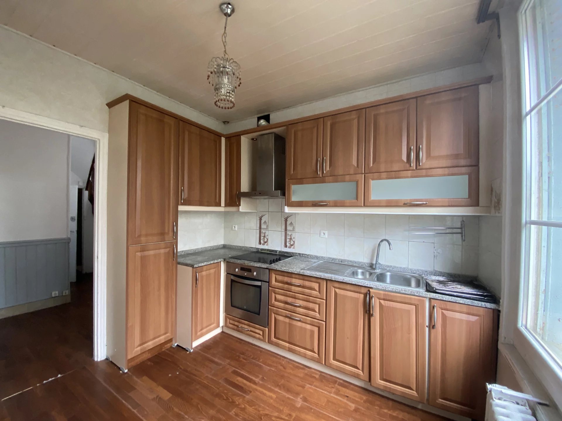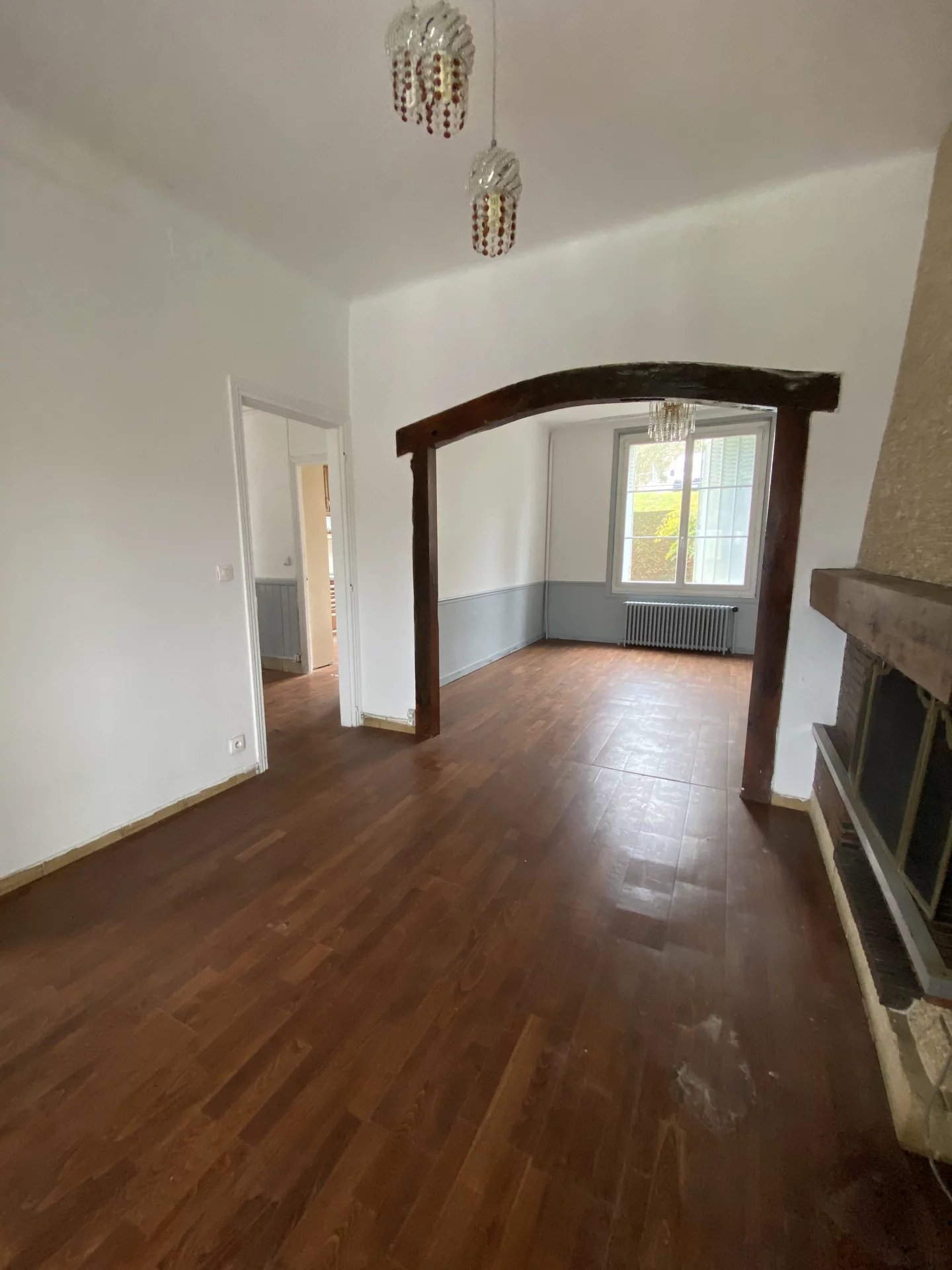 Dans le centre-ville de l'Aigle, charmante maison offrant sur deux niveaux et environ 117 m²: au rez-de-chaussée, une entrée, un salon-salle à manger avec cheminée, une cuisine indépendante et équipée, une chambre, une salle d'eau avec wc; à l'étage, un palier desservant deux chambres, une pièce pour future salle d'eau, un wc. Cette maison bien distribuée dispose d'un garage, d'une buanderie et d'un jardin clos d'environ 1255 m². Proche de toutes les commodités et à seulement 10 minutes à pied de la gare de l'Aigle.