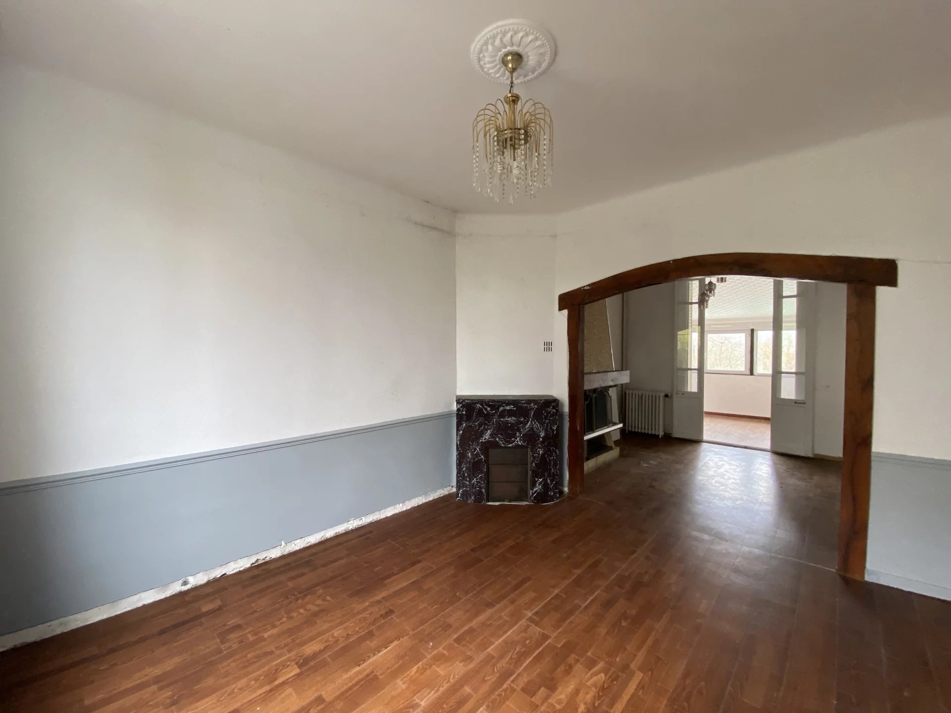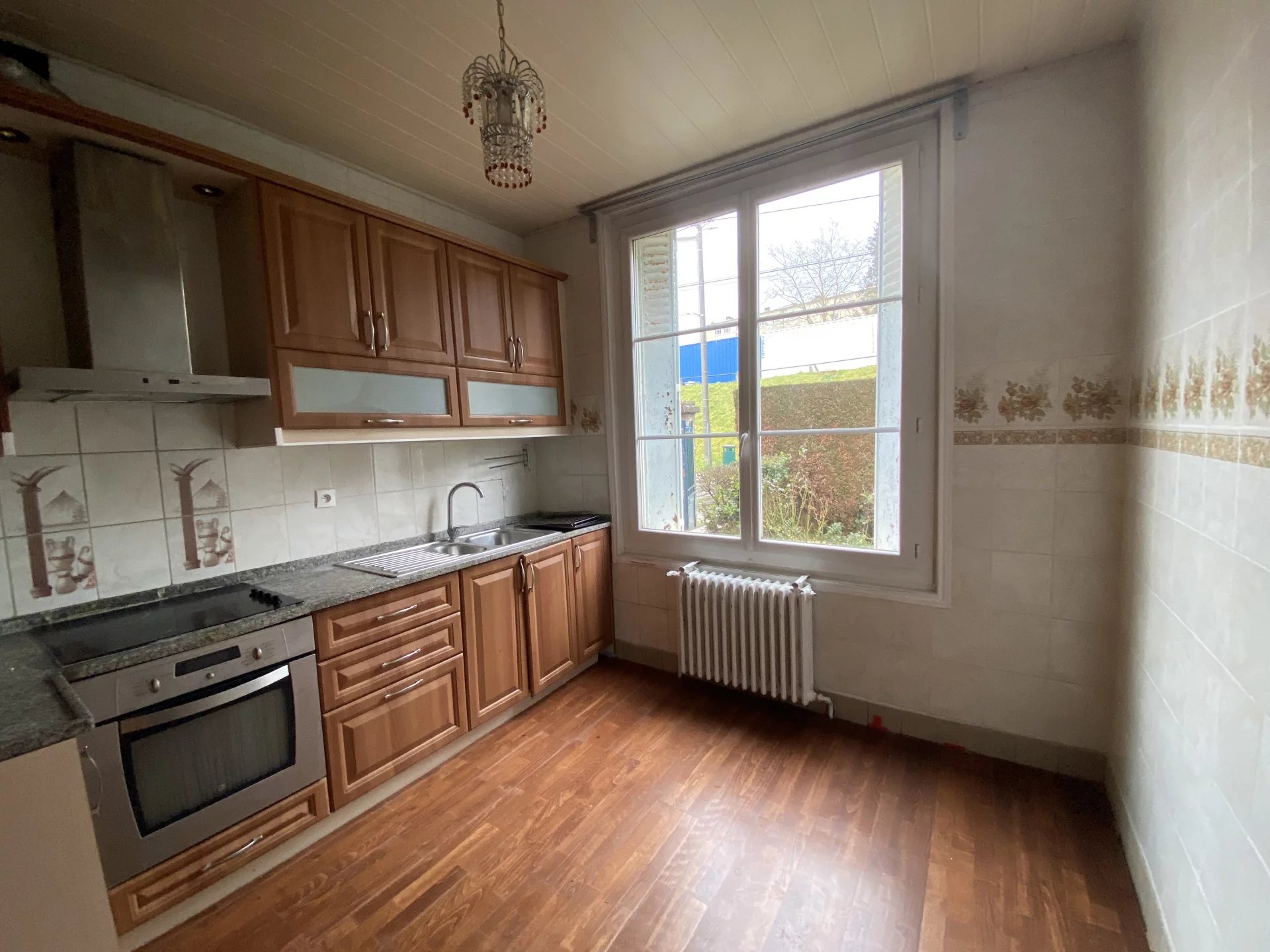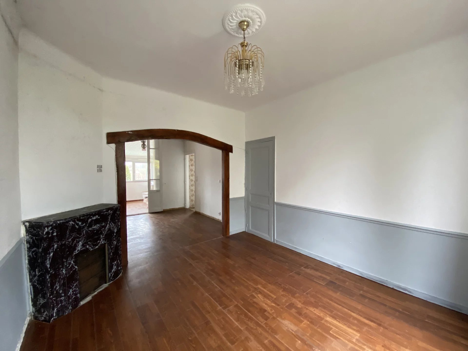 Dans le centre-ville de l'Aigle, charmante maison offrant sur deux niveaux et environ 117 m²: au rez-de-chaussée, une entrée, un salon-salle à manger avec cheminée, une cuisine indépendante et équipée, une chambre, une salle d'eau avec wc; à l'étage, un palier desservant deux chambres, une pièce pour future salle d'eau, un wc. Cette maison bien distribuée dispose d'un garage, d'une buanderie et d'un jardin clos d'environ 1255 m². Proche de toutes les commodités et à seulement 10 minutes à pied de la gare de l'Aigle.