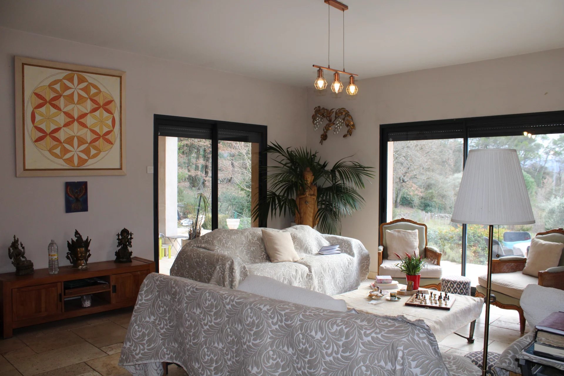 Située à seulement 5mn du centre de Saint Maximin la Sainte-Baume et à 20mn d'Aix-en-Provence, cette propriété de plain pied séduit par son architecture élégante, construite sur un terrain de 3900 m² arboré d'essences méditerranéennes, elle offre un écrin de nature où règnent calme et sérénité. La maison bâtie avec des matériaux nobles, offre dès son entrée de beaux volumes avec un spacieux séjour/cuisine de plus de 76 m² exposé Sud, donnant sur une grande terrasse pour profiter de la vue dégagée et de la piscine. Le coin nuit, pensé en 2 parties distinctes, se compose de 5 chambres, dont une de plus de 26 m², 2 salles de bain, dressing, buanderie. La propriété bénéficie, également, d'une dépendance d'environ 43 m² pour recevoir vos invités ou pour louer. Garage de 25 m² et abri voiture. Propriété à saisir