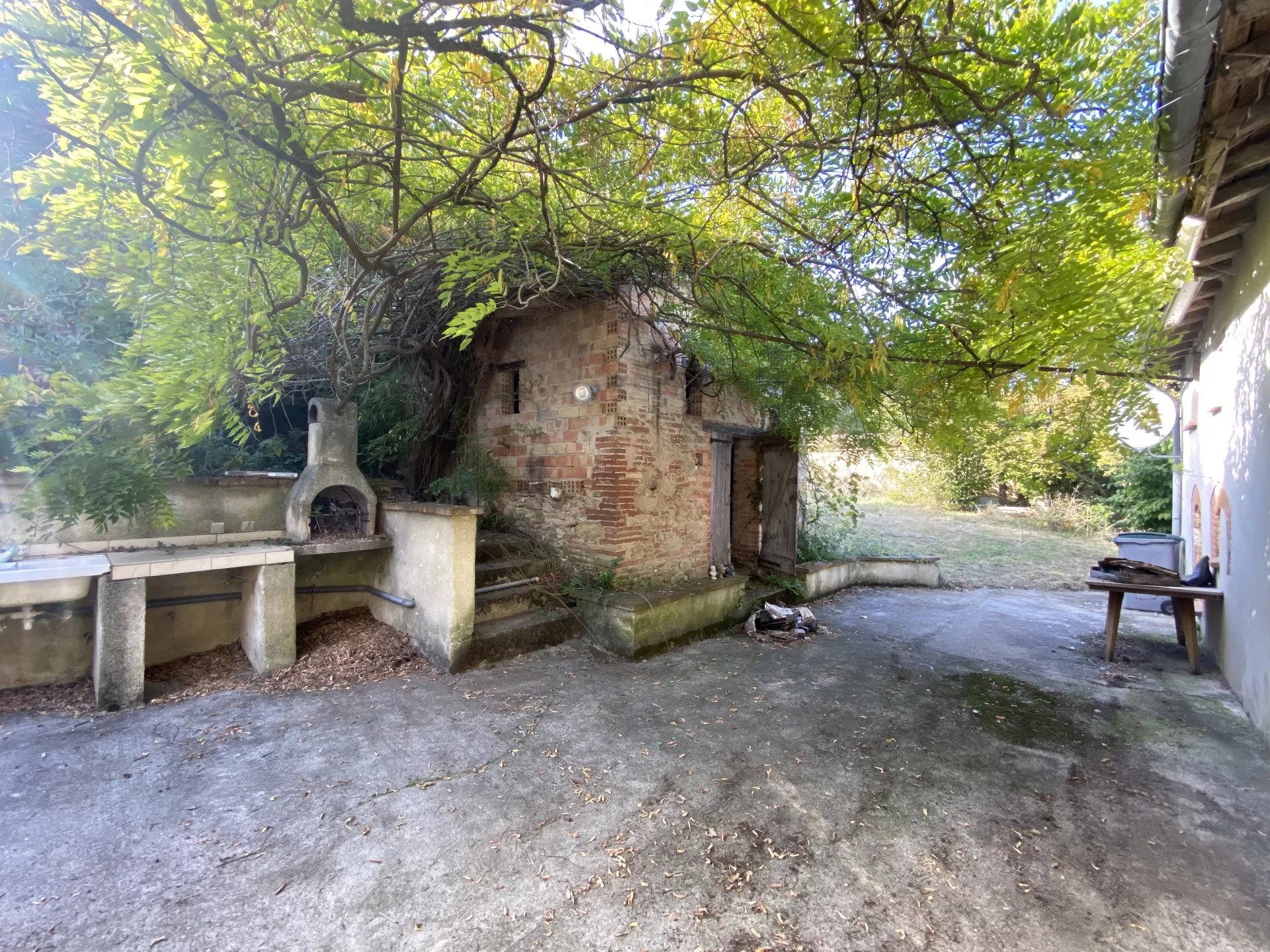 La pièce de vie ouvre côté sud sur une terrasse et une dépendance de 30 m2 permettant le stockage.