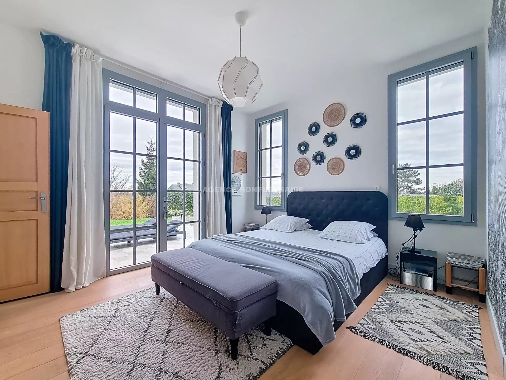A Honfleur, quartier St Léonard, maison contemporaine de plain-pied construite en 2018 d’une surface habitable de 262 m² sur un terrain de 2.400 m²comprenant :