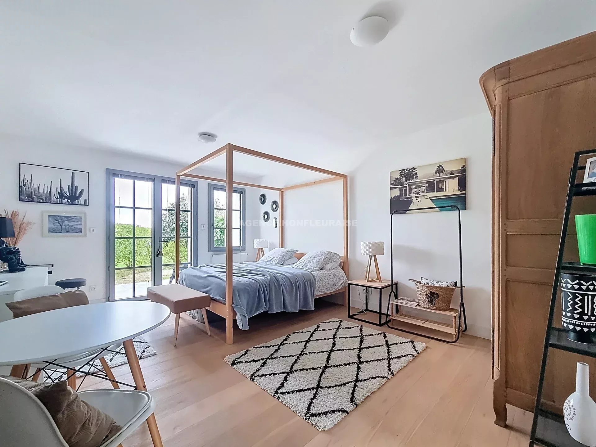 Pour compléter ce bien, deux studios accolés à la maison d’une surface de 26 m² chacun, entièrement équipés d’une pièce de vie avec cuisine aménagée et salle d’eau avec toilettes.