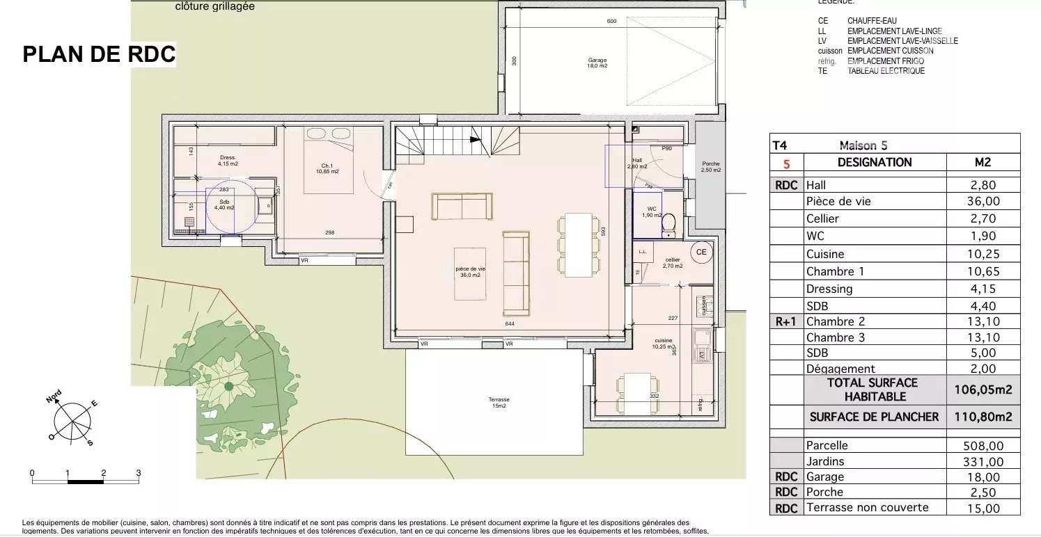 MAISON NEUVE – VENTE EN VEFA – 106,50 m² – NON MITOYENNE – PARCELLE 508 m² CLÔTURÉE LIVRAISON FIN 2026 Découvrez cette future maison individuelle en Vente en l’État Futur d’Achèvement (VEFA), un mode d’acquisition qui vous permet d’acheter un bien neuf sur plan, tout en bénéficiant de garanties constructeur et de frais de notaire réduits. Sur une parcelle de 508 m², découvrez cette maison neuve conçue pour offrir confort, fonctionnalité et modernité. Son garage de 18 m² ainsi que sa terrasse de 15 m² permettent de profiter pleinement des extérieurs en toute tranquillité. Le hall d’entrée avec placard accueille vos visiteurs avant de vous mener vers une pièce de vie lumineuse de 36 m². Cet espace comprend un séjour spacieux et une cuisine indépendante, offrant une organisation pratique et agréable du quotidien. Un cellier attenant vient compléter l’agencement, idéal pour le rangement et l’optimisation des espaces. WC indépendant. Au rez-de-chaussée, vous bénéficierez également d’une grande suite parentale, offrant un espace privé confortable et fonctionnel. À l’étage, l’espace nuit se poursuit avec : • Deux chambres, • Une salle de bain, parfaitement agencée pour accueillir la famille ou les invités. Cette maison représente une belle opportunité pour ceux qui recherchent un bien neuf, confortable et bien pensé, dans un environnement agréable.