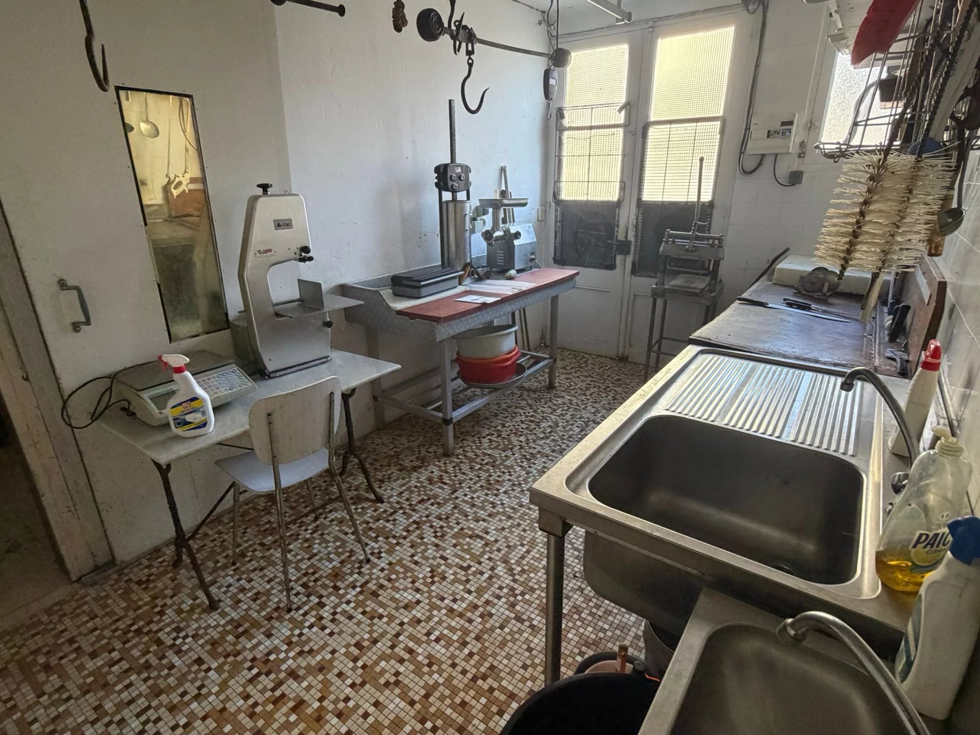 Un immeuble à usage de commerce et d’habitation, comprenant au rez de chaussée (environ 110m2), commerce, réserve, laboratoire avec accès extérieur, chambre froide, bureau, grande pièce de rangement avec arrière-cuisine et accès extérieur et chaufferie. A l’étage : d’un côté (au-dessus de la partie commerciale), partie non aménagée et 2 chambres, de l’autre côté, appartement indépendant en duplex d’environ 80m2 (loi carrez), composé d’une pièce de vie avec coin cuisine, 2 chambres, salle de douche et wc., au deuxième étage sous combles, 2 pièces aménagées. Parcelle de 279m2, avec cour et stationnements extérieurs, un grand garage (coin atelier, stationnements intérieurs, douche et wc)
