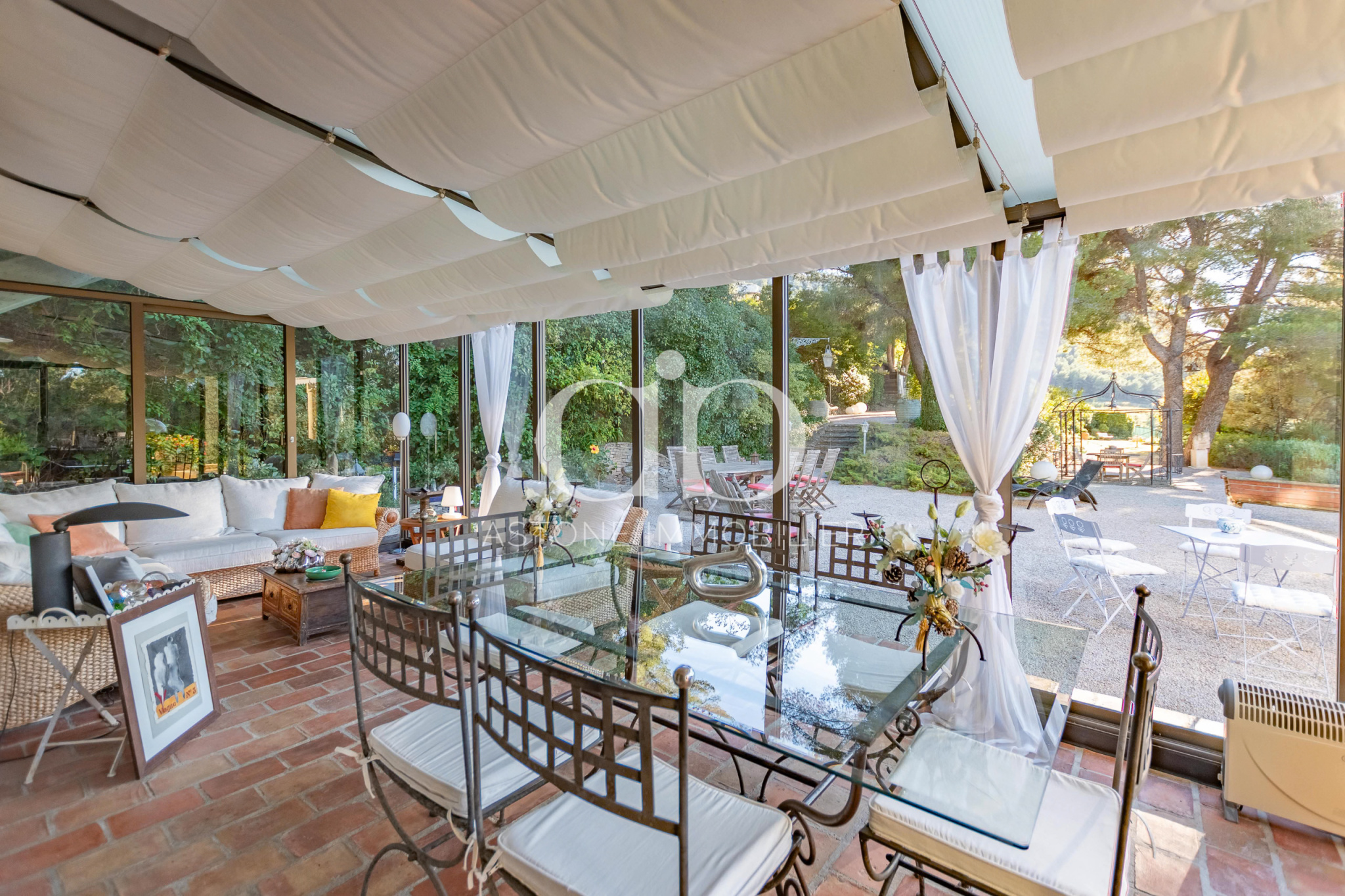 A quelques minutes du centre de Cassis, superbe propriété du début du 20ème siècle au sein d'un magnifique parc arboré de 4774m2 d'où l'on peut admirer la mer au loin,