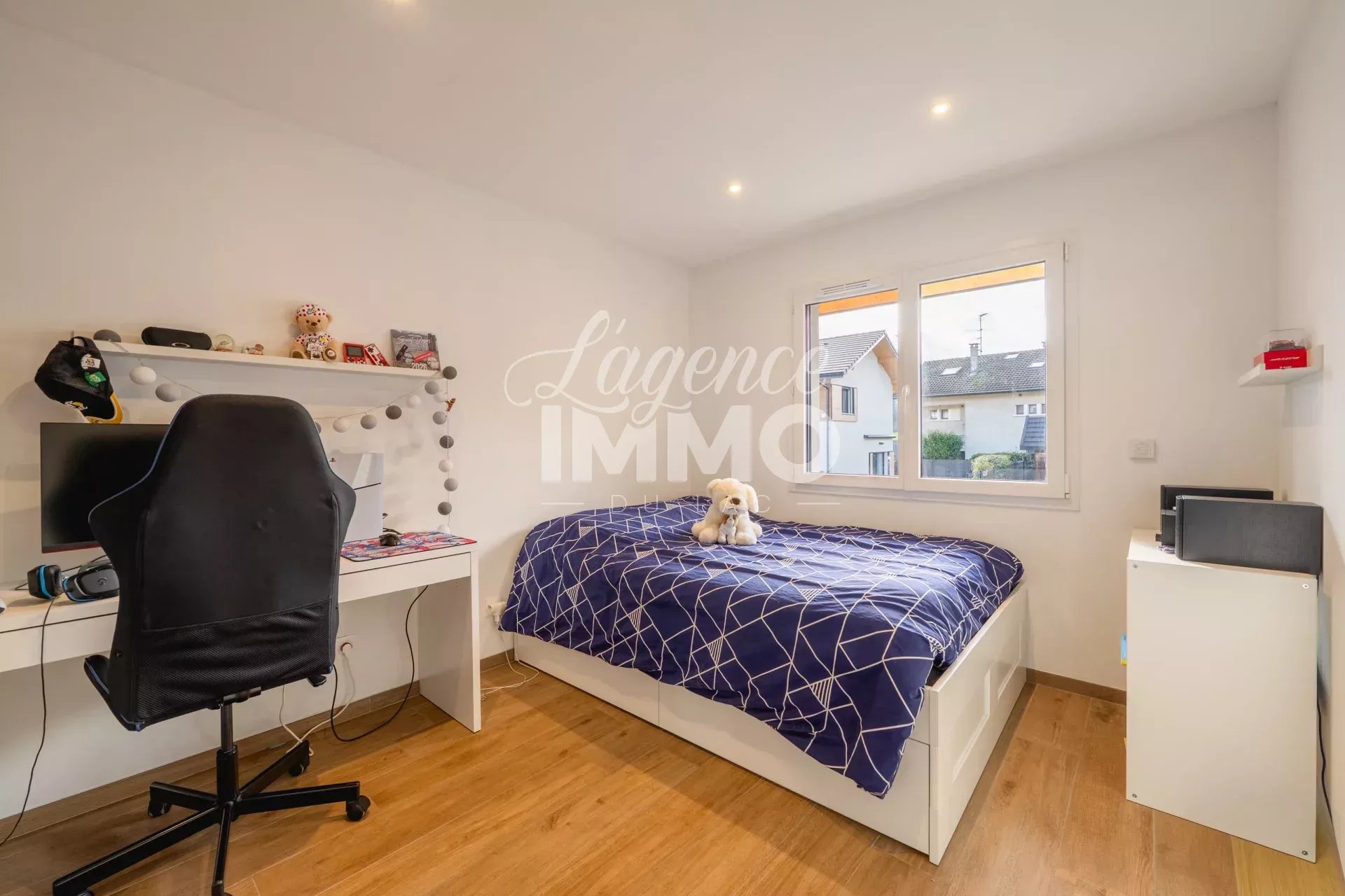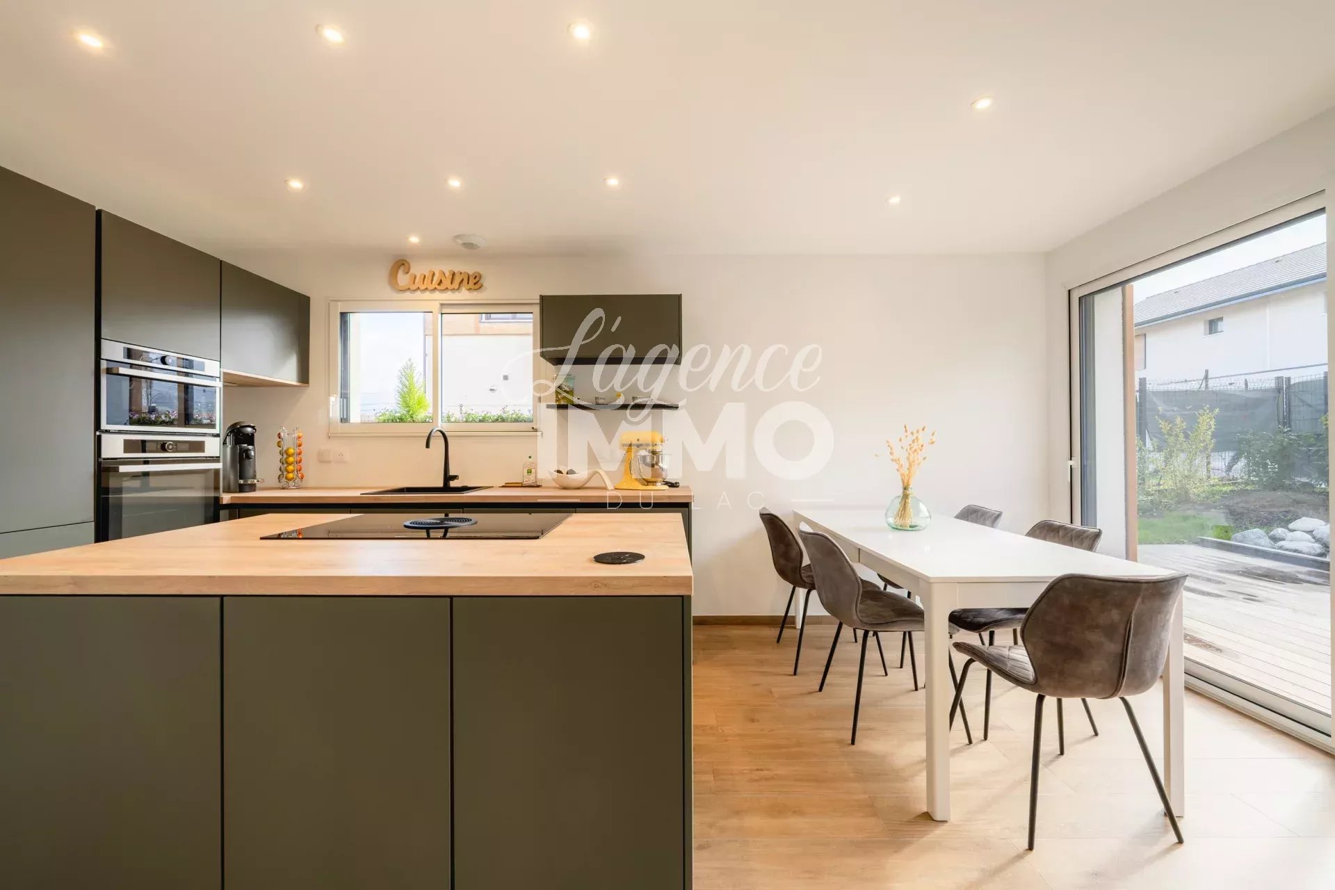En exclusivité ! Dans un environnement résidentiel au calme à St-Jorioz, venez découvrir cette jolie maison contemporaine aux prestations soignées, édifiée en 2024 sur un terrain clos de 234m². Au rez-de-chaussée, vous profiterez d’une entrée, d’une cuisine entièrement équipée ouverte sur un salon/séjour baigné de lumière (exposition sud/est), donnant directement accès à la terrasse et au jardin. Un WC indépendant avec coin buanderie complète ce niveau. À l’étage, l’espace nuit se compose de 3 grandes chambres avec dressing, une salle d'eau et un WC séparé. Un garage fermé attenant complète ce bien avec porte motorisée. Atouts et prestations : - Chauffage au sol sur les 2 niveaux - Pompe à chaleur - Menuiseries en aluminium et PVC - Volets électriques - Porte de garage motorisée - Jardin clos et terrasse en bois Emplacement idéal : à seulement 2 minutes à vélo du centre de Saint-Jorioz (commerces, écoles, crèche…) et à 8min du lac et de la plage. Une maison moderne, familiale et prête à vivre ! À visiter sans tarder ! DPE : A
