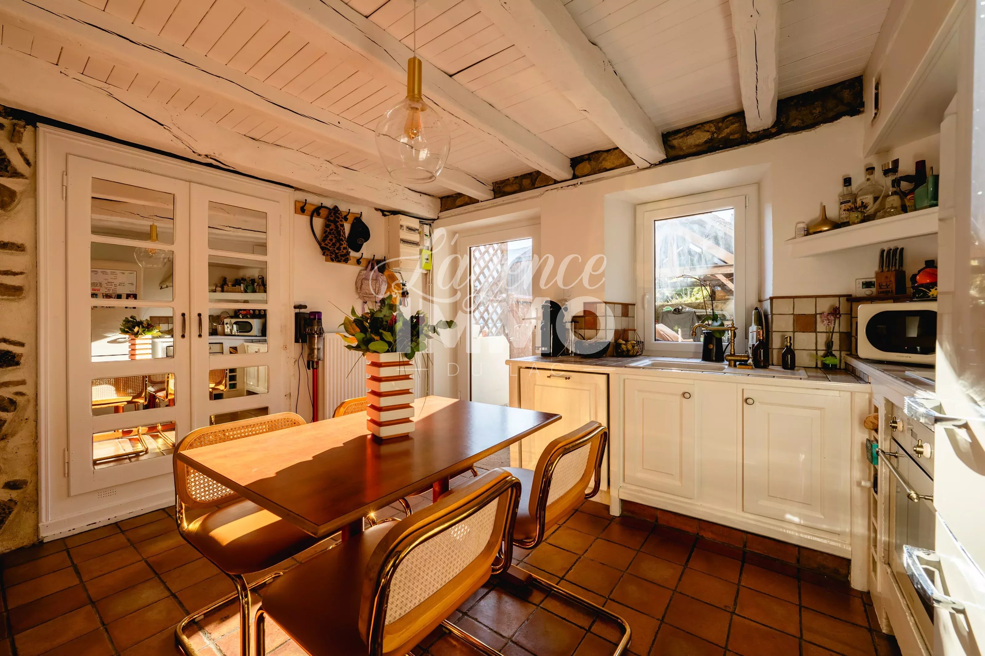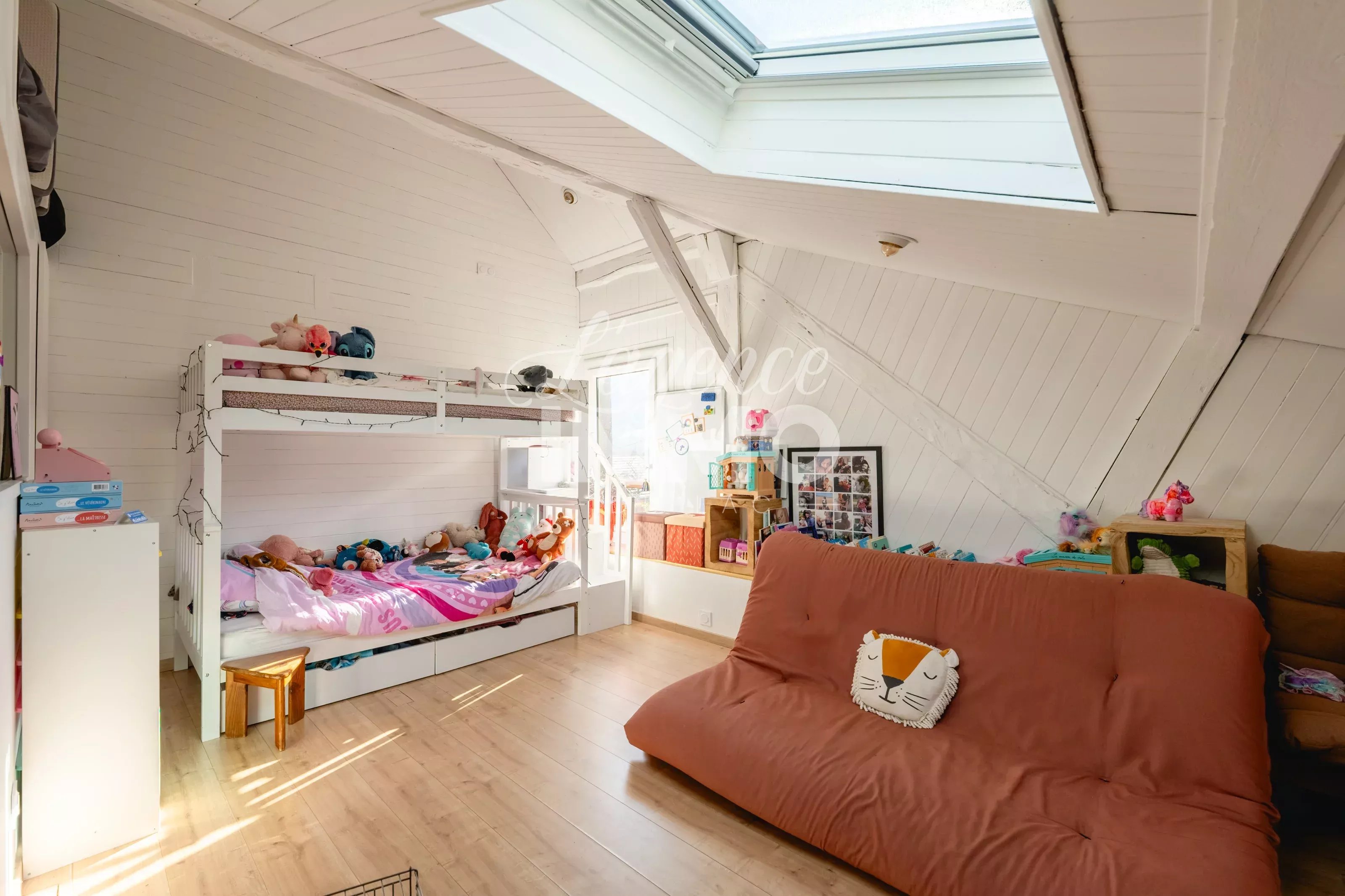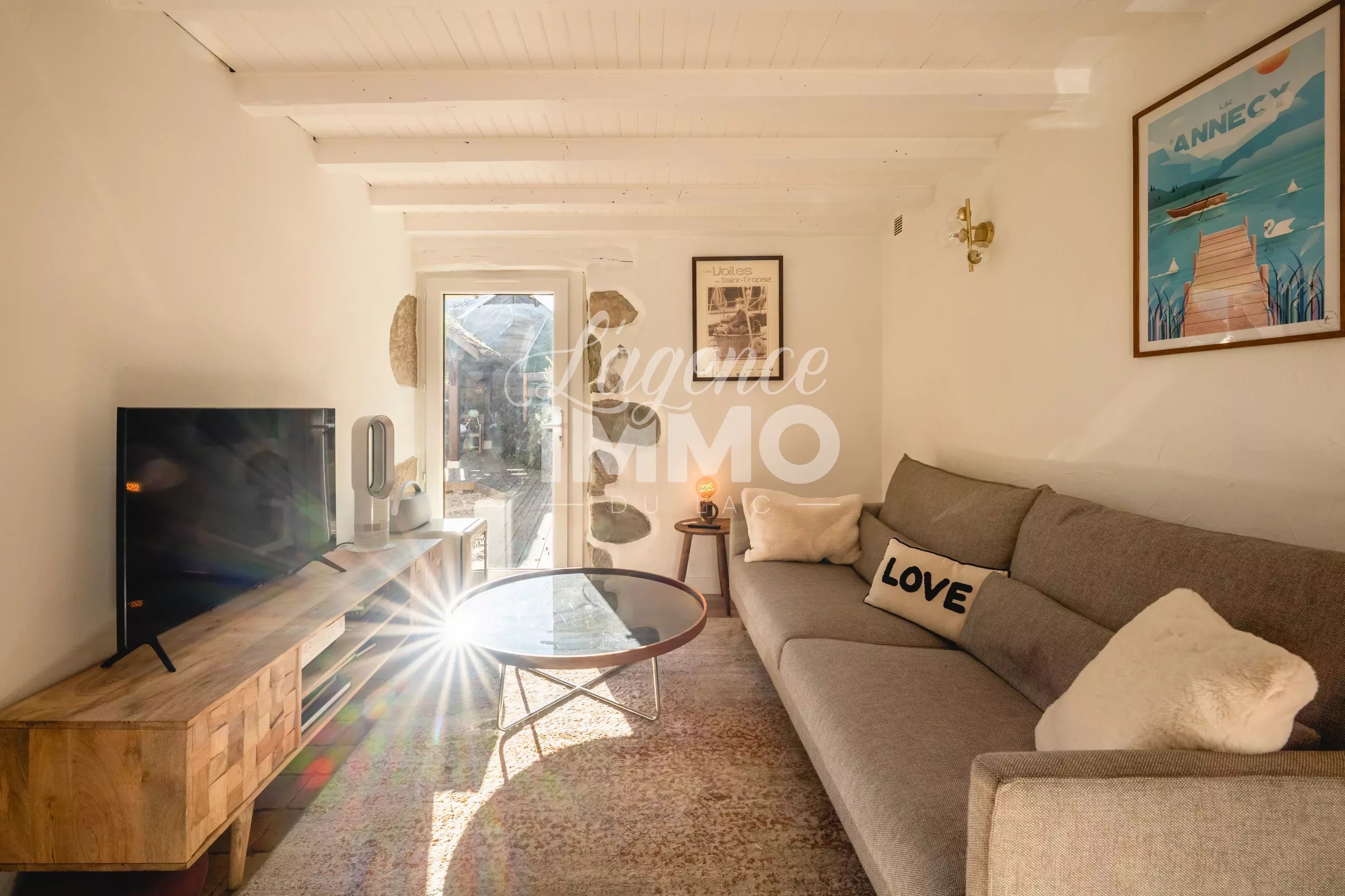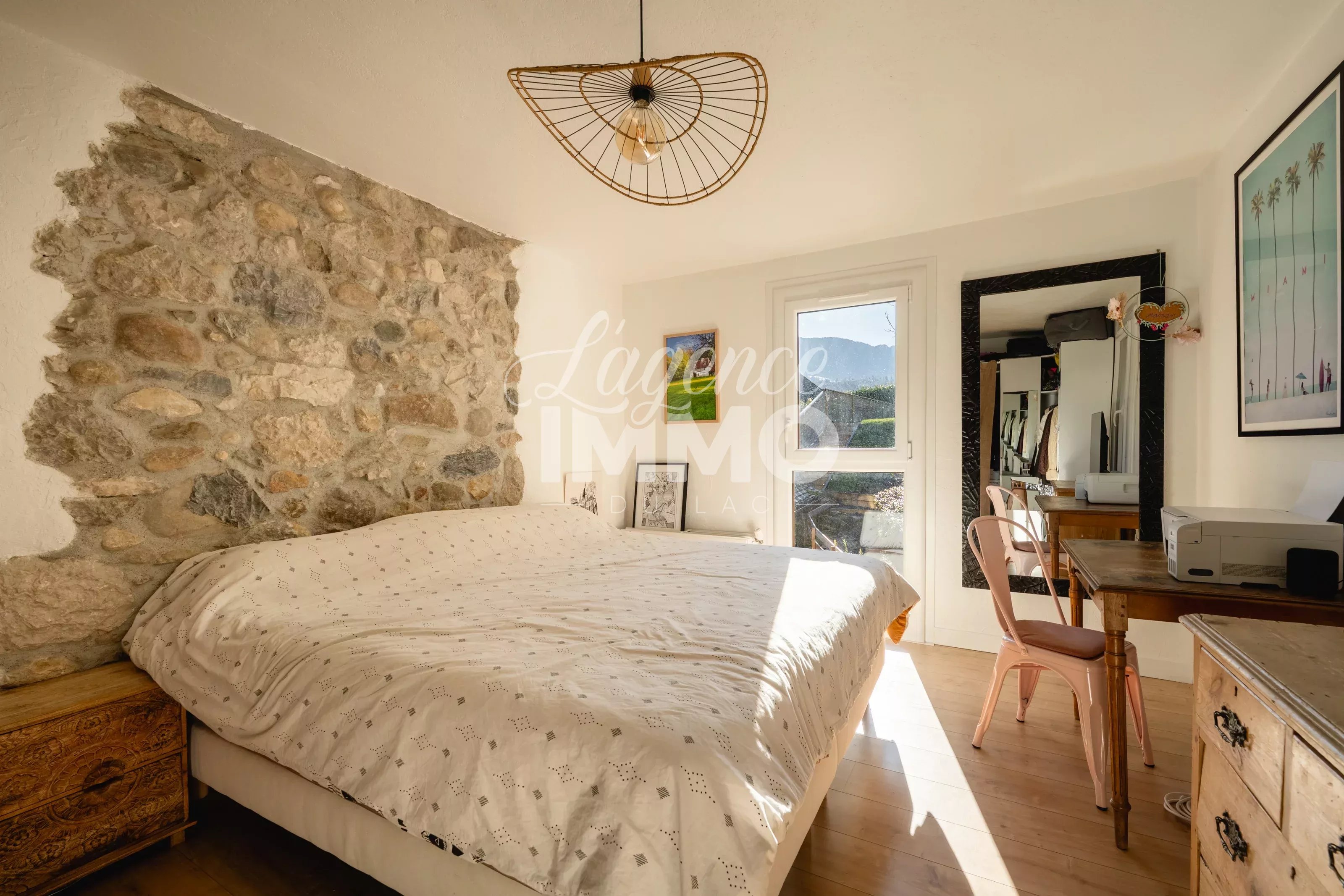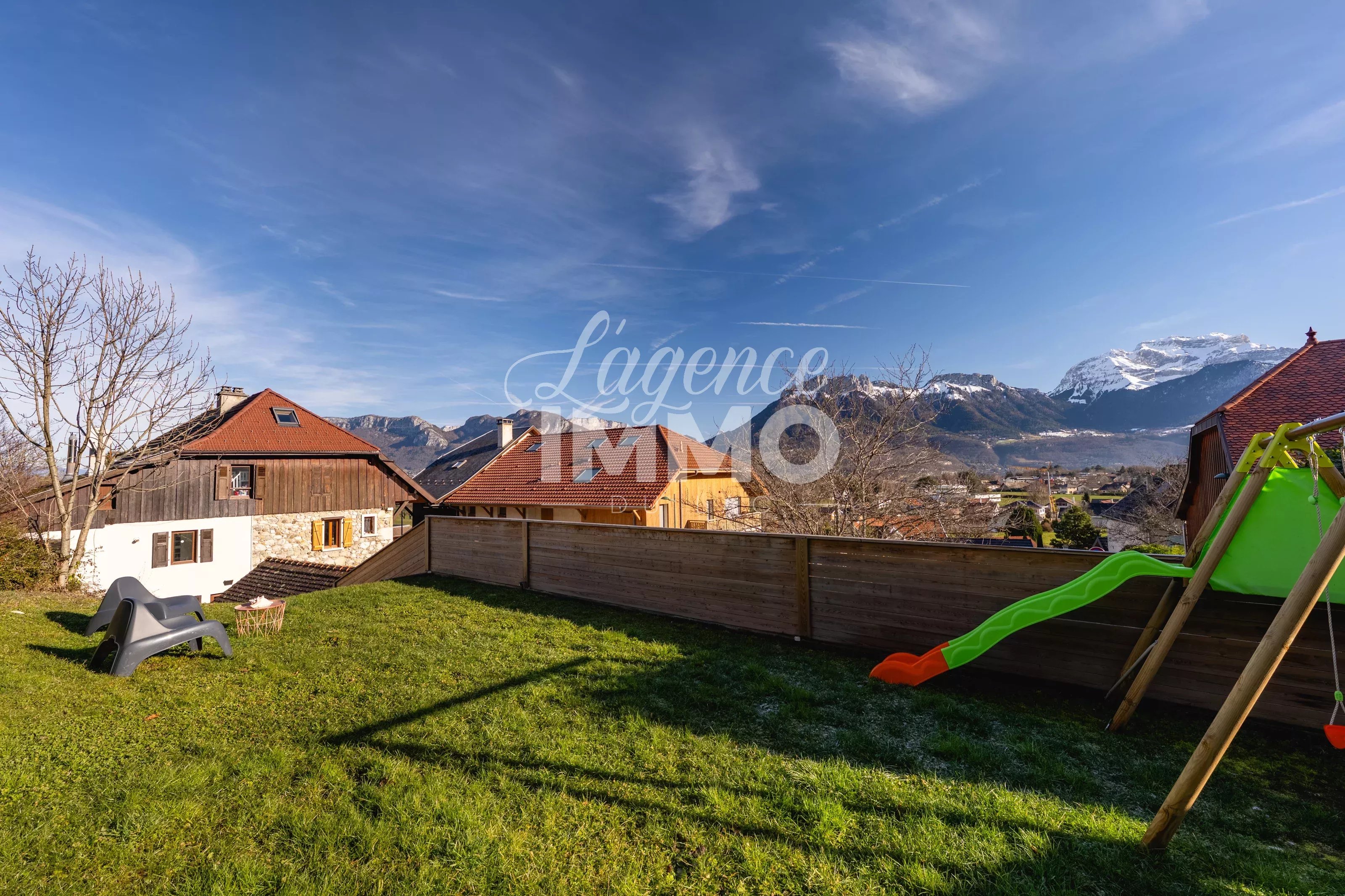En exclusivité ! Découvrez cette charmante maison mitoyenne idéalement située à Saint-Jorioz, dans un environnement résidentiel, à seulement 2 minutes du centre-ville. La maison se compose d’une cuisine équipée et aménagée, ouverte sur un salon lumineux. Le charme de l’ancien opère immédiatement grâce aux pierres apparentes, et lors des journées plus fraîches, le poêle à bois apporte une atmosphère chaleureuse et conviviale. Depuis la pièce de vie, vous accédez directement à la terrasse et au jardin. Au premier étage, vous trouverez une chambre avec dressing, une salle de bains avec de nombreux rangements ainsi qu’un WC indépendant. Le dernier étage accueille une grande chambre mansardée, disposant de rangements intégrés. Les menuiseries ont été remplacées en 2023, tout comme la chaudière, garantissant confort et performance énergétique. Aux beaux jours, vous profiterez pleinement d’une agréable terrasse en bois exposée plein sud, ainsi que d’un jardin clos offrant une vue imprenable sur les montagnes. Un abri complète ce bien et peut être utilisé aussi bien pour le stationnement d’un véhicule que comme terrasse couverte. Possibilité de stationner 2 véhicules à l'extérieur. Abri fermé permettant le stockage de matériel de sport, vélos ou outils de jardinage. Idéalement située, vous rejoindrez le centre ville de St-Jorioz et toutes ses commodités (écoles, crèche, commerces, médecin...) en 2 min à vélo, le lac à et la plage en 5 minutes à vélo. Un arrêt de bus à proximité permet de rejoindre Annecy en 25 minutes ainsi que le collège de Saint-Jorioz en 2 minutes. A visiter sans tarder ! DPE : D