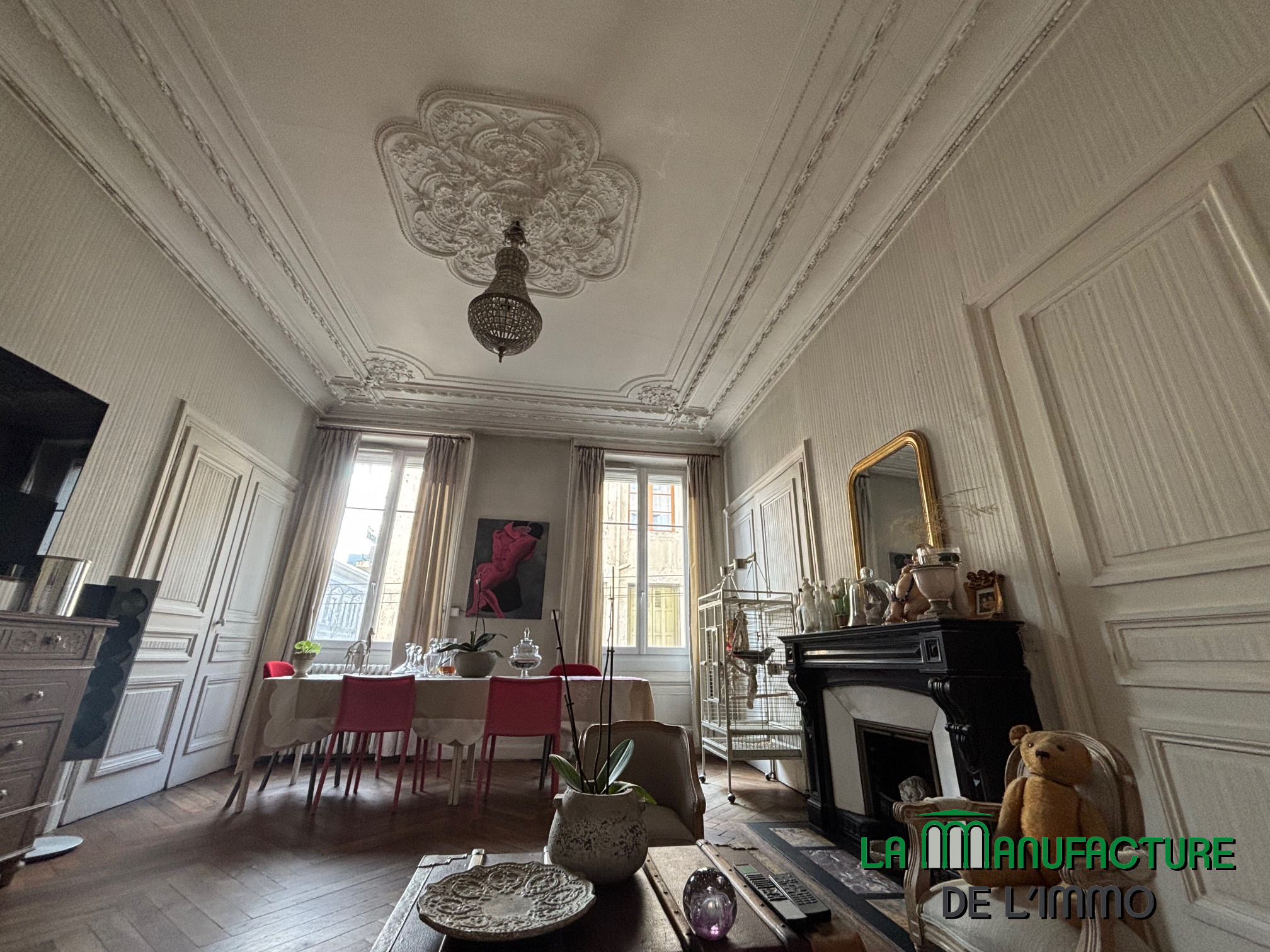 APPARTEMENT STYLE HAUSMANNIEN DE TYPE T5 DE 133,99m2 CARREZ AVEC BEAUCOUP DE CHARME GRACE A SON PARQUET, SES MOULURES ET SA BELLE HAUTEUR SOUS PLAFOND.