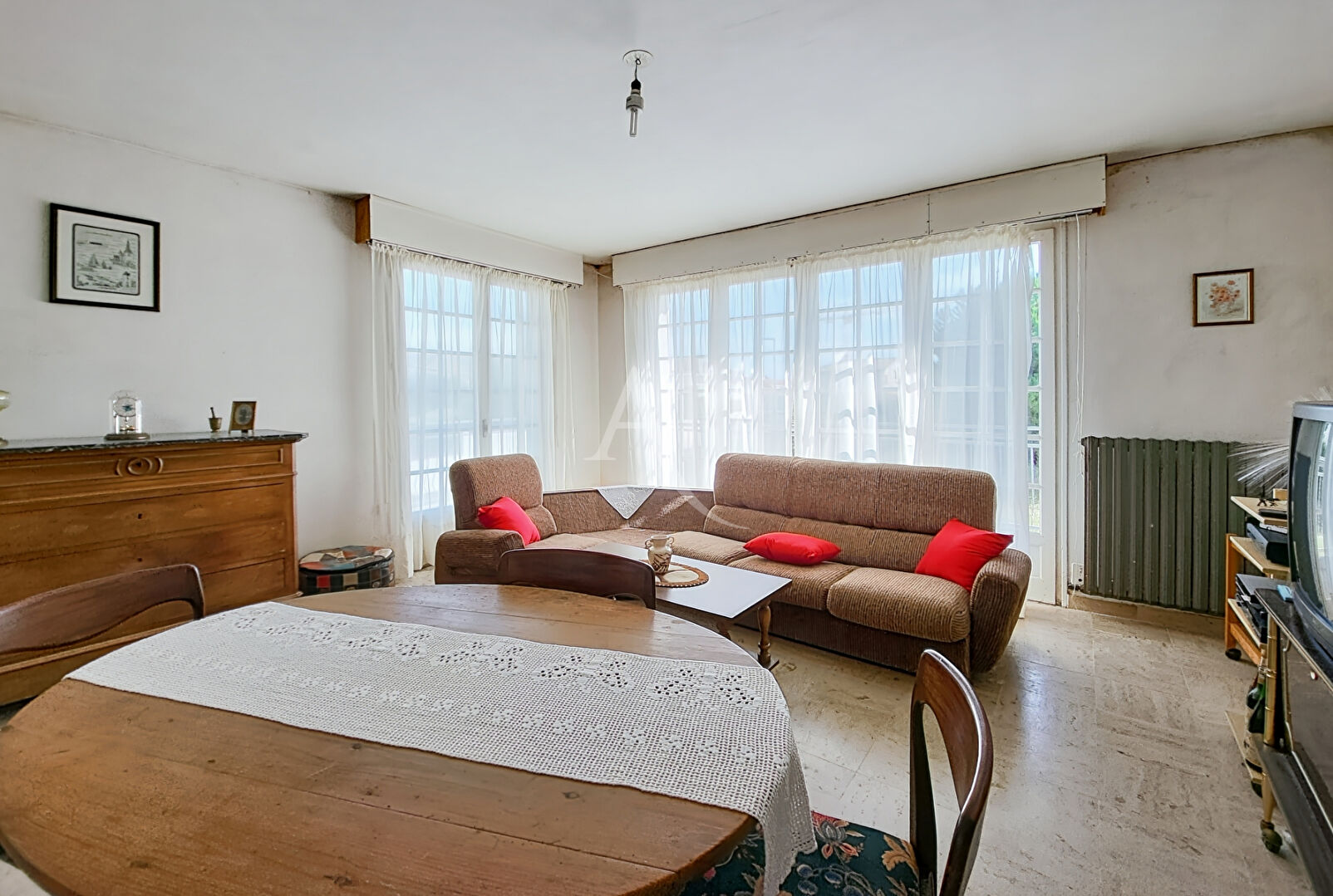 EXCLUSIVITÉ - A VENDRE - NOTRE DAME DE MONTS Dans le bourg , proche de toute commodité et à 5 minutes des plages et de la forêt domaniale. Venez découvrir cette maison d'environ 80m² sur sous-sol de même surface - Construction de 1975. Beaucoup de potentiel Située en impasse, elle se compose d'un séjour/salon lumineux en angle donnant sur le balcon exposé Sud-Est, une cuisine indépendante d'environ 10 m². Côté nuit, un dégagement desservant deux chambres, un WC indépendant et une salle d'eau. Le sous-sol est composé d'un garage, un atelier, une cave, une remise. Terrain de 420 m². Les plus : puits et pompe à chaleur. Visite virtuelle disponible. Réf. 10888 Les informations sur les risques auxquels ce bien est exposé sont disponibles sur le site Géorisques : www.georisques.gouv.fr (C. envir art. R 125-25, I modifié) Pour toute information complémentaire ou visite, contactez-nous au 02.52.700.116 ou par mail notredame@ladresse.com. (5.71 % honoraires TTC à la charge de l'acquéreur.)