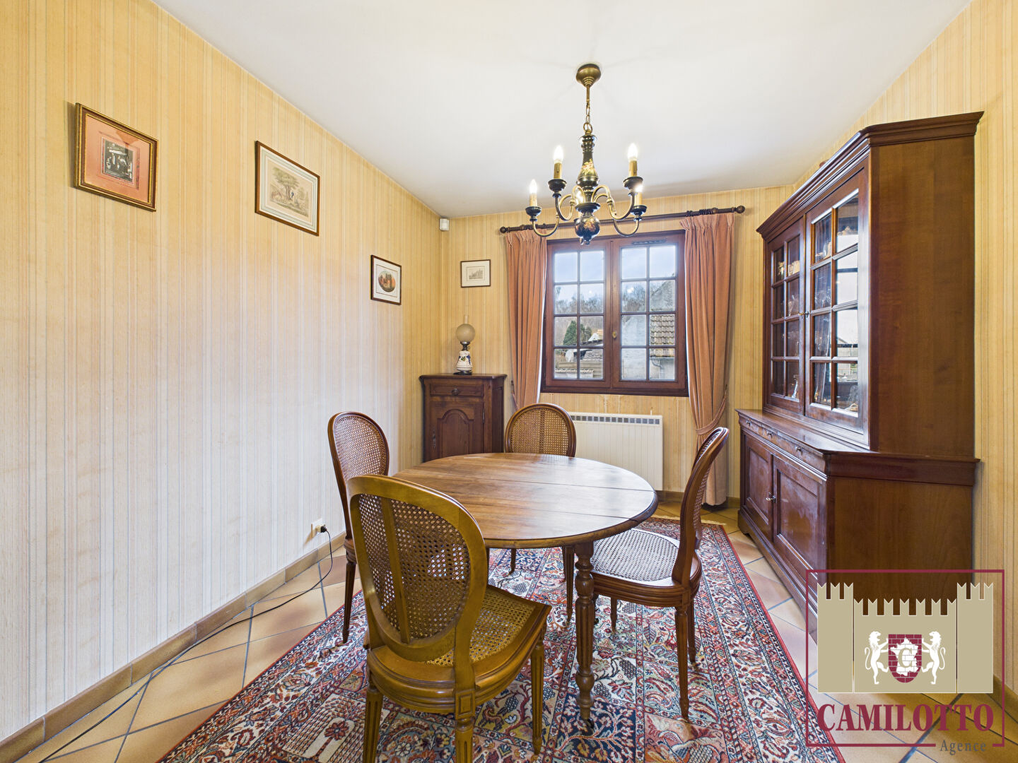 l'agence Camilotto vous présente en EXCLUSIVITE : Située à proximité de Nogent-le-Roi, cette maison traditionnelle bénéficie d'un environnement pratique et agréable, avec écoles primaires, petits commerces et restaurants accessibles à pied. Dès l'entrée, le rez-de-chaussée offre un séjour lumineux avec espace salle à manger, agrémenté d'une cheminée à foyer ouvert. La cuisine, aménagée et équipée, est fonctionnelle. Un dégagement dessert deux chambres, une salle de bains ainsi que des toilettes indépendantes. A l'étage, un palier distribue deux chambres supplémentaires, un bureau, une seconde salle de bains, une pièce de rangement et des toilettes séparées, permettant une organisation confortable des espaces. Un sous-sol total complète le bien, comprenant un garage avec portail électrique, une cave, une buanderie et un atelier. L'ensemble est édifié sur un terrain clos de 635 m², offrant un cadre de vie calme et équilibré. Visite virtuelle disponible ! Contactez l'agence Camilotto au 02.37.51.11.75 pour organiser une visite rapidement ! (5.97 % honoraires TTC à la charge de l'acquéreur.)
