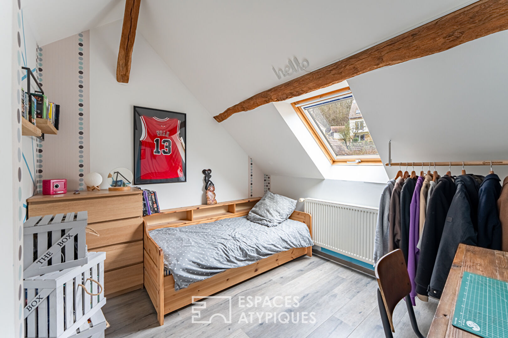 Au coeur du village pittoresque de Châteaufort, à seulement 10 km de Versailles, dans un environnement calme et verdoyant, cette charmante maison des années 40 en pierres offre un cocon réparti sur 100 m² habitables. Elle dispose d'une agréable cour de 27 m², close de murs et exposée Est. Entièrement réhabilitée et décorée avec goût, la maison mêle avec élégance une ambiance contemporaine au charme de l'ancien, conservé grâce à ses murs en pierres apparentes et ses poutres d'origines. Le rez-de-chaussée s'ouvre sur un bel espace de vie de 34 m², donnant l'accès à une cuisine semi ouverte, fonctionnelle et entièrement équipée puis une véranda propice à la farniente et la convivialité. Ce niveau est complété par une accueillante salle d'eau avec double vasque et toilettes. L'ancien garage à été astucieusement transformé en buanderie avec de nombreux rangements et permettant le stationnement d'un deux roues et/ou vélos. Pour une circulation fluide et fonctionnelle, la maison bénéficie de deux escaliers opposés menant à l'étage où se trouvent l'espace nuit sous charpente apparente. Celui-ci se compose de deux chambres, et d'une spacieuse suite parentale de 25m² avec dressing (raccordements existants pour création d'une salle d'eau d'une des chambre) un toilette indépendant complète ce niveau. La cour, intimiste et à l'abri des regards, constitue un véritable atout. Ce bien est un coup de coeur assuré, alliant le charme de l'ancien au confort moderne, sans travaux dans un cadre paisible et verdoyant. Prestations : Fibre, chauffage au gaz (chaudière neuve), huisseries PVC double vitrage et volets en aluminium. Commerces à 2 min Gare RER B St Rémy les Chevreuse à 10 min (5 km) Gare Versailles Chantiers à 20 min (10 km) Ecoles maternelle et primaire à 2 min Lycée Franco-Allemand à Buc CLASSE ÉNERGIE : D / CLASSE CLIMAT : D Montant moyen estimé des dépenses annuelles d'énergie pour un usage standard, établi à partir des prix de l'énergie des années 2021, 2022, 2023 : entre 1 930 euros et 2 670 euros (abonnement compris). Contact : Virginie 06 99 12 24 30 RSAC : 791 227 812 Versailles Virginie AMIAUD (EI) Agent Commercial - Numéro RSAC : 791227812 - Versailles.