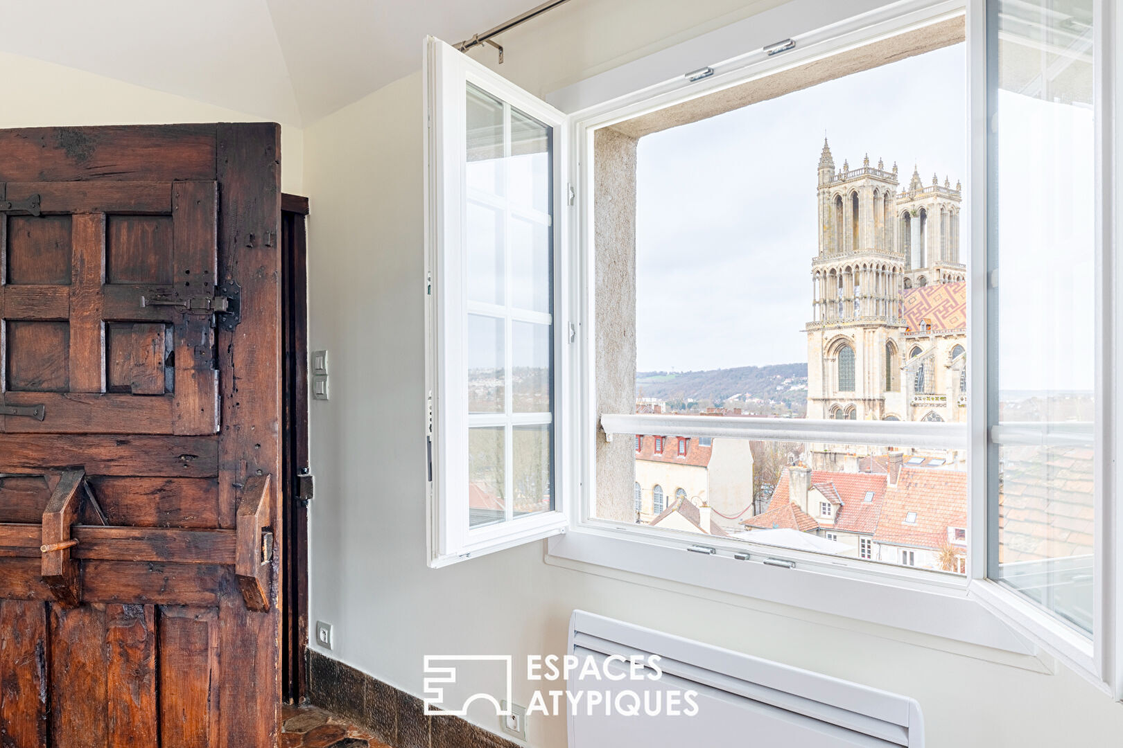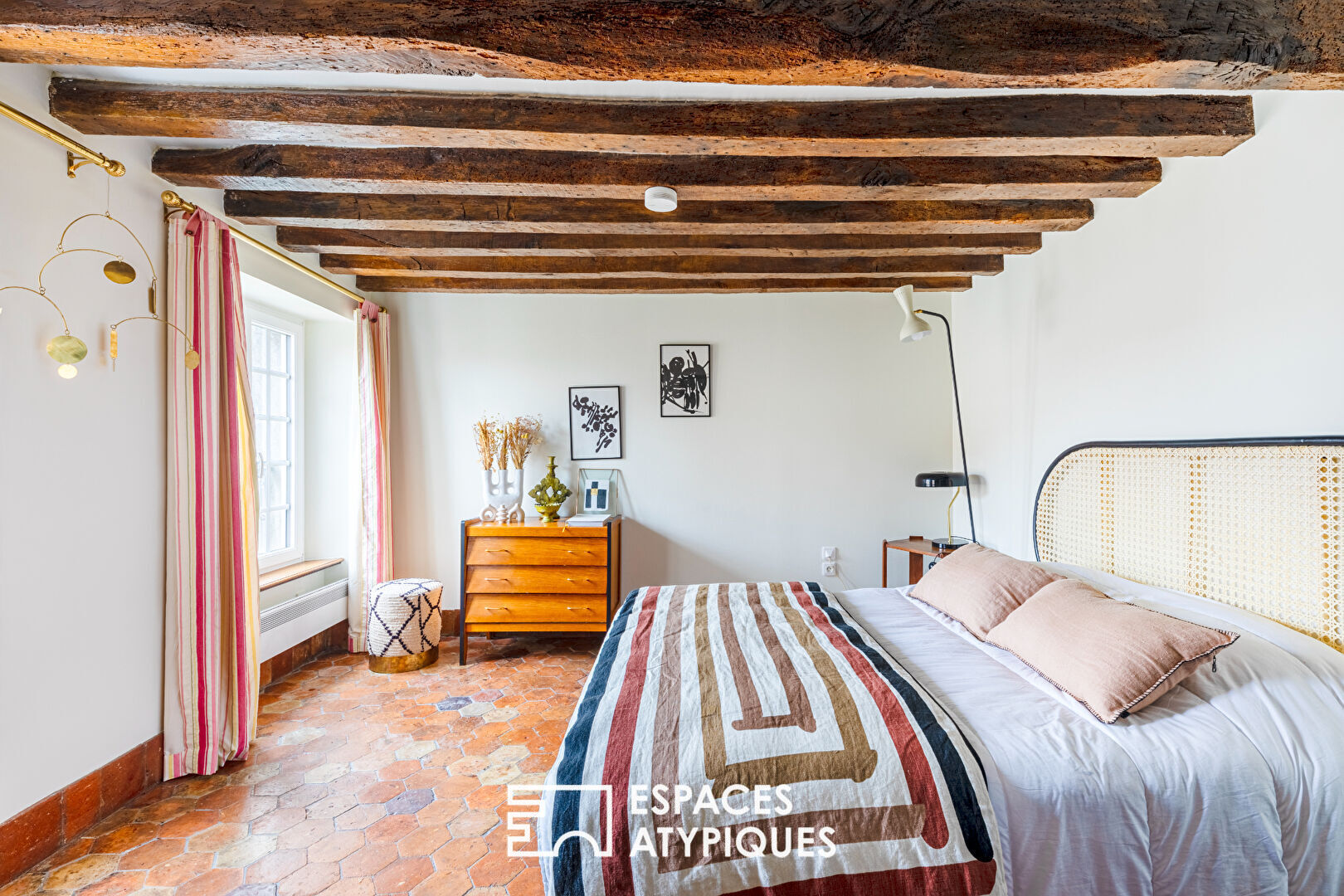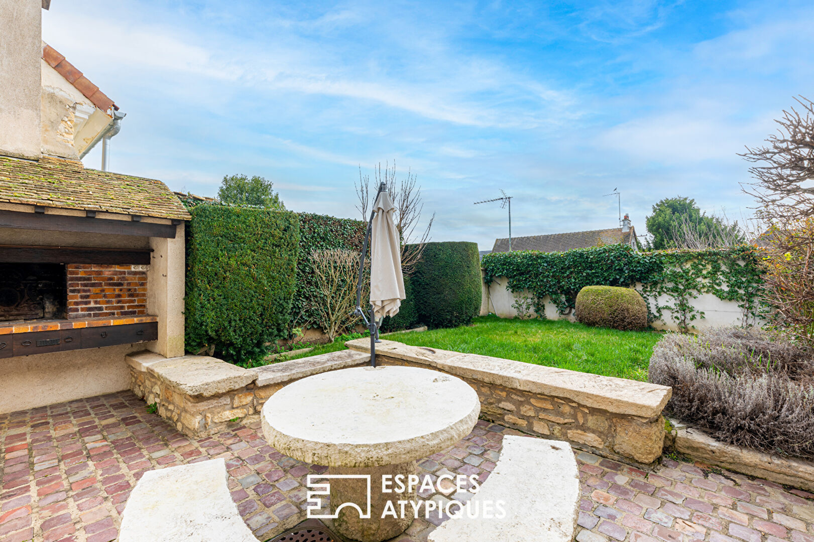 Située dans le centre historique de Mantes la Jolie, à 2 pas des commerces et des écoles, cette atypique propriété chargée d'histoire locale offre deux jardins clos suspendus et une vue envoûtante sur la célèbre collégiale de Mantes la Jolie. Les espaces de vie se déroulent sur plusieurs niveaux, au fur et à mesure desquels se dévoile une vue de plus en plus dégagée. Poutres, tomettes d'époque, portes anciennes et charme de l'ancien rénové sont au RDV ! En rez-de-jardin, une entrée ouvre sur un agréable salon avec une cheminée monumentale en pierre de taille, une jolie salle à manger, une charmante cuisine aménagée, et un petit bureau confidentiel. Les espaces de vie principaux sont traversants de lumière et donnent sur les deux jardins suspendus. L'aile opposée déroule un dégagement avec placards de rangements, un wc, une buanderie, une salle de jeux et un accès vers le garage double qui se situe en rez-de-rue. Un large et historique escalier mène aux étages supérieurs avec en demi-niveau une première salle de bains. Au premier étage, un palier avec placard dessert deux chambres lumineuses avec une vue rare. Les étages supérieurs accueillent également une jolie chambre avec vue et une salle de bains avec douche, baignoire et poutraison ancienne apparente, puis une chambre "mirador" dotée de 4 ouvertures qui offrent une vue privilégiée à 360° sur la ville et la Vallée de la Seine. Les deux jardins proposent de nombreux espaces à investir selon le temps et ses envies: une terrasse intimiste avec barbecue côté cuisine, un salon d'extérieur abrité par un préau, un beau jardin bien exposé avec vue et un atelier. Enfin, une cave et deux greniers complètent ce bien rare et idéalement situé. Écoles, collège et lycée privé à 2 mn à pieds Commerces du centre ville à 5 mn Axe A13 à 3 mn en voiture Gare SNCF à quelques mn à pieds. CLASSE ENERGIE : F / CLASSE CLIMAT C : Montant moyen estimé des dépenses annuelles d'énergie pour un usage standard, établi à partir des prix de l'énergie de l'année 2021 : entre 4 350 euros et 5 910 euros. Katia 07 66 26 91 38 Katia ROCCHIA (EI) Agent Commercial - Numéro RSAC : 432873586 - Versailles.