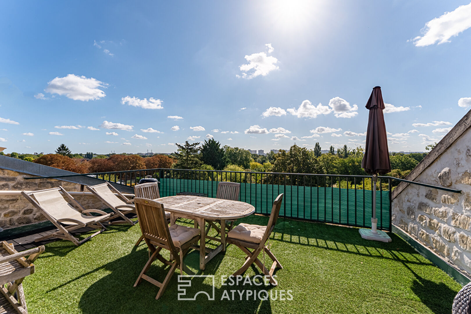 Au coeur historique de Carrières-sur-Seine, cette maison ancienne rénovée avec soin développe 185 m² habitables et 211 m² au sol, implantée sur une parcelle arborée de 2 108 m². Ses volumes généreux et son emplacement privilégié à quelques pas des bords de Seine en font un bien rare. Dès l'entrée, un vaste hall distribue un bureau ou espace de vie, une chambre avec dressing, une salle de bains ainsi qu'une véranda lumineuse ouverte sur le jardin. Le premier étage accueille un séjour chaleureux agrémenté d'un poêle à bois, une cuisine aménagée et équipée ouverte, une buanderie, une salle d'eau et une chambre. Le deuxième étage propose une chambre supplémentaire, un espace bureau ou chambre d'amis donnant accès à une terrasse avec vue panoramique, ainsi qu'une salle d'eau avec WC. Les combles ont été aménagés pour offrir un espace de rangement ou de loisirs complémentaire. Le bien dispose également de quatre caves , idéales pour le stockage. Les extérieurs dévoilent un vaste jardin verdoyant, propice à la détente et aux moments en famille. Un abri de jardin, un portail motorisé et un stationnement privatif pouvant accueillir plusieurs véhicules, équipé d'une borne de recharge électrique, complètent cet ensemble. La terrasse surplombant les bords de Seine et offrant une vue dégagée sur le quartier de La Défense constitue un atout remarquable. La maison bénéficie d'un cadre de vie calme et recherché, à proximité immédiate des écoles, commerces et transports. L'arrêt de bus situé à cinq minutes à pied permet de rejoindre rapidement la gare RER A et SNCF de Houilles / Carrières-sur-Seine, reliant Paris en une dizaine de minutes. Ce bien atypique, alliant le charme de l'ancien à une rénovation contemporaine de qualité, séduit par sa situation rare et son environnement privilégié. DPE : Classe Énergie D/ Classe Climat C. Prix moyens des énergies indexés au 1er janvier 2021 (abonnements compris): entre 1920 euros et 2660 euros. Contact : Oliver 06 34 44 46 09 RSAC n°949 267 140 - Versailles Oliver HECK (EI) Agent Commercial - Numéro RSAC : 949 267 140 - Versailles.