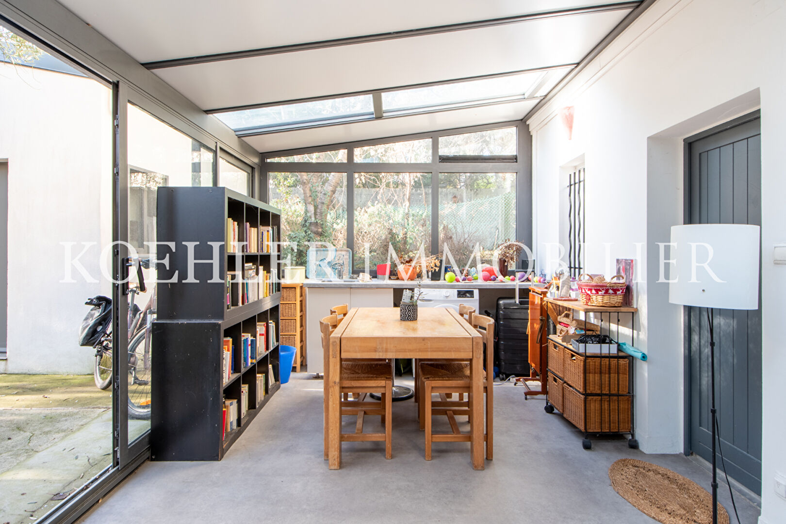 EXCLUSIVITE KOEHLER IMMOBILIER : Idéalement située au calme , cette maison se trouve à seulement 10 minutes à pied du RER et à 15 minutes des écoles. En rez-de-chaussée surélevé elle comprenant une entrée, un WC séparé, une cuisine ouverte sur la salle à manger, un séjour , un bureau et grand dégagement avec salle d'eau pouvant faire office de chambre. En rez-de-jardin, une salle d'eau, une chambre parentale avec dressing, ainsi qu'une véranda donnant accès directement au le jardin. A l'étage, la maison dispose de deux chambres et d'une salle de bains. Une dépendance dans le jardin construite en 2019 avec cuisine aménagée, offre de multiples possibilités (studio, bureau, atelier, stockage). Toutes les fenêtres sont en double vitrage. Maison atypique ! (4.55 % honoraires TTC à la charge de l'acquéreur.)