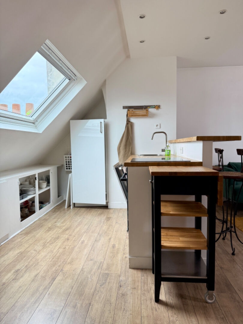 BATIGNOLLES, dans rue calme, charmant 2 pièces entièrement meublé en dernier étage avec ascenseur en très bon état comprenant : entrée, cuisine ouverte équipée, cellier, séjour , une chambre avec placard et salle d'eau avec wc. Chauffage et eau chaude compris dans le loyer. BAIL MEUBLE. Libre de suite.