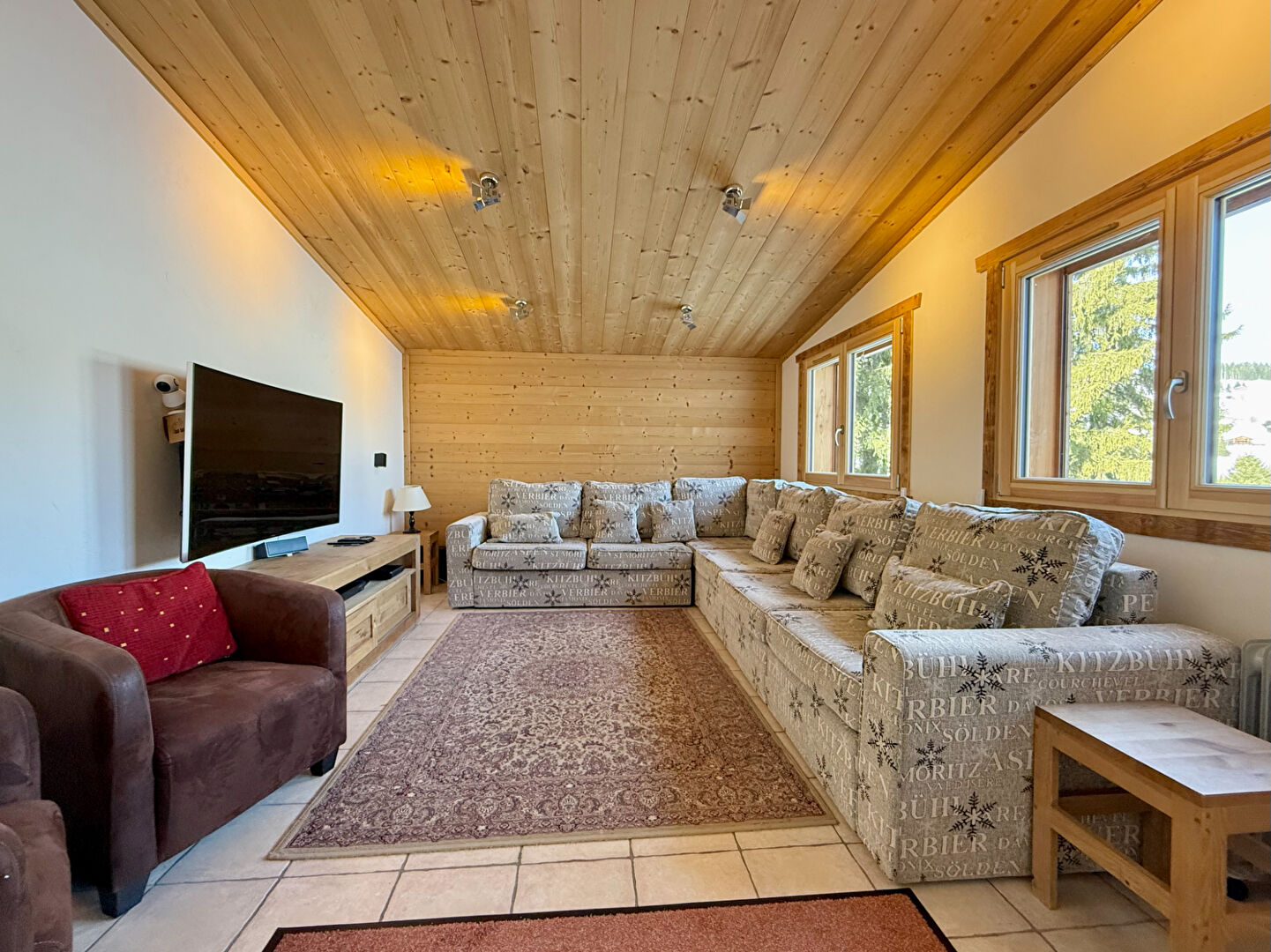 Implanté sur un vaste terrain de plus de 7 000 m², ce chalet bénéficie d'un environnement naturel privilégié, au coeur d'un cadre verdoyant, à proximité des pistes de l'Espace Diamant, départ du Mont Rond 1350m. Le rez-de-chaussée se compose d'une entrée, d'une agréable pièce de vie avec cheminée, d'une cuisine indépendante entièrement équipée, ainsi que d'une salle de bains et de toilettes séparées. A l'étage, vous apprécierez le confort de ses quatre chambres, une grande salle de bains et de toilettes séparés. Le rez-de-jardin offre un véritable espace dédié au bien-être et à la détente : jacuzzi, sauna, douche, grand salon TV, ainsi qu'une vaste buanderie pouvant être aménagée en ski room. L'ensemble s'ouvre sur une grande terrasse bénéficiant d'une vue dégagée sur la montagne. Ce chalet séduit par son emplacement calme et préservé, tout en restant facilement accessible toute l'année. A visiter sans attendre ! (4.74 % honoraires TTC à la charge de l'acquéreur.)