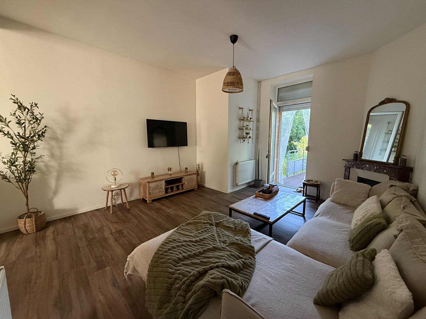 SEDAN Secteur gare Jolie maison de 90 m² en excellent état avec terrasse et jardin arboré. Au RDC: entrée, WC, cuisine équipée spacieuse ouverte et séjour avec accès terrasse. A l'étage: palier, 2 chambres, bureau et salle de bains avec WC. Cave et jardin arboré. Isolation, double vitrage, volets roulants et chauffage au gaz récents. Place de parking privative. Habitable de suite.