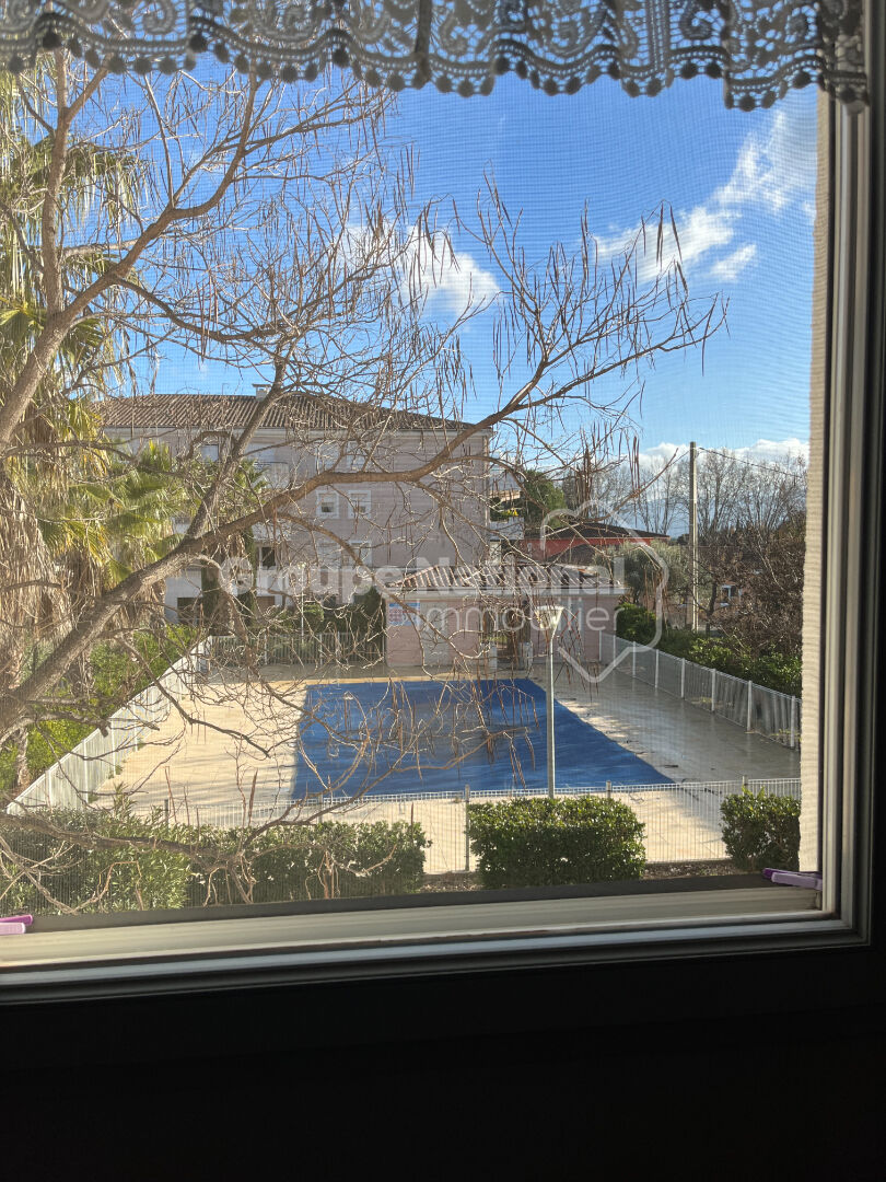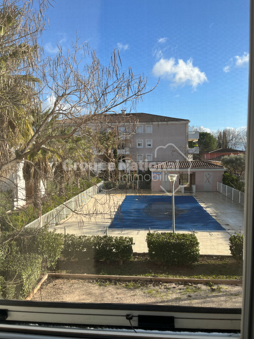 VENDU LIBRE de toute location ou occupation. Vous aurez l'impression d'être en vacances toute l'année dans cette copropriété de 2011 au calme et à taille humaine (74 lots d'habitation) sécurisée, avec piscine et idéalement située . Ce T3 de 64m² Loi Carrez , très bien agencé et offrant de nombreux rangements, est situé au 1er étage sur 3 et bénéficie d'une double vue dégagée: piscine et collines. L'appartement se compose d'une lumineuse pièce de vie de 26,90m² climatisée, avec cuisine ouverte et équipée, le tout ouvrant sur un spacieux balcon couvert de 10,65m² équipé d'un store banne automatique très récent avec vue bien dégagée à la fois sur la piscine et sur les collines. Ce bien comprend ensuite une chambre de 11,90m² avec grand placard et une chambre d'enfant ou bureau (8,80m²) avec placard déporté dans le dégagement, les deux chambres ayant vue sur la piscine. Enfin, une spacieuse salle d'eau de 6,05m² avec douche à l'italienne , double vasque et placard ainsi qu'un WC indépendant de 2,10 m² ( judicieux d'y placer le coin buanderie) finissent de compléter ce bien . Pour votre stationnement, deux places de parking privatives et contigües vous attendent à deux pas de l'accès au bâtiment. Vous bénéficierez également d'un local à vélo collectif à l'entrée du bâtiment, fermé à clé et accessible via la clé de votre appartement. Charges mensuelles de copropriété: 135 euros. NB: la locataire actuelle étant en cours de déménagement j'ai flouté certaines zones sur certaines photos pour un meilleur rendu. Honoraires à la charge du vendeur. Contact Laurence MARTINI - Mobile :06.08.36.00.95. RSAC 804.092.336 Les informations sur les risques auxquels ce bien est exposé sont disponibles sur le site Géorisques: www.georisques.gouv.fr. Copropriété de 201 lots - dont 74 lots habitation.(Pas de procédure en cours). Laurence MARTINI (EI) Agent Commercial - Numéro RSAC : 804092336 - Draguignan.