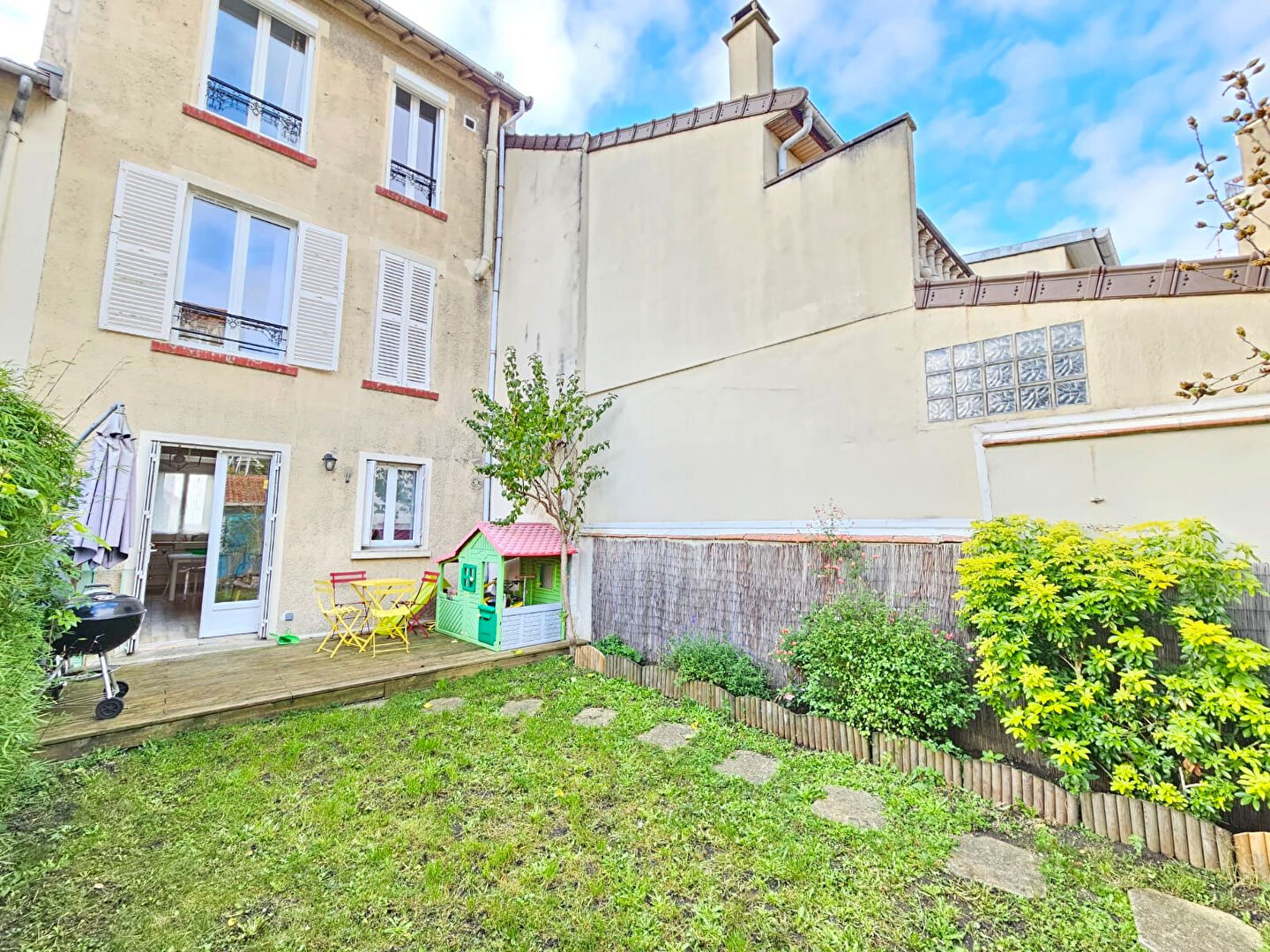 Spécialiste de Fontenay , BSI vous propose : *** QUARTIER entre VILLAGE et RIGOLLOTS *** Venez découvrir cette belle maison de caractère, idéalement située à 11 minutes à pied du RER de Fontenay et du BOIS et à la fois proche des écoles et des commerces . Cette Ravissante maison 4/5 pièces présente une organisation fonctionnelle. Le rez-de-chaussée s'articule autour d'une cuisine ouverte dinatoire , d'un beau séjour menant de plain-pied sur TERRASSE et JARDIN. Les volumes sont agréables, la hauteur sous plafond apporte une réelle impression d'espace et la luminosité naturelle met en valeur l'ensemble des pièces ( espace traversant SUD et NORD ). L'étage regroupe deux belles chambres, une salle de bains et un WC indépendant constituant un espace nuit complet et équilibré. Le dernier étage dédié aux parents offre un dressing avec accès sur BALCON/ TERRASSE profitant d'une jolie vue dégagée au loin sur le BOIS , une belle chambre avec vue sur jardin ainsi qu'une salle d'eau avec WC attenante. Les "+" : une belle dépendance accessible par le jardin arrière pour ADO ou pour recevoir famille ou ami aménagée en 4 éme chambre avec salle d'eau et WC , un parking extérieur avec borne électrique, Un sous-sol total avec buanderie / chaufferie et grand espace de stockage viennent compléter cette maison . L'ensemble s'inscrit dans l'esprit d'une maison centenaire qui a conservé son charme tout en bénéficiant d'améliorations essentielles au fil du temps. A visiter rapidement !